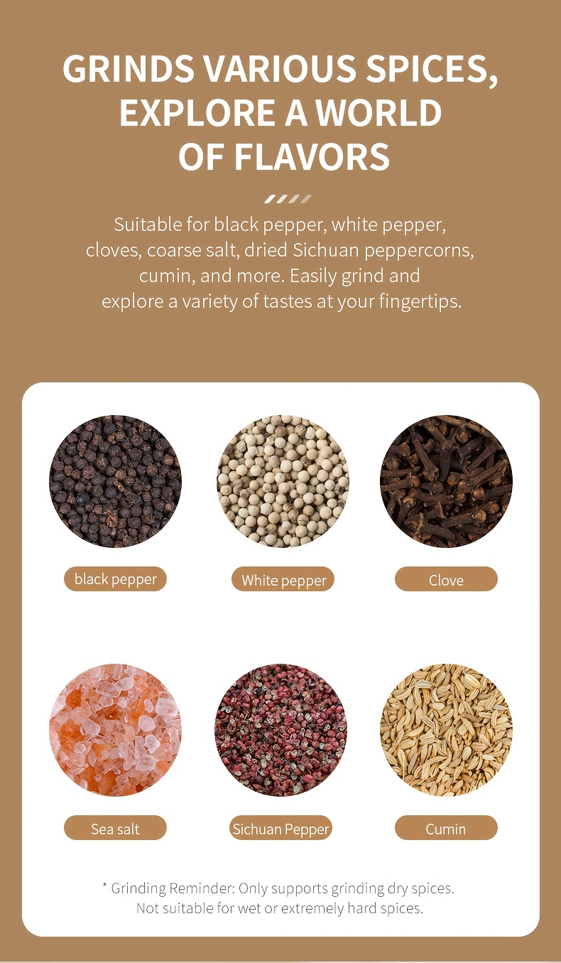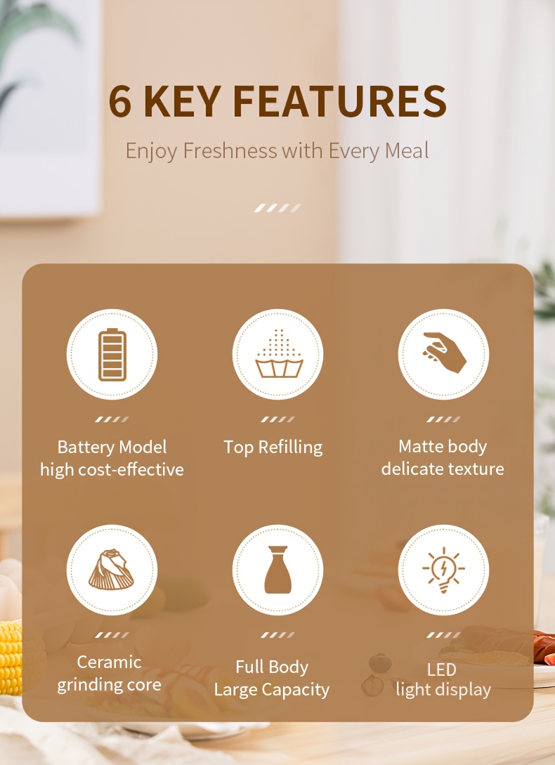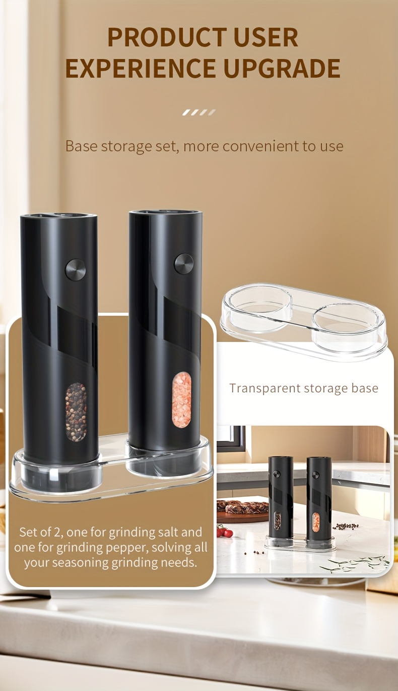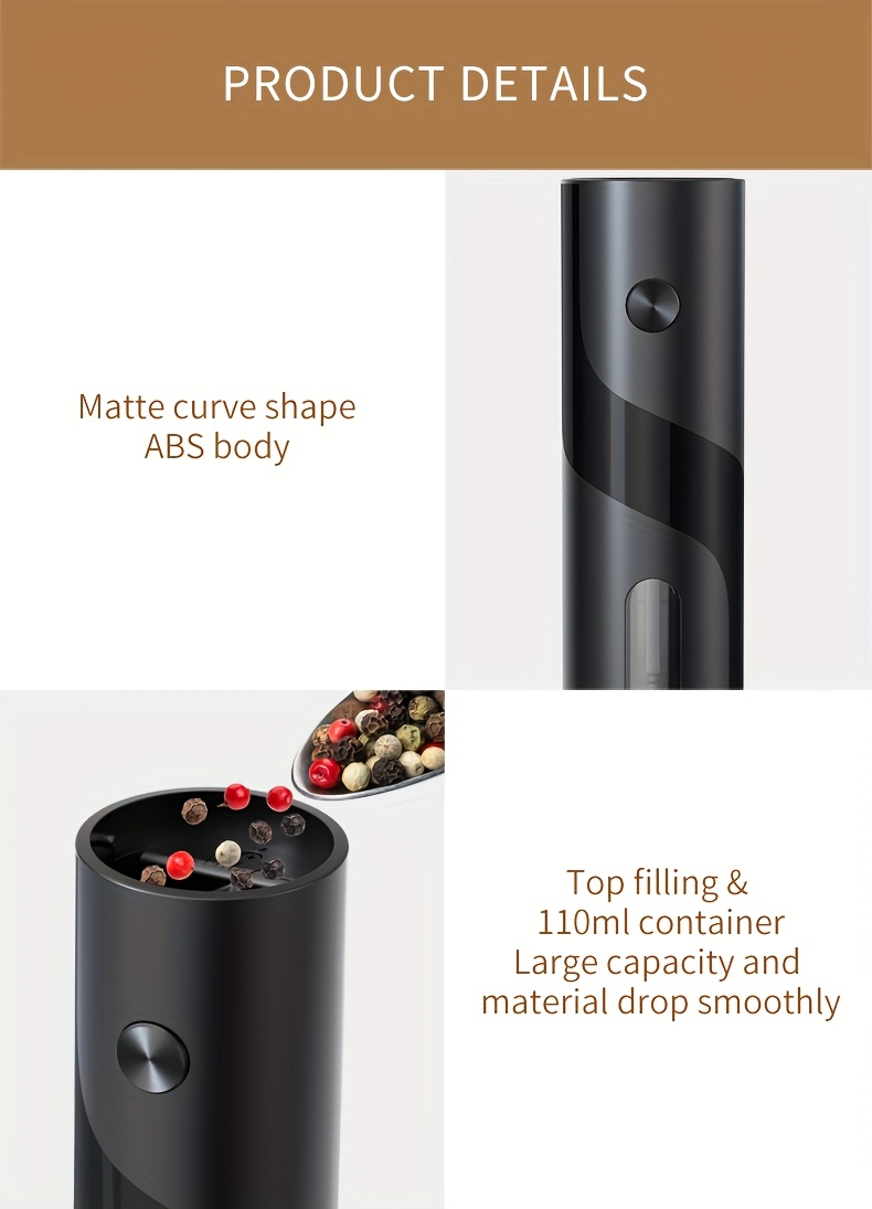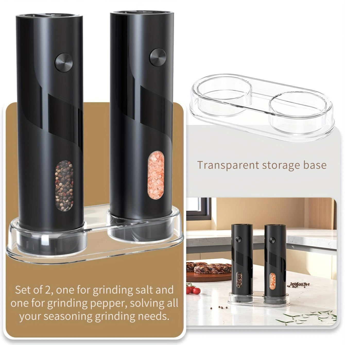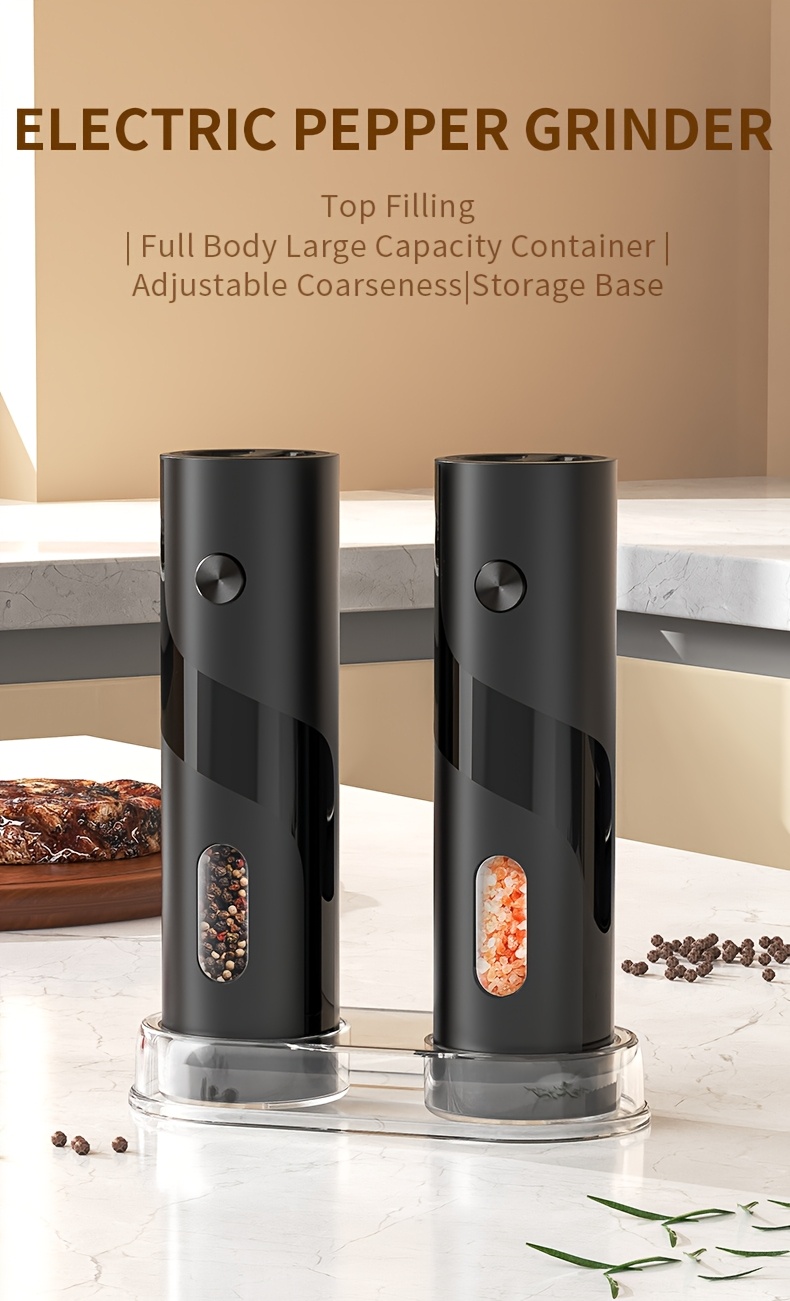 LED chirog'i bilan elektr tuz va murch maydalagich to'plami, sozlanadigan qattiqlik, to'ldiriladigan, bitta qo'l bilan ishlash uchun oshxona asbobi