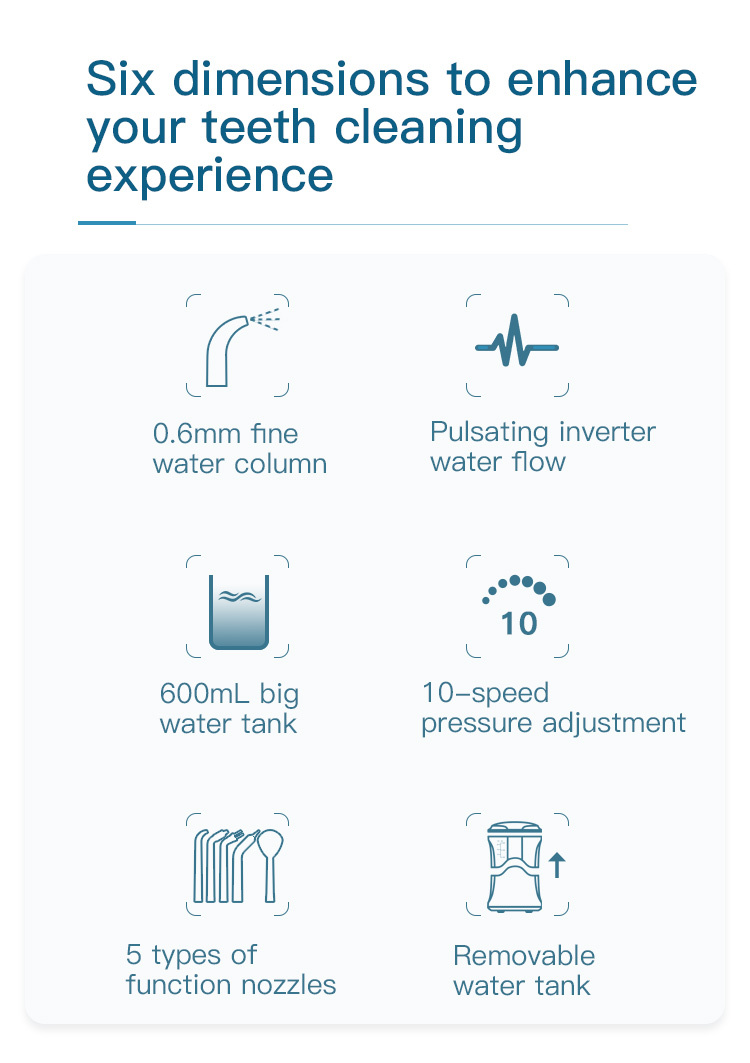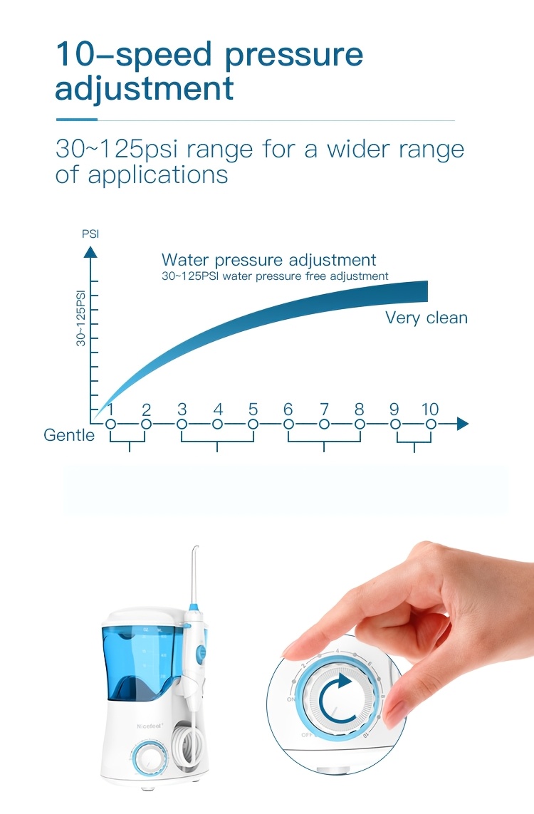 Elektrik Su Flosseri Tishlar uchun Braketlar 600ml Katta Hajm 7 Jet Raqamli Ko'rsatkich