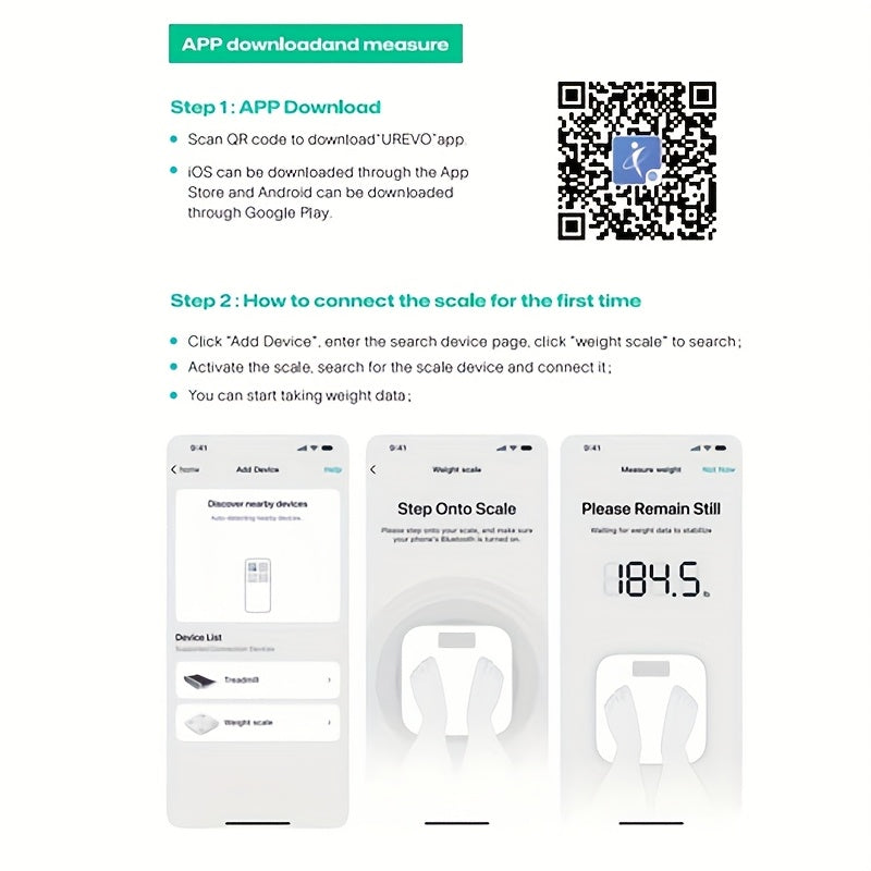 Uy sharoitida aniq sog'liqni nazorat qilish uchun telefon bilan ulanishi mumkin bo'lgan elektron shkala. Har ikkala jins uchun ham mos.