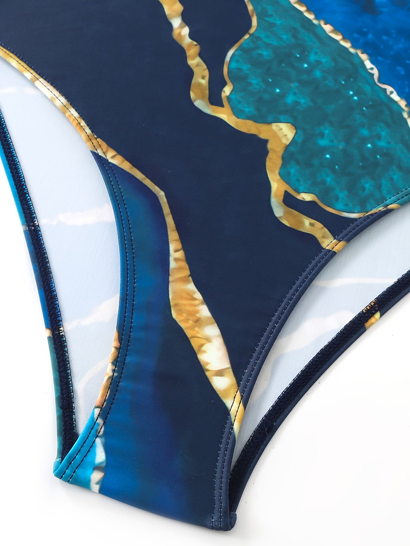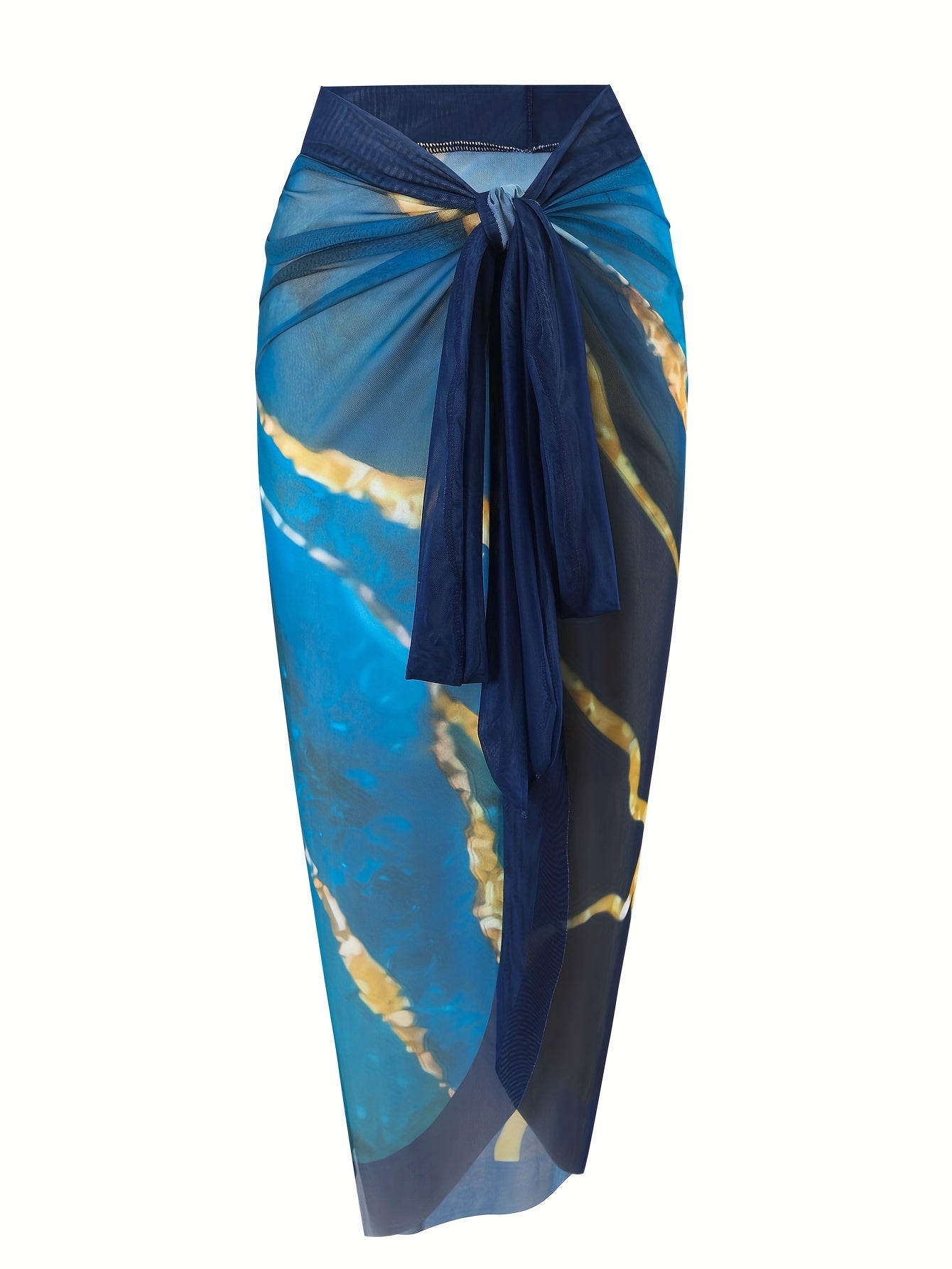 Ayollar uchun V-shaklidagi bir parcha va yopishqoq sarong yubka bilan bezatilgan, zamonaviy 2-qismli marmar naqshli suzish kostyumi to'plami.