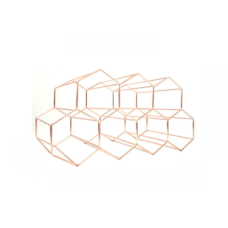 Qora metall asal honeycomb vino rack 7 ta shisha sig'imi bilan oshxona yoki mehmonxona uchun olti burchakli tarmoq ko'rsatuvchi tashkilotchi