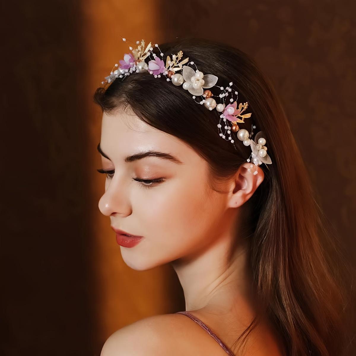 To'ylar uchun oltin barglari, sun'iy marvaridlar va gullar bilan bezatilgan boshbog'.