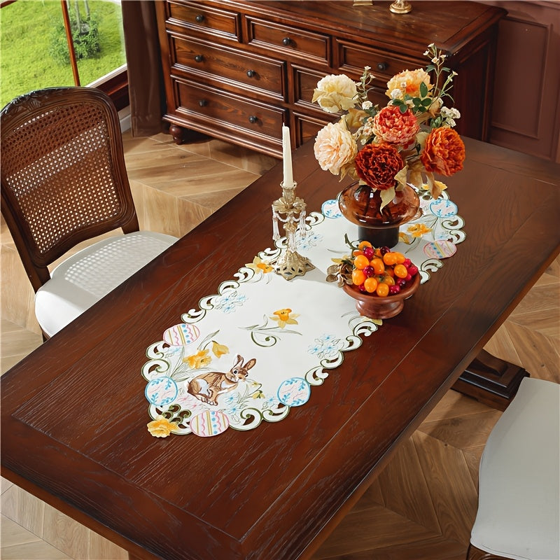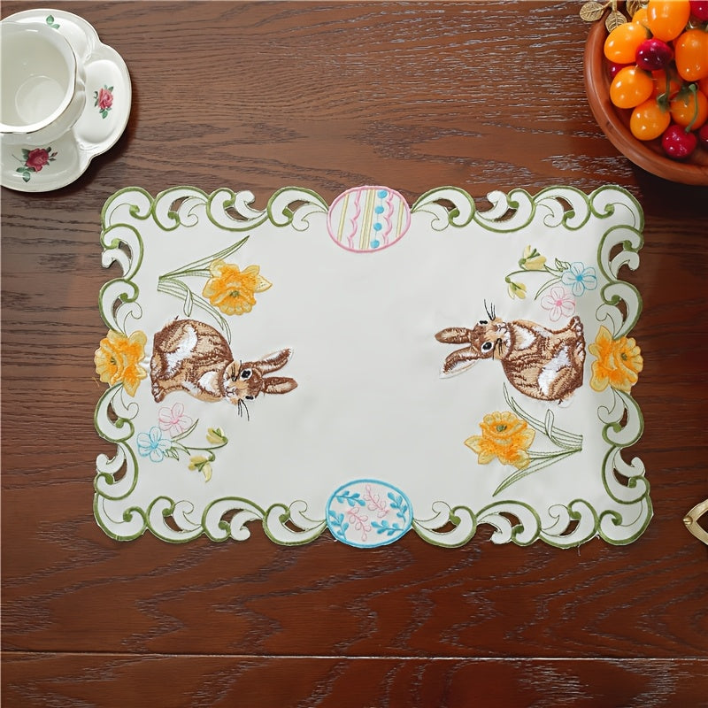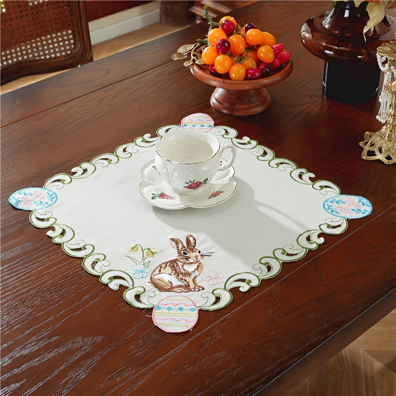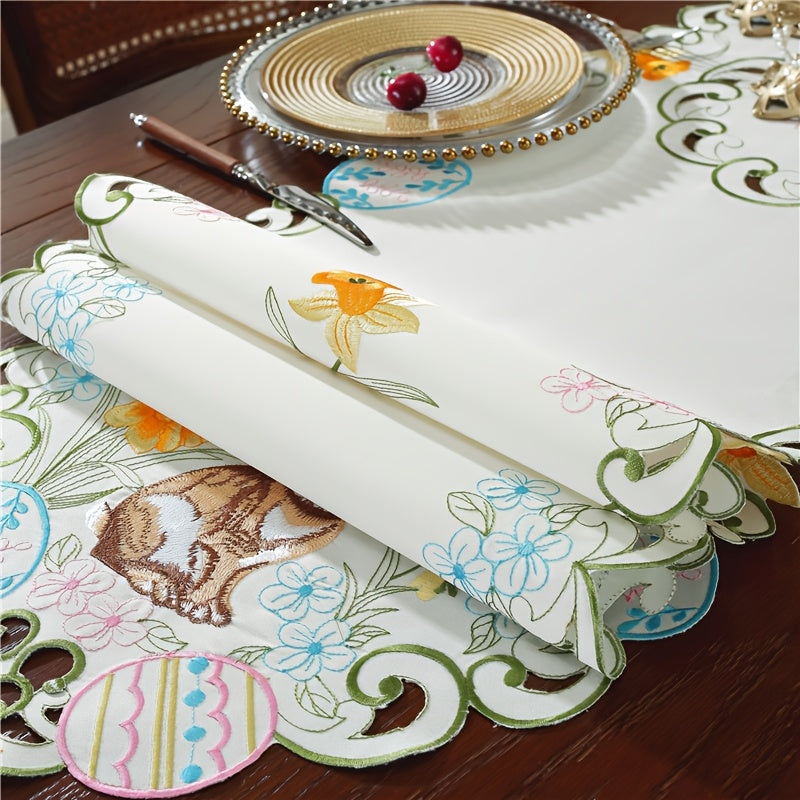 Zarif Pasxa Qopqog‘i va Tuxum Stol Qoplamasi: 100% polyester, qo‘l mehnati bilan tayyorlangan gullar dizayni, Bahor bayramlari va uy bezatish uchun mukammal.