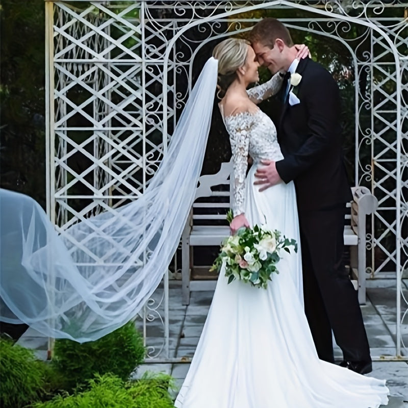 Zargarlik bilan to'y voiligi, metall soch qopqog'i bilan, uzun tortish qobig'i, yagona qatlamli, nafis aksessuar
