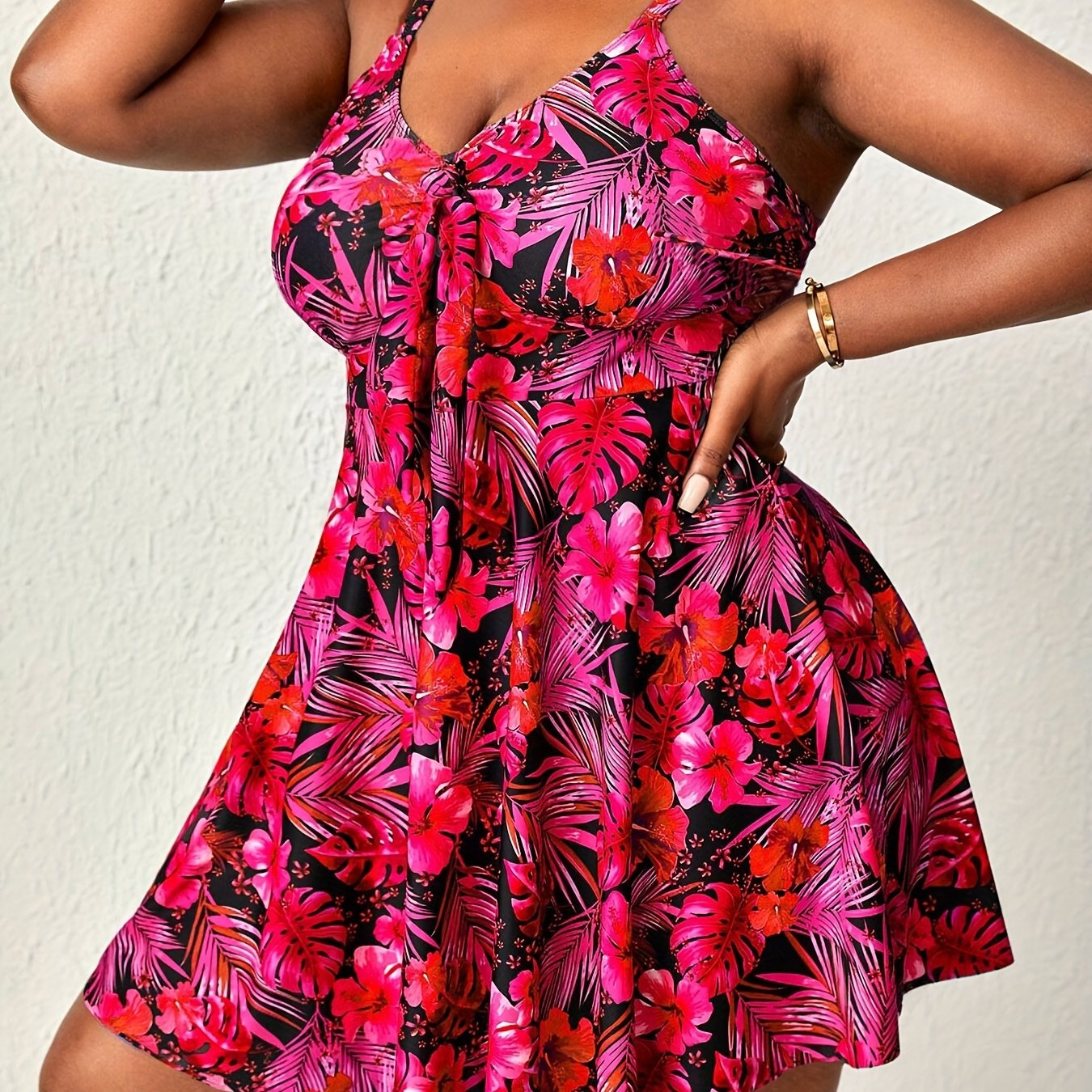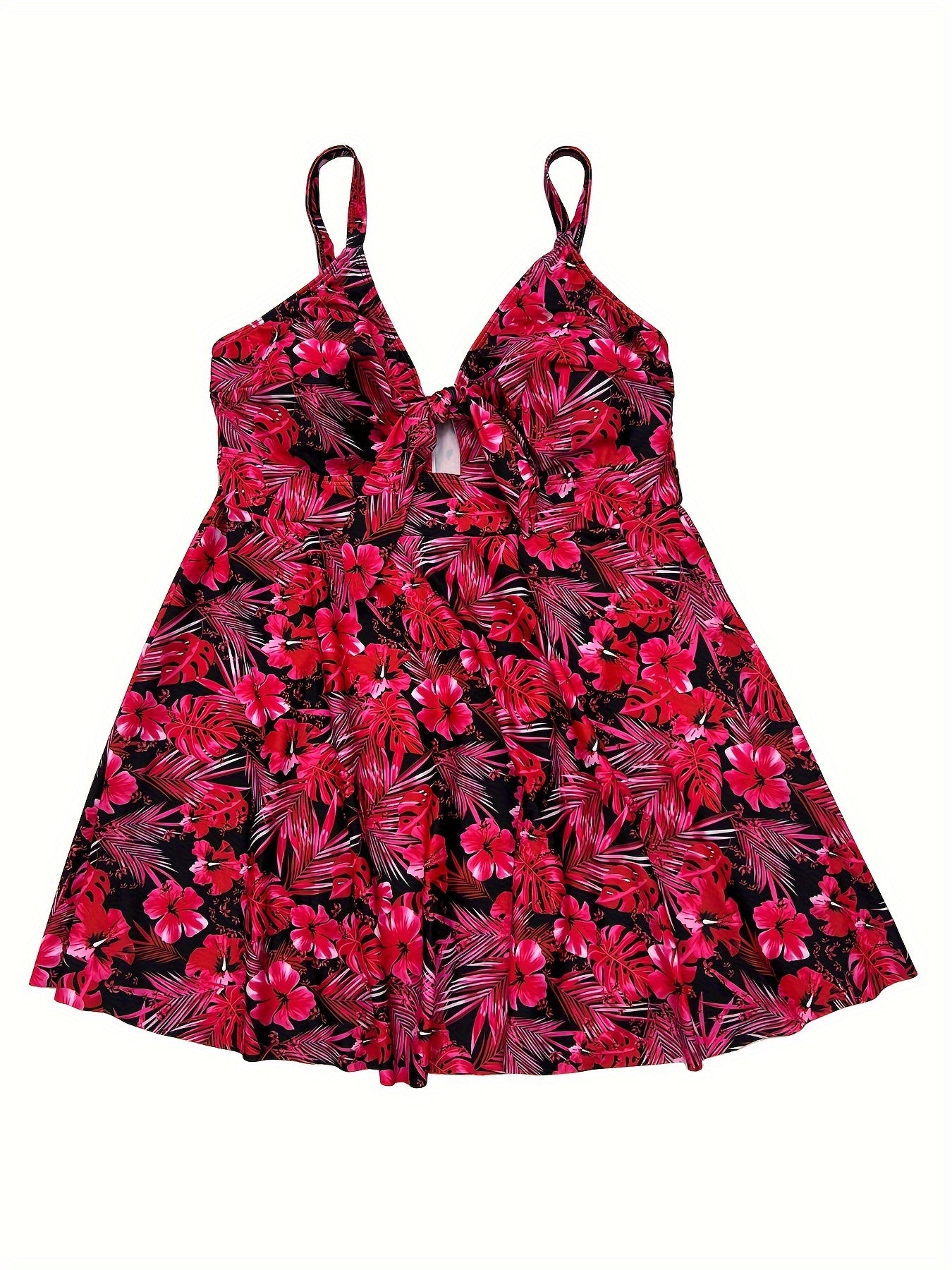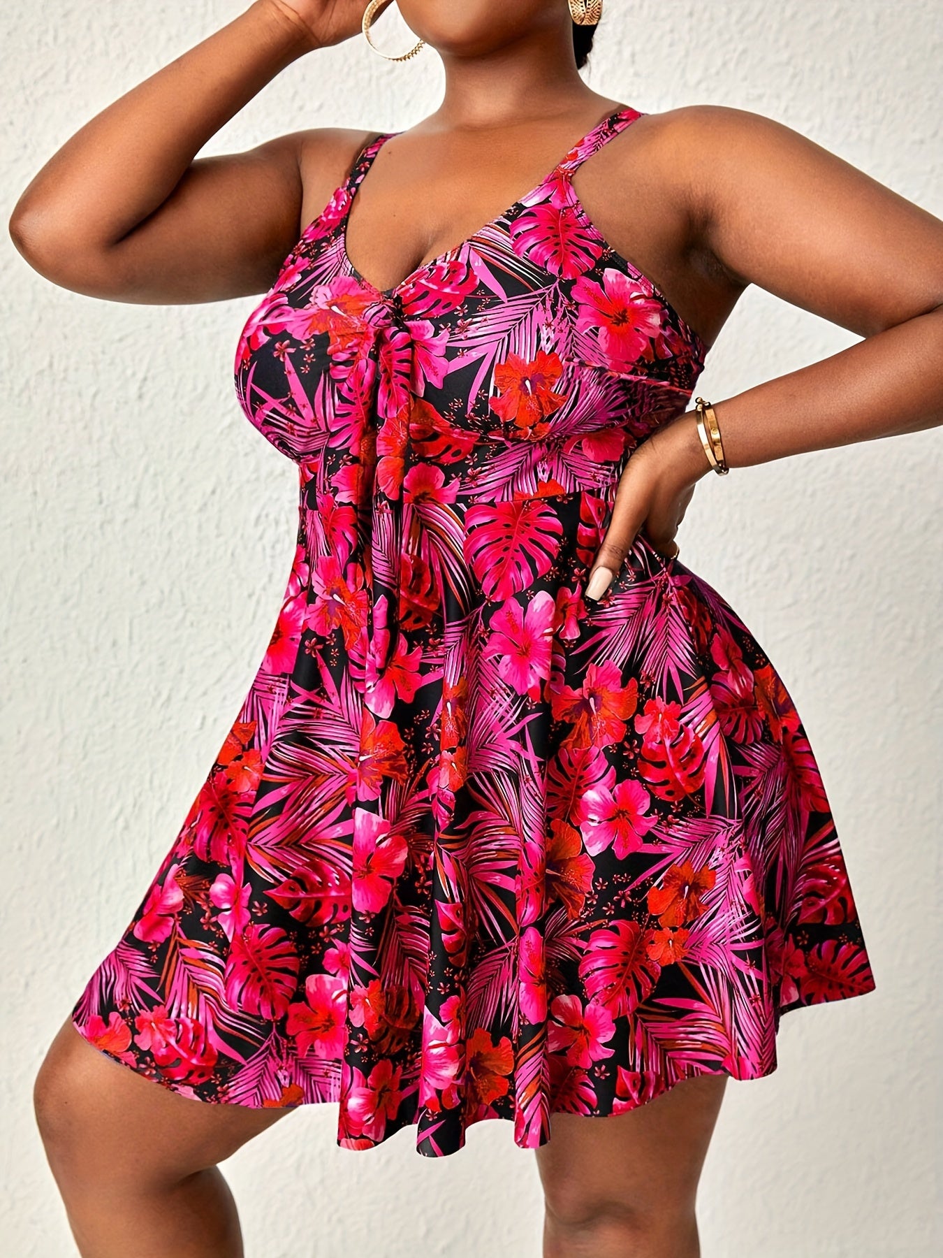 Zarif gullar bilan tankini to'plami, olib tashlanadigan yostiqlar va V-shakl, cho'ziluvchan polyester va elastan aralashmasidan tayyorlangan.