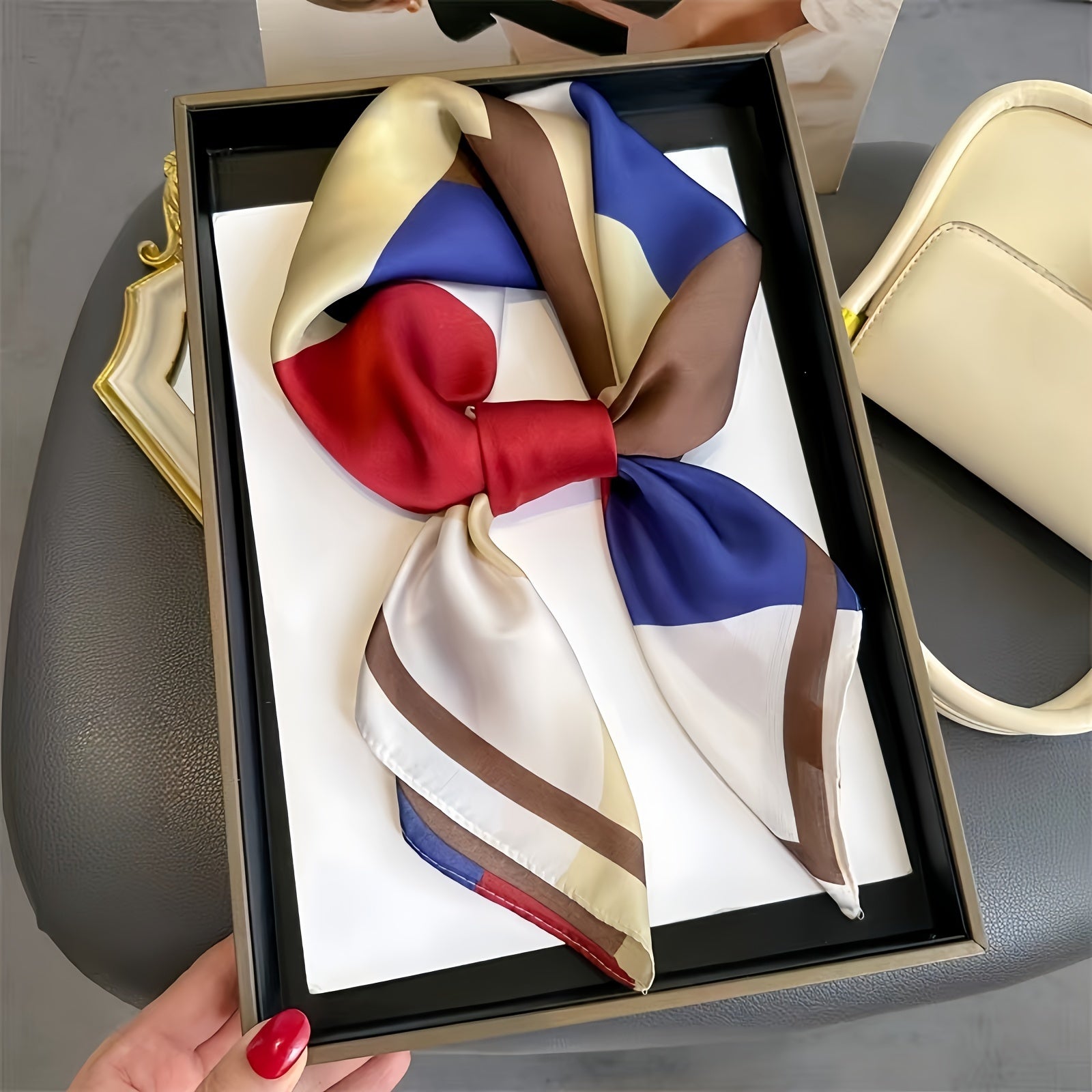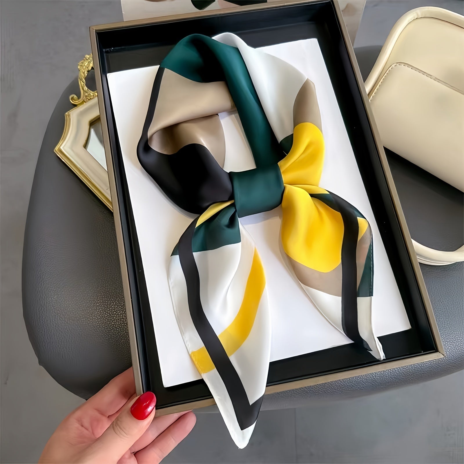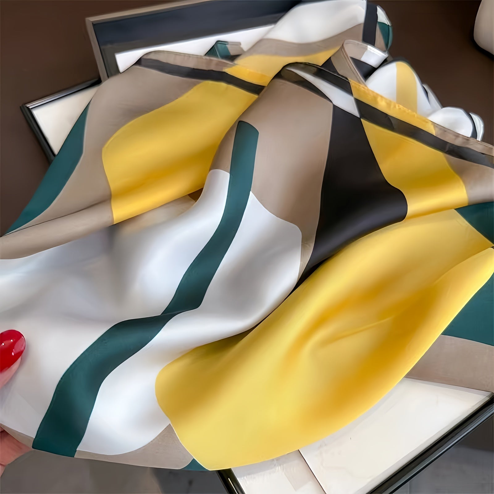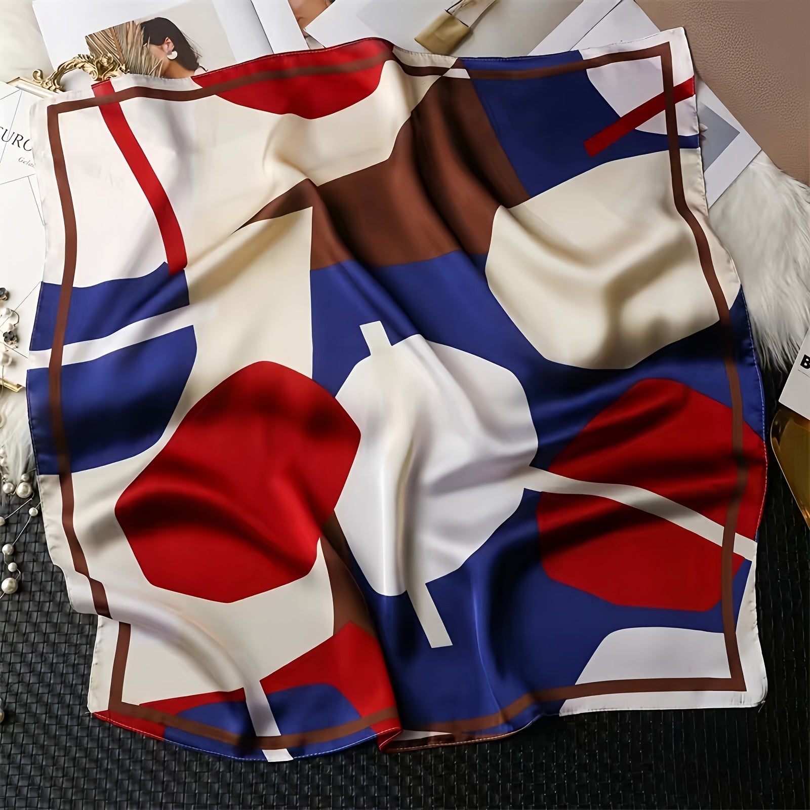 Ayollar uchun geometrik satinning kvadrat sharf 69.98cm yumshoq silliq moda bo‘yi bandana shalvar