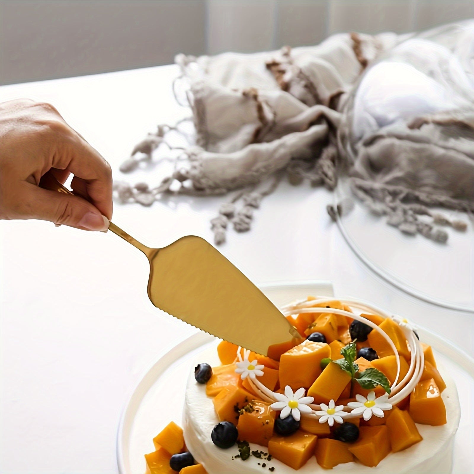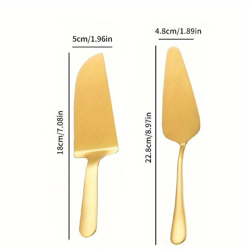 Zarif oltin tort pichog'i va xizmat ko'rsatish to'plami, to'ylar, partiyalar va har kuni foydalanish uchun ideal. Nikel qotishmasidan tayyorlangan, idish-tovoq tozalash mashinasida yuvish mumkin.