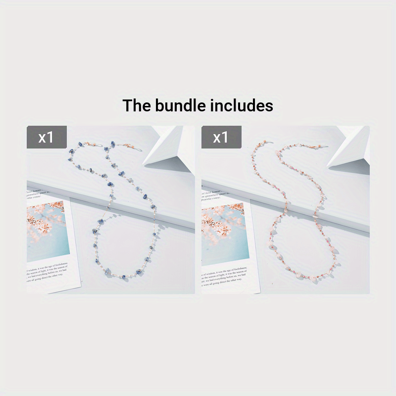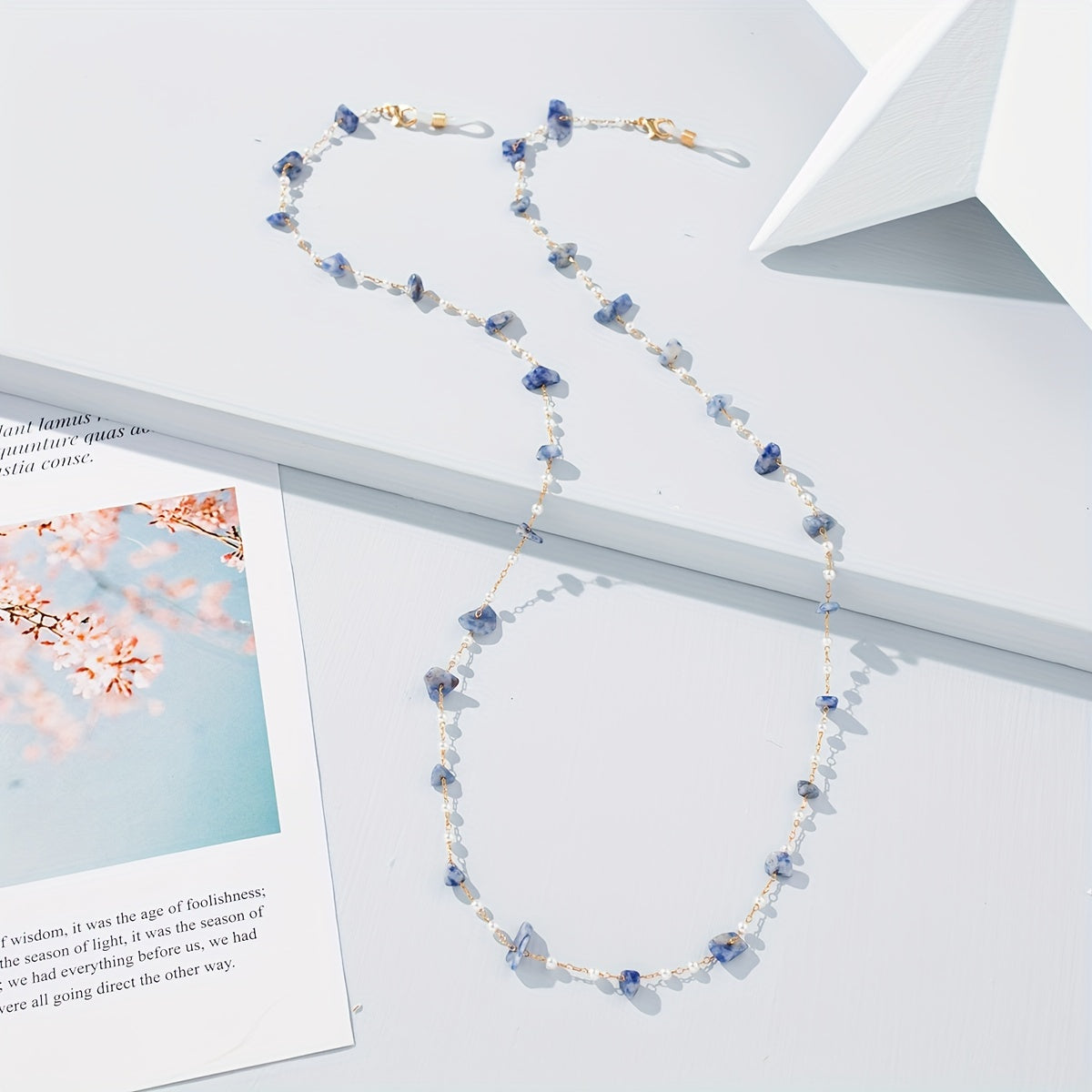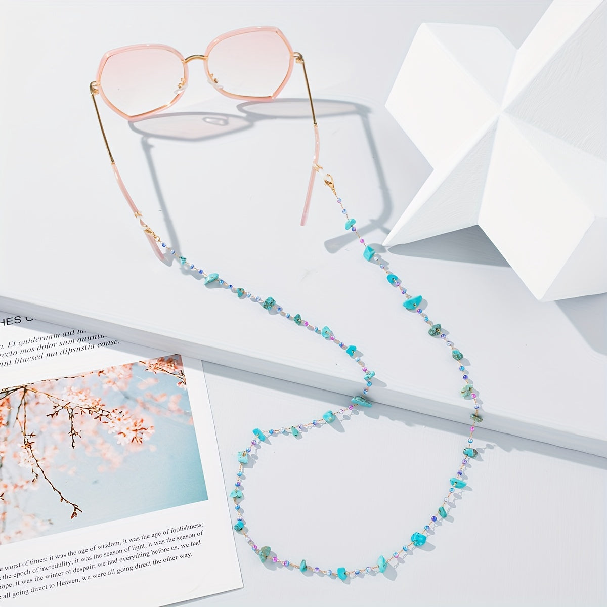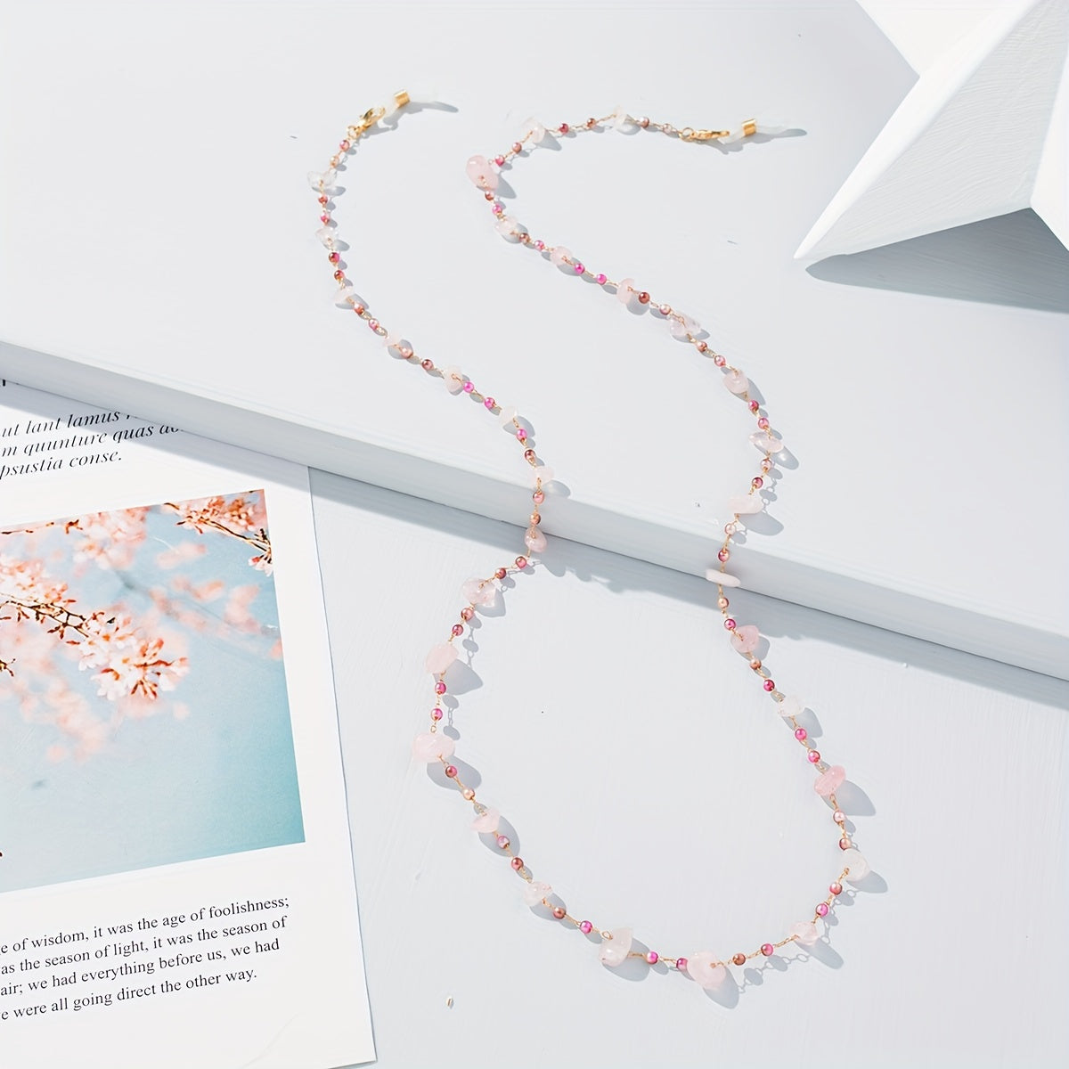 Nozik halter ko'zoynak zanjiri, notekis maydalangan tosh va aralash materiallardan tayyorlangan, ayollar uchun mukammal.