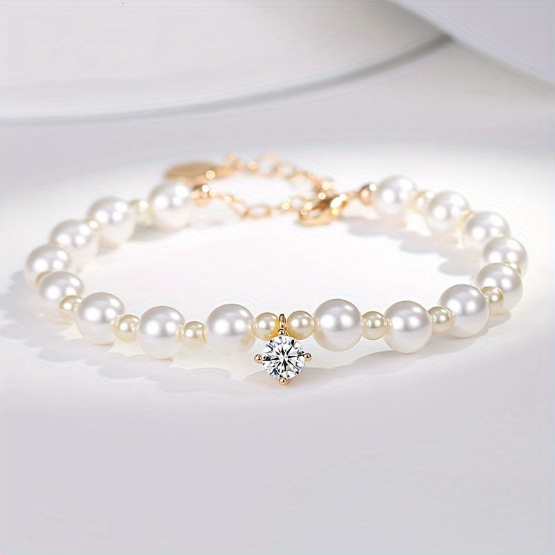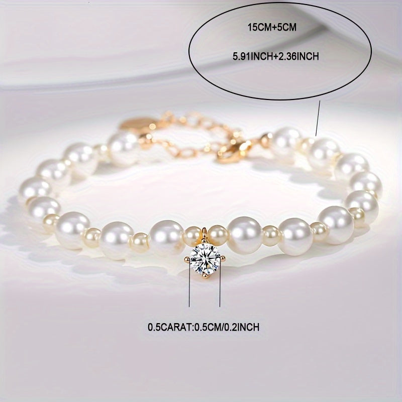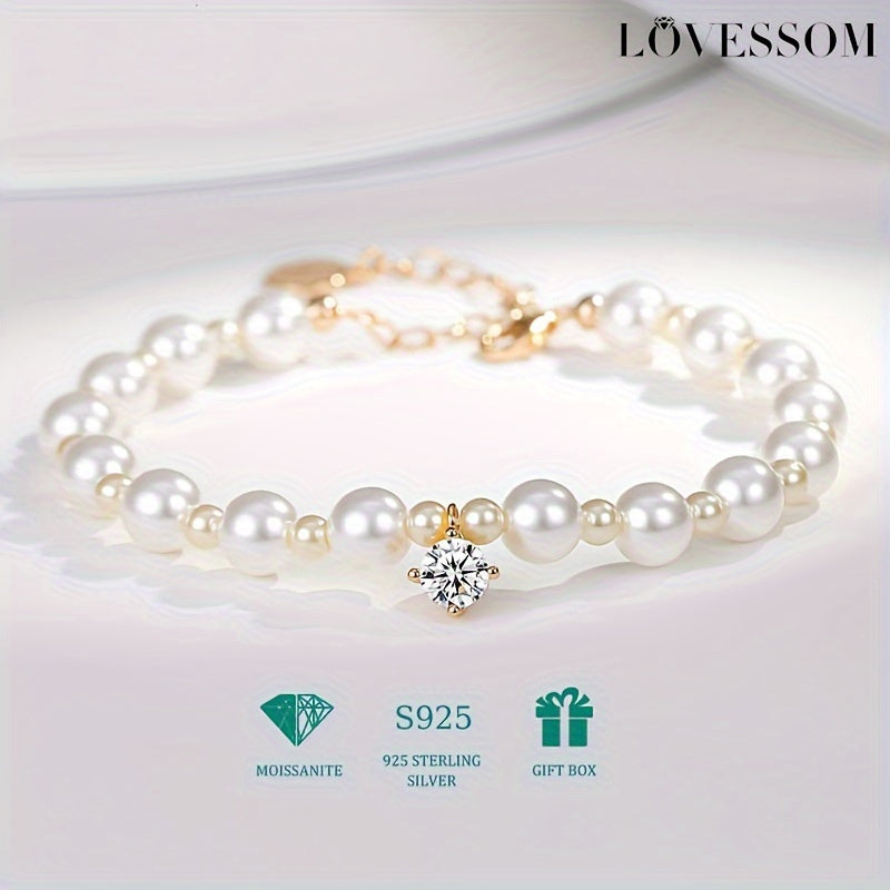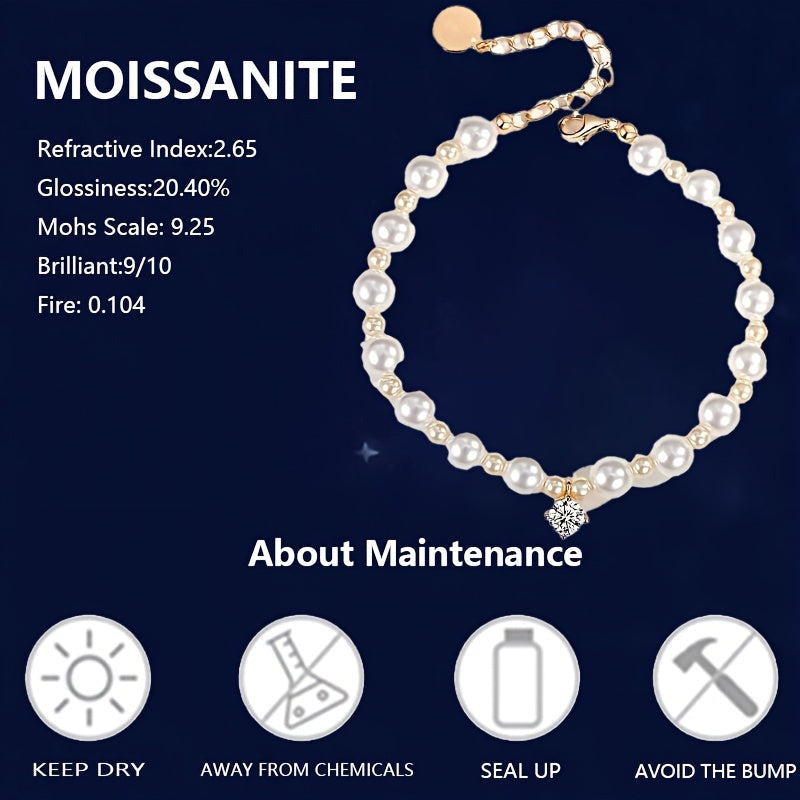 Zarif Qo'l Bilaguzuk Zargarlik To'plami, 0.5 Karat Moissanite Pendanti, Qobiq Marvarid To'plari va 925 Sterling Kumush bilan sovg'a qutisi.