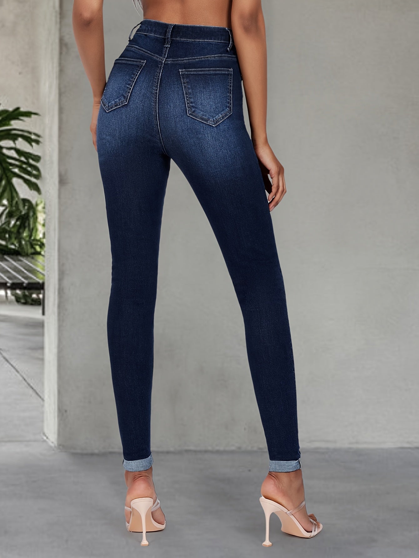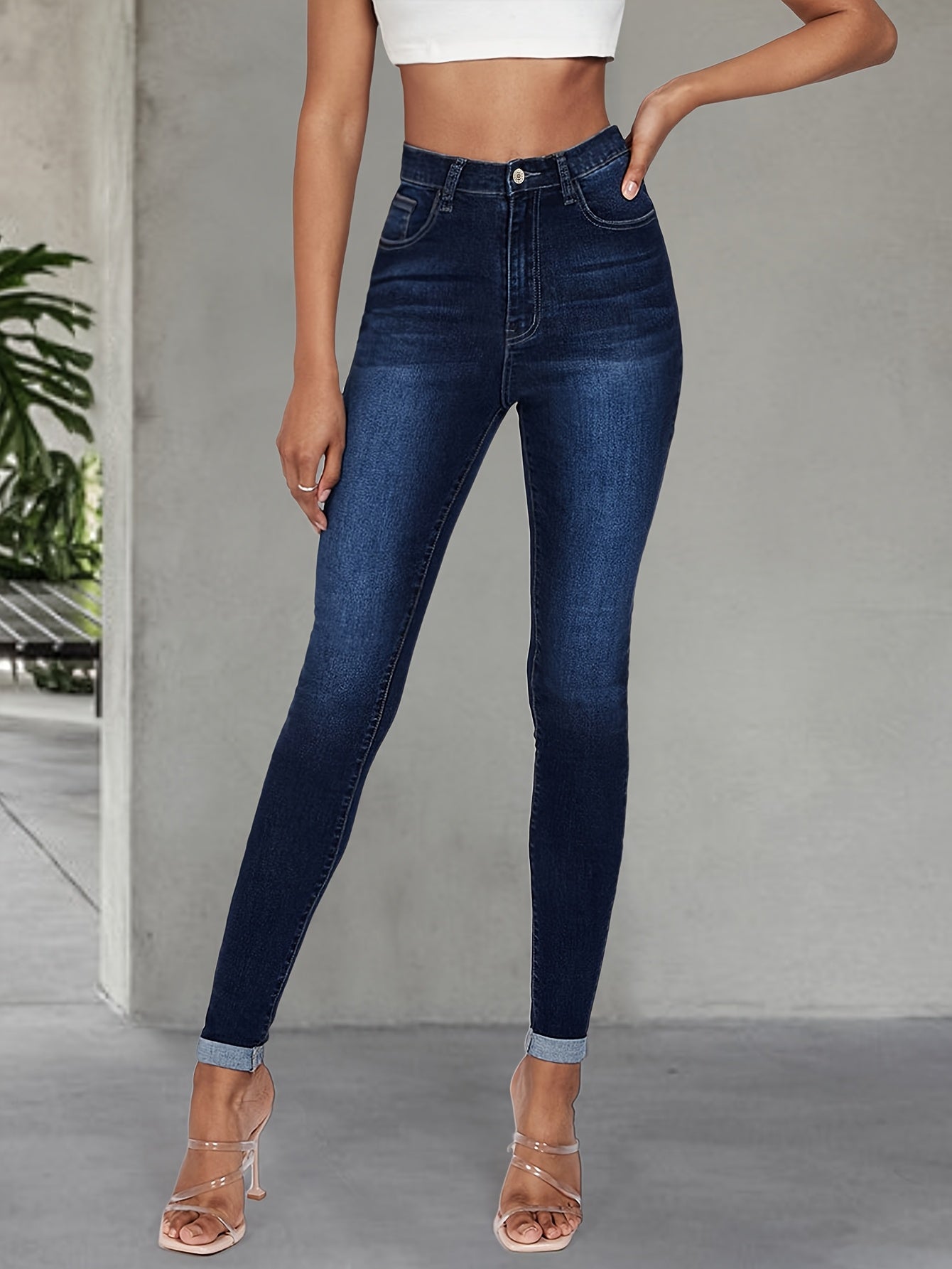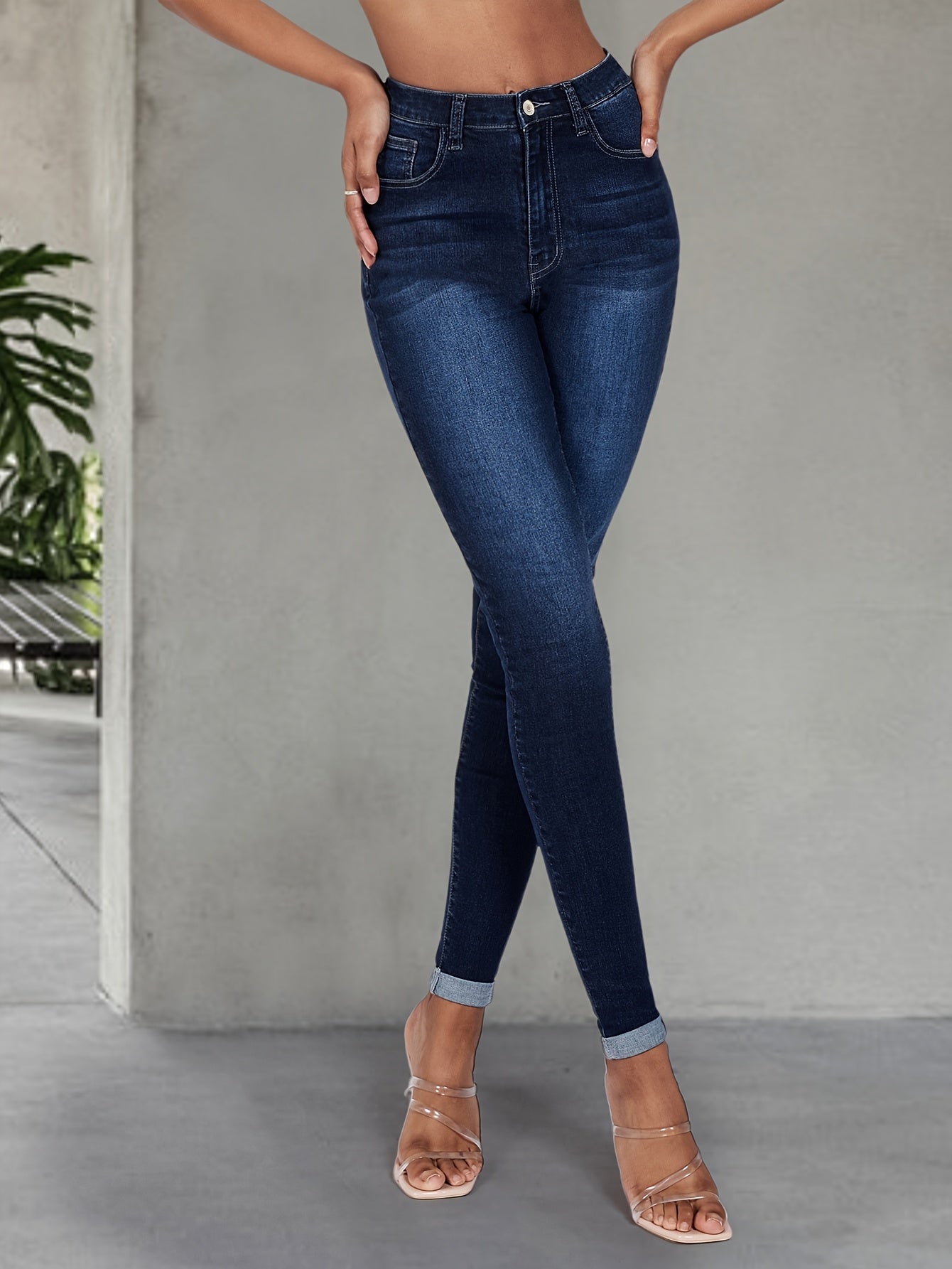 Ayollar uchun zamonaviy yuqori cho'ziluvchan tor jinsi shimlar, tugma tafsiloti bilan uzun uzunlikda, barcha mavsumlar uchun mukammal.