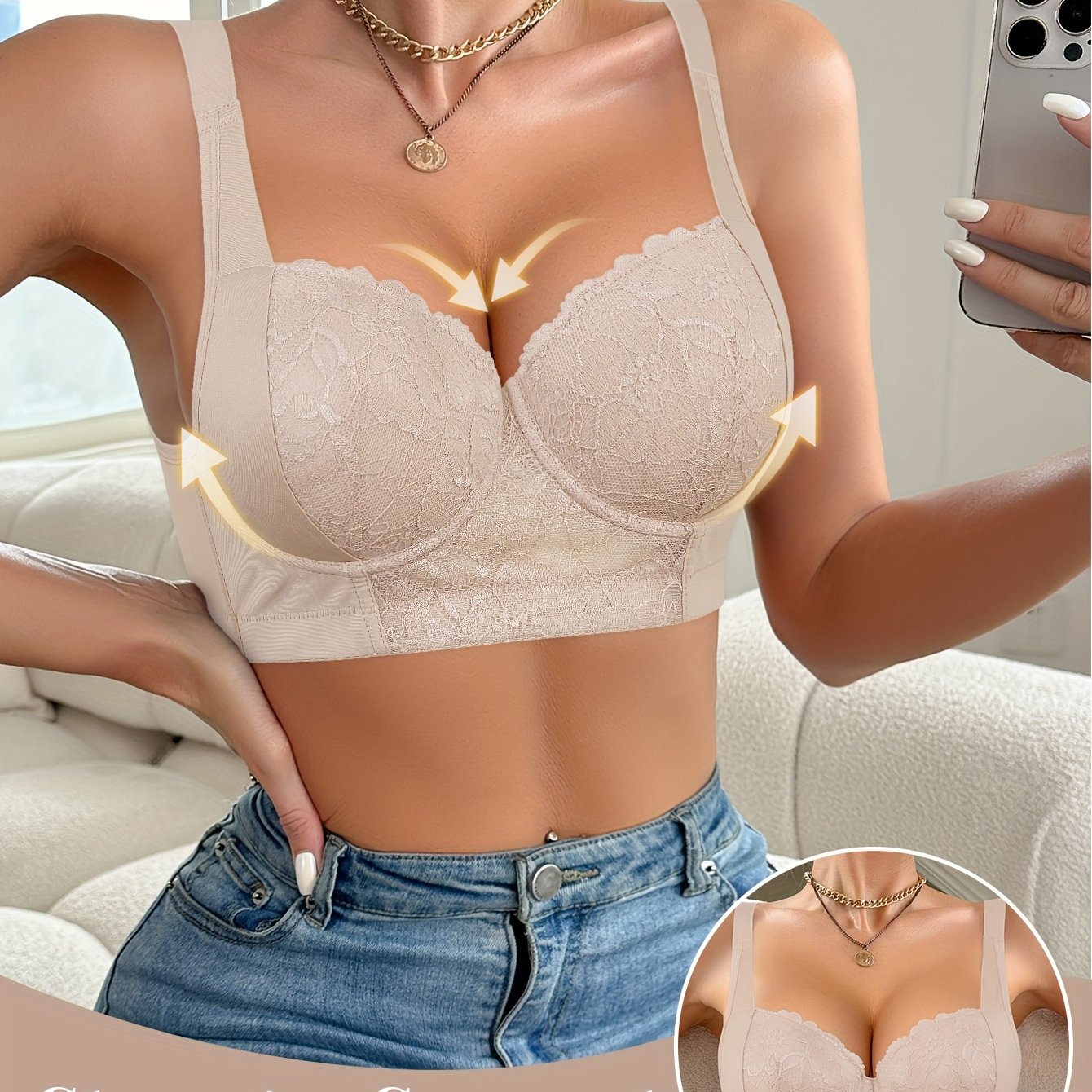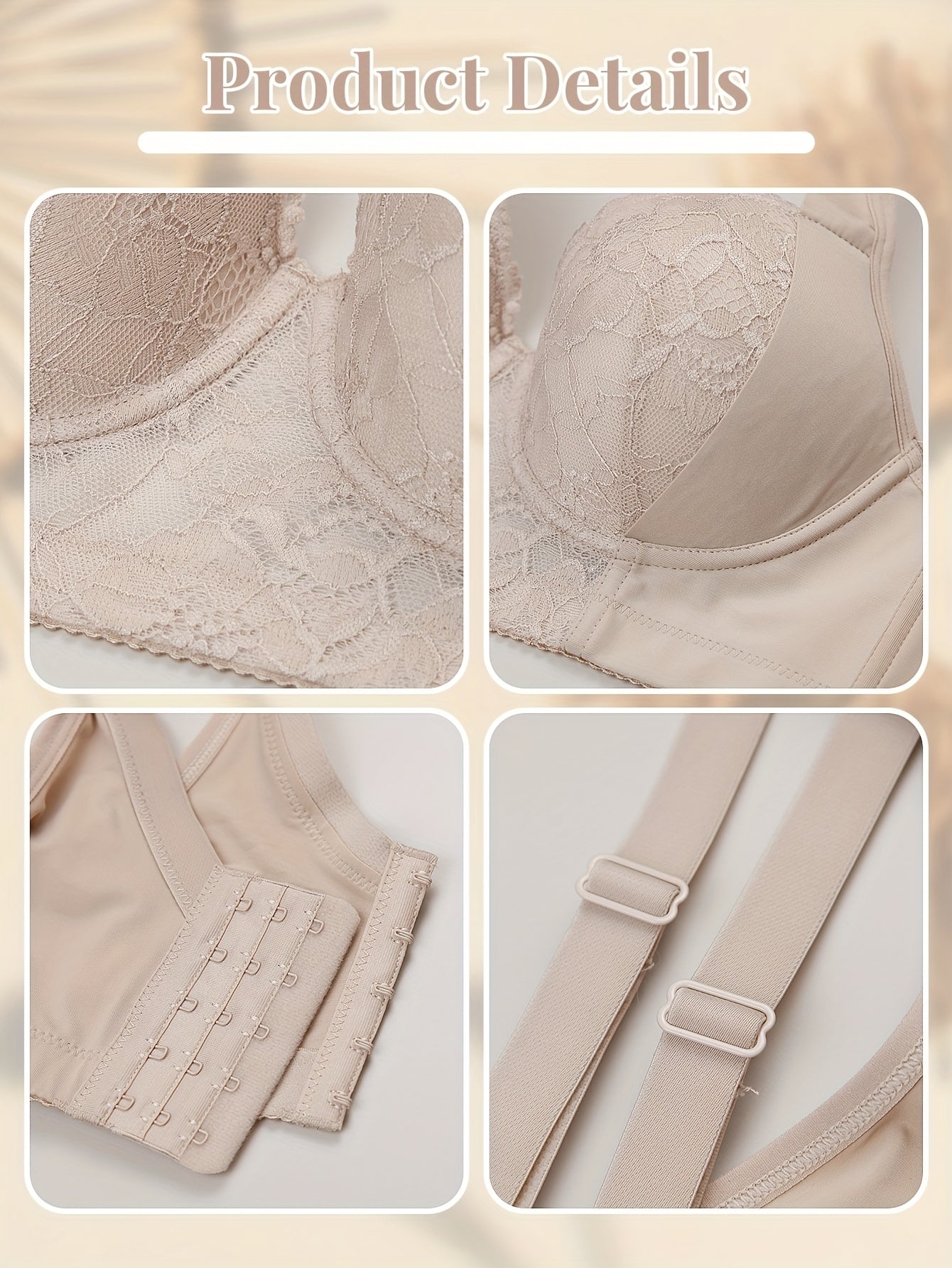 Yuqori qo'llab-quvvatlash va olib tashlanmaydigan yostiqlar bilan bezatilgan nafis dantel push-up brass. Oq gullar danteli bilan bezatilgan, qo'l bilan yuvish mumkin. Qulay kiyish uchun ayollarga mo'ljallangan ichki kiyim.