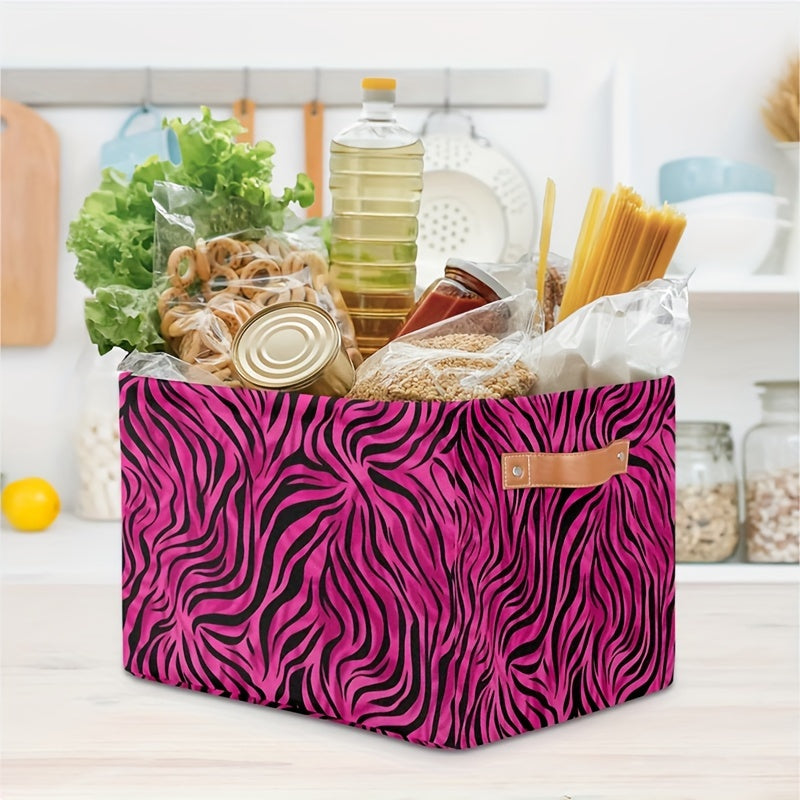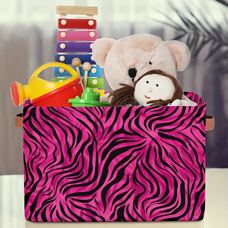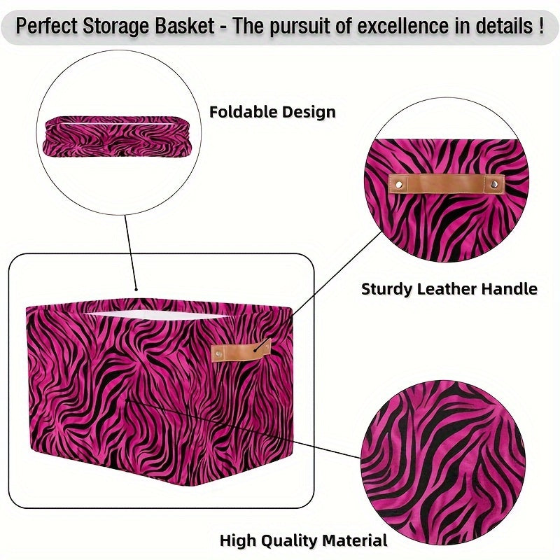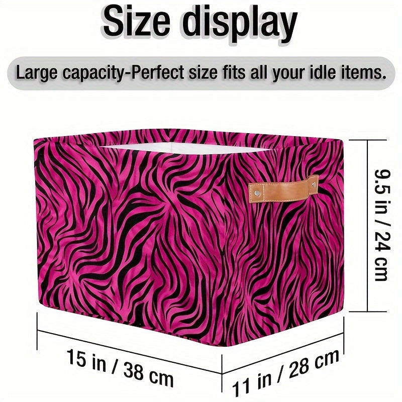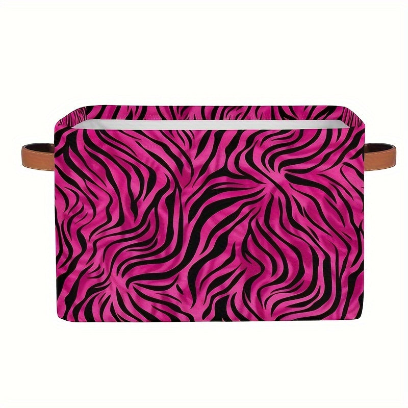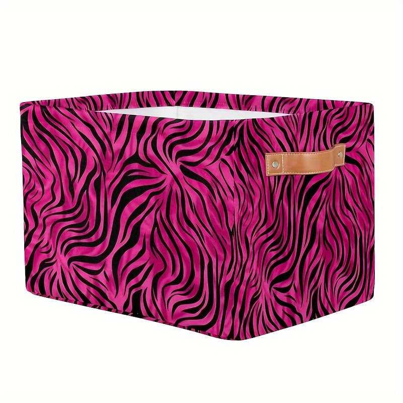 Zarif Leopard naqshli saqlash qutisi tutqichlar bilan - O'yinchoqlar, kiyimlar va sovg'alar uchun mustahkam tashkilotchisi, shaftoli qizil rangda - Oson saqlash uchun tekis egiladi