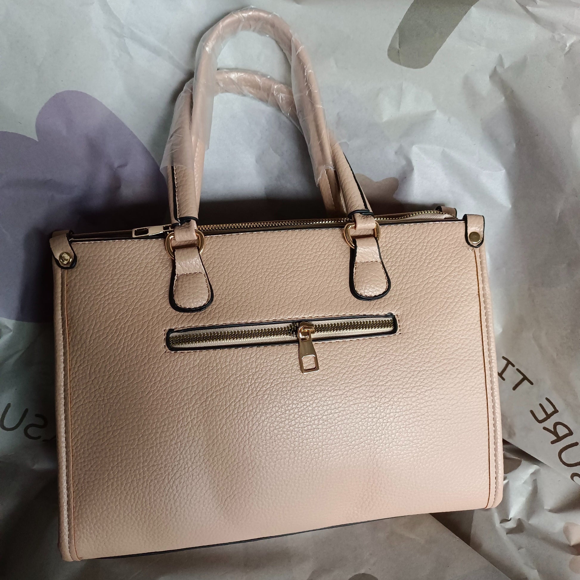 Ayollar uchun katta sig'imli, bir xil rangdagi va ko'p funksiyali uslubdagi nafis to'plam sumkasi.