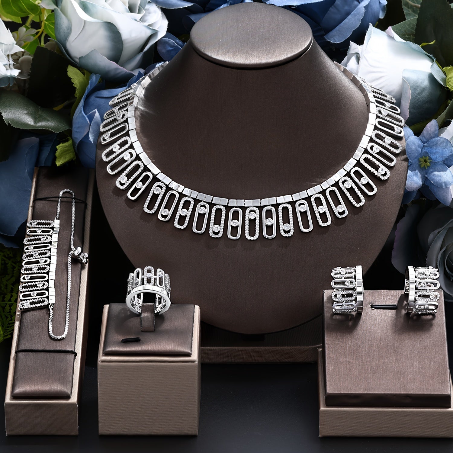 Ayollar uchun nafis to'y zargarlik to'plami - Platin qoplangan mis, zirkoniya mozaikasi bilan, CZ marjon va bilaguzukni o'z ichiga oladi - Ramazon bayramlari kabi maxsus tadbirlar uchun mukammal - Har mavsumda moslashuvchan va ko'p maqsadli