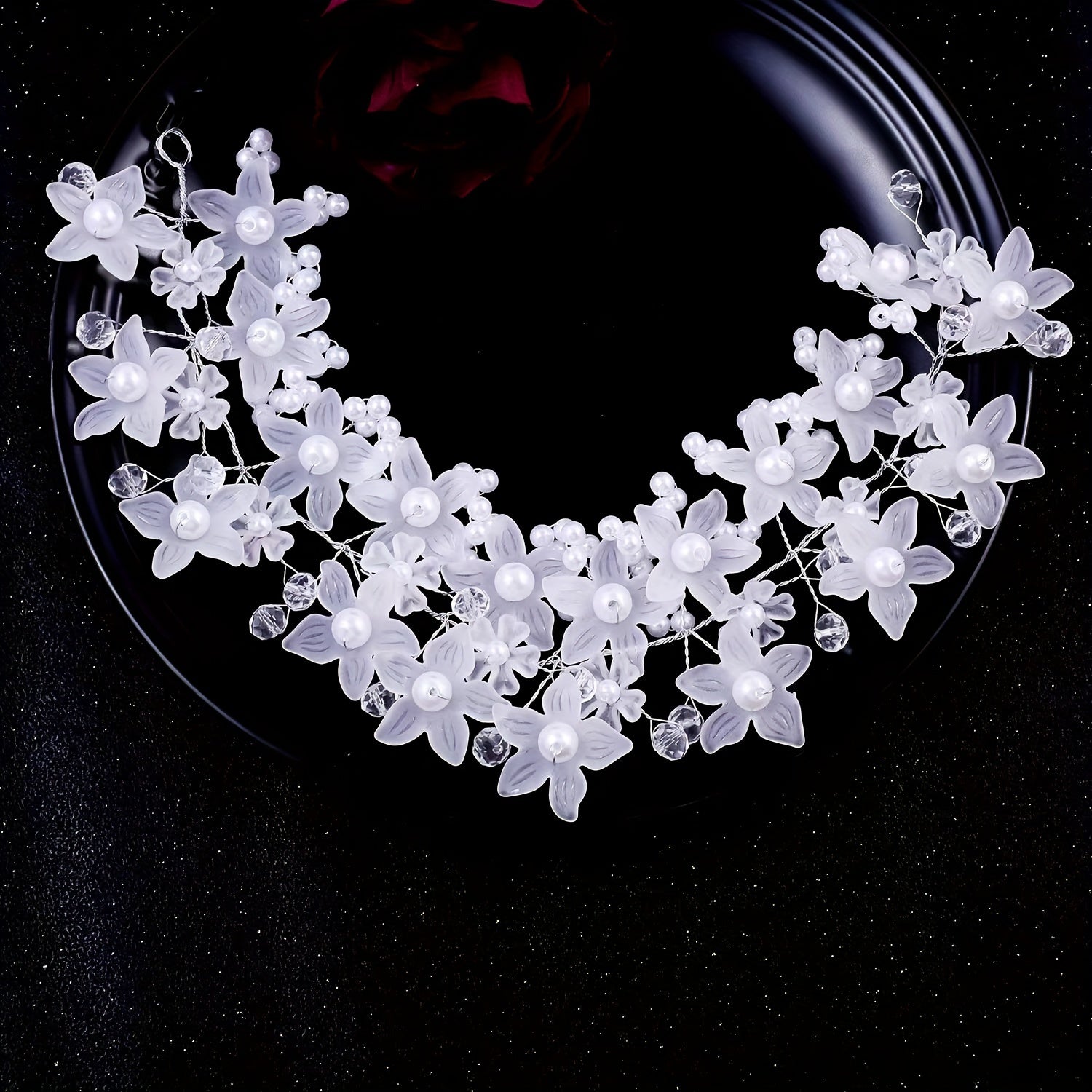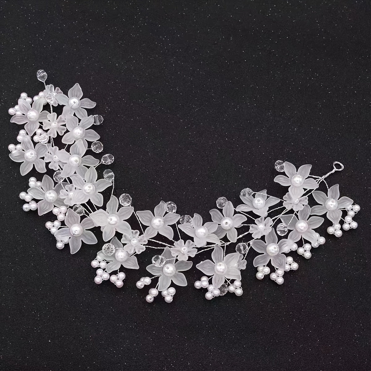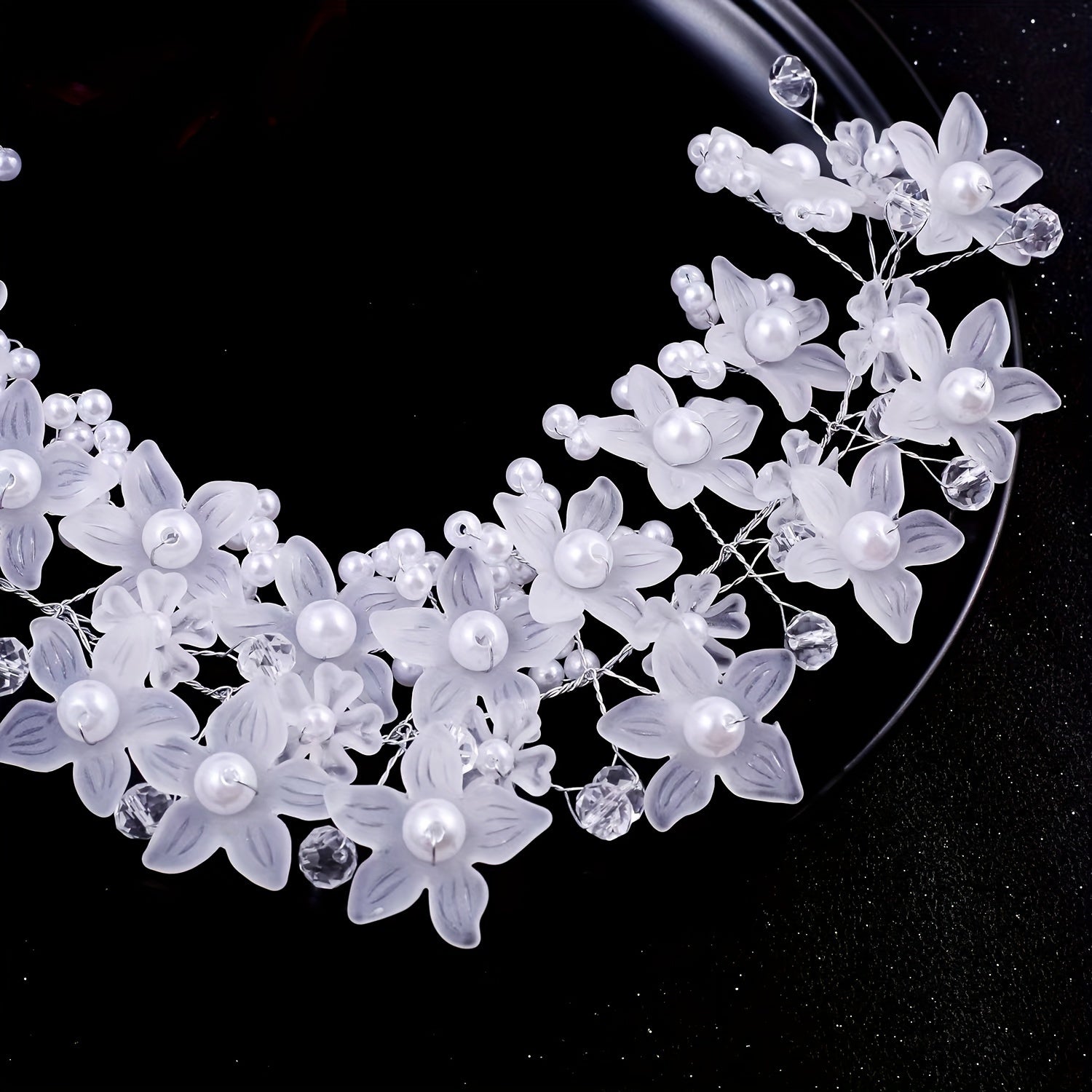 Ayollar uchun kelinlar uchun oq faux marjonli gulli soch uzuklari uchun bosh band