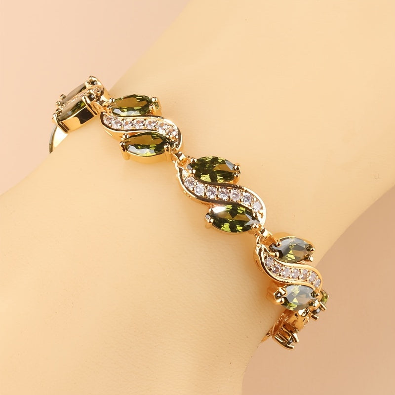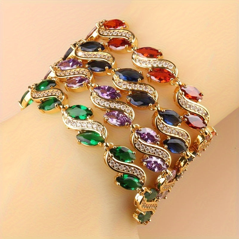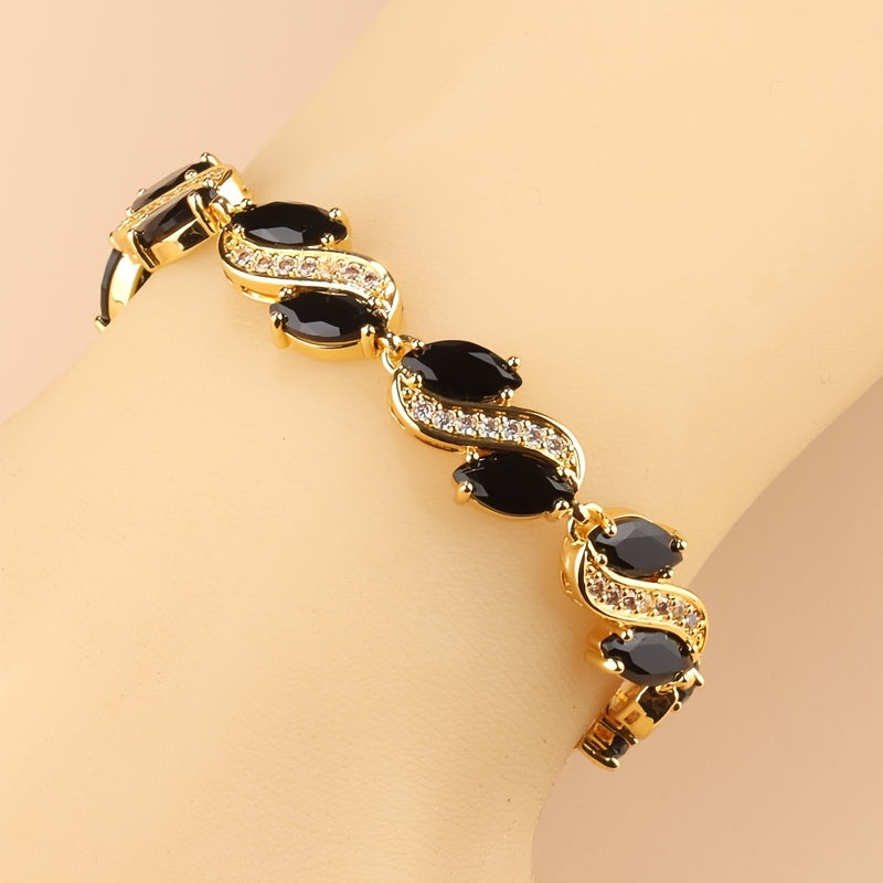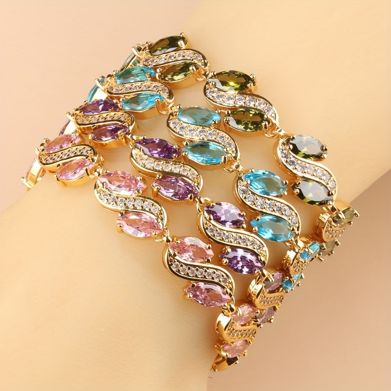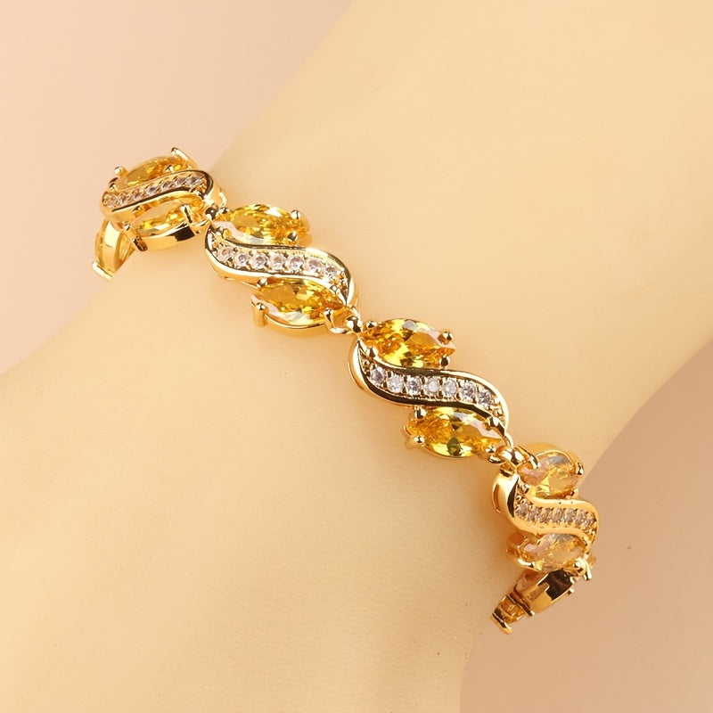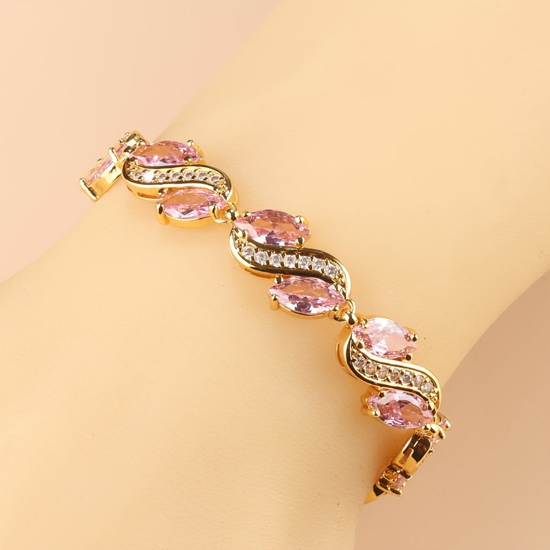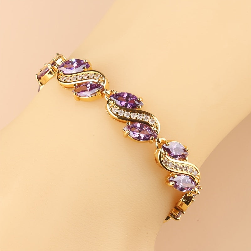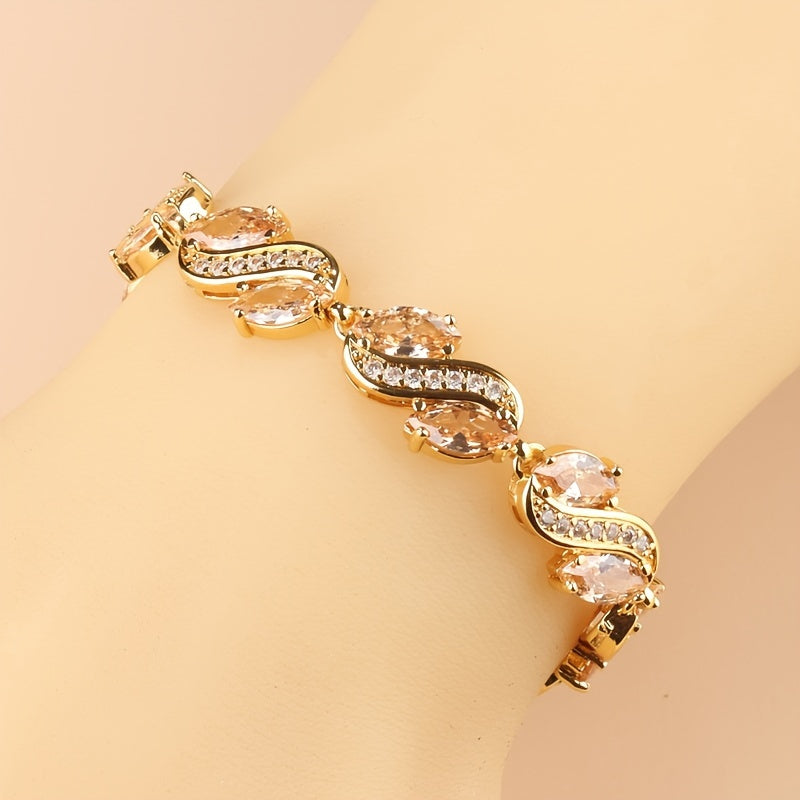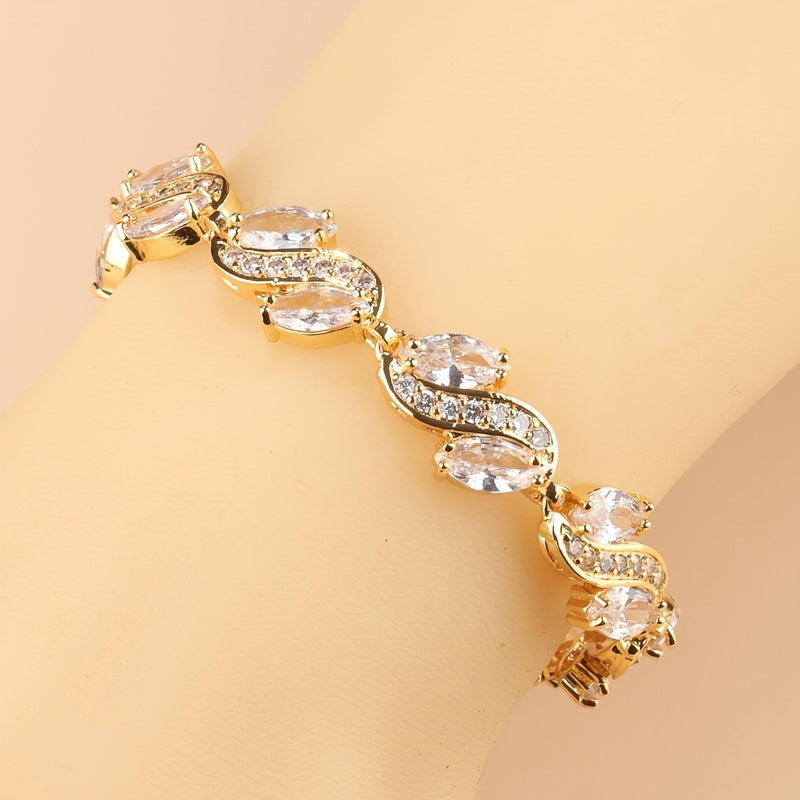 Zarif ayollar bilaguzugi, hashamatli kubik zirkon zanjir bilan - to'ylar va partiyalar uchun ideal, zamonaviy mis zargarlik tanlovi.