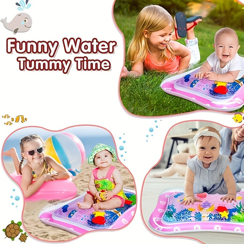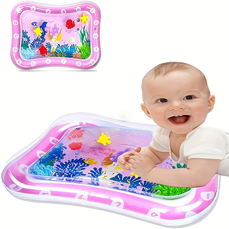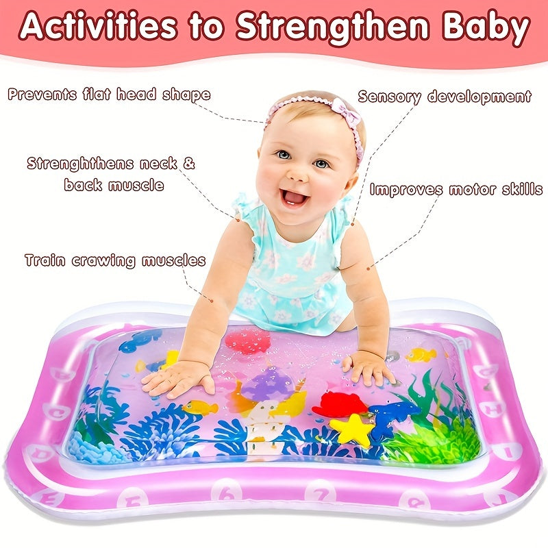 Kichkina qornik uchun o'yin matosi, bolalar va chaqaloqlar uchun inflatsiyalanuvchi suv o'yin matosi, pushti, 3-24 oy