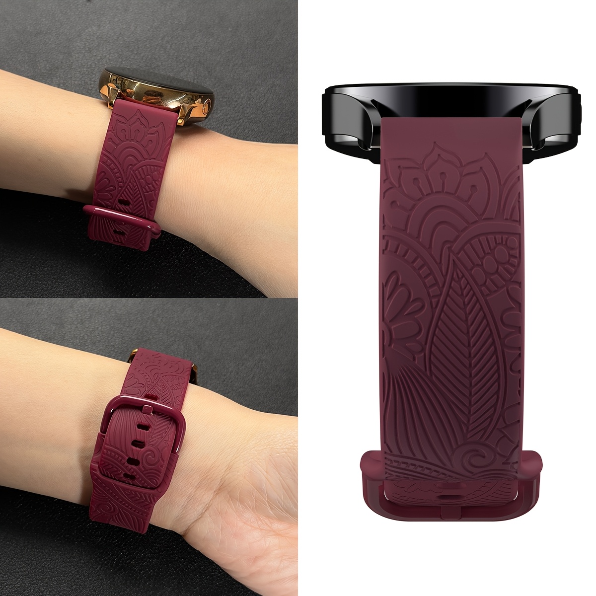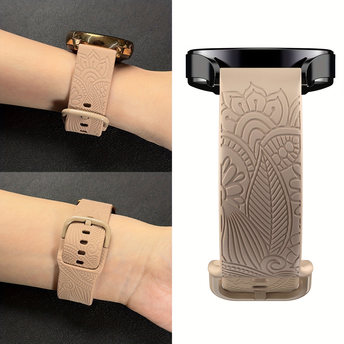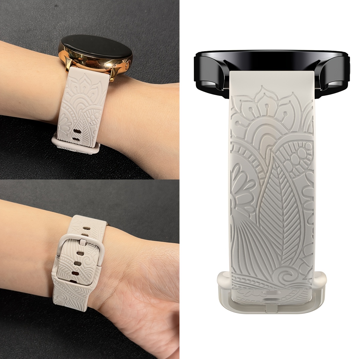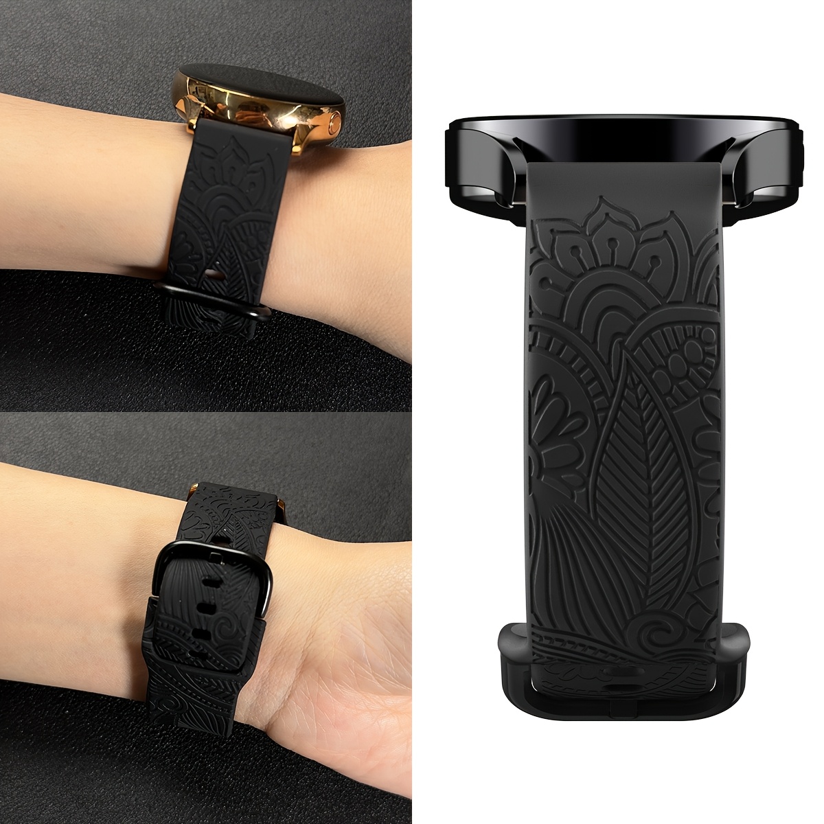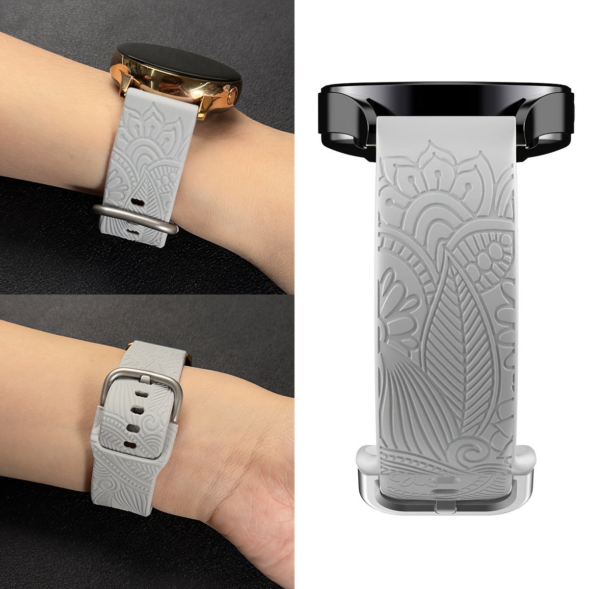 O'yma gullar naqshli silikon soat tasmasi, kengligi 1.78 sm, bir nechta Samsung Galaxy va Garmin soatlari uchun mos keladi, mustahkam va zamonaviy almashtirish tasmasi, egiluvchan silikon material.