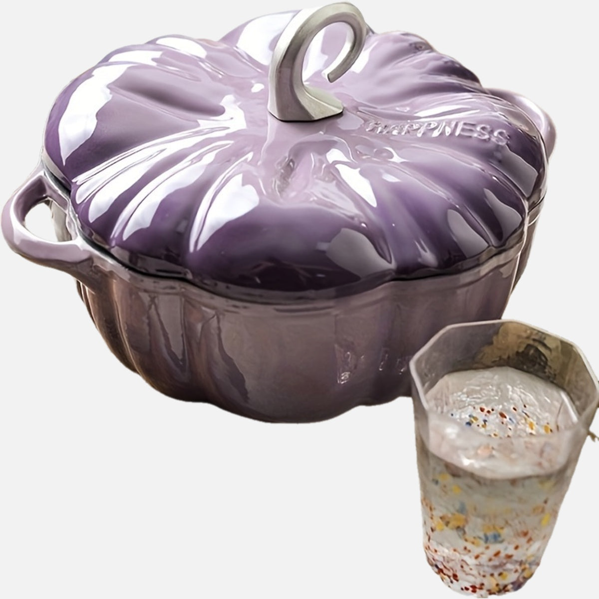 Zaruriy oshxona asboblari: Qovoq shaklidagi quyma temir emal sho'rva qozoni - yopishqoq emas, gaz va induksiya pechlari uchun ko'p funksiyali, qaynatish va pishirish uchun mukammal