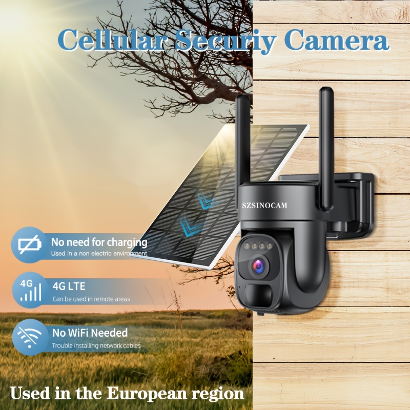 EU mobil xavfsizlik kamerasi quyosh energiyasi bilan, SIM karta (Verizon, AT&T, T-Mobile), HD PTZ, tungi ko'rish, harakatni aniqlash, 2 tomonlama aloqa va SD/Cloud saqlash bilan simsiz tashqi kamera