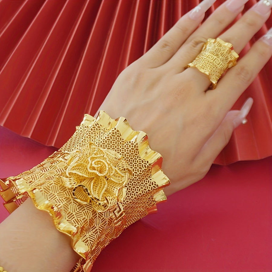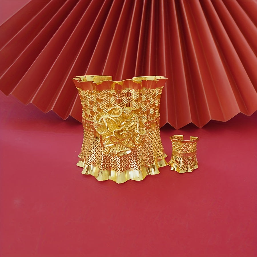 Zarif 24K oltin qoplangan mis bilaguzuk va uzuk to'plami - Maxsus tadbirlar va voqealar uchun ideal, yilning istalgan vaqtida foydalanish uchun mos