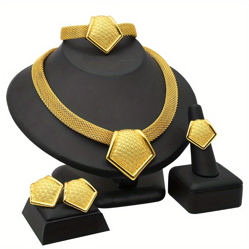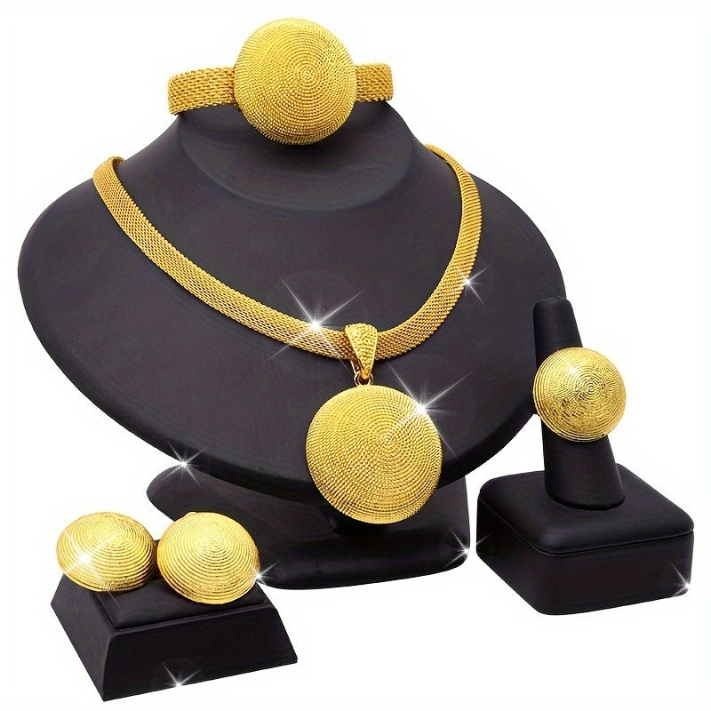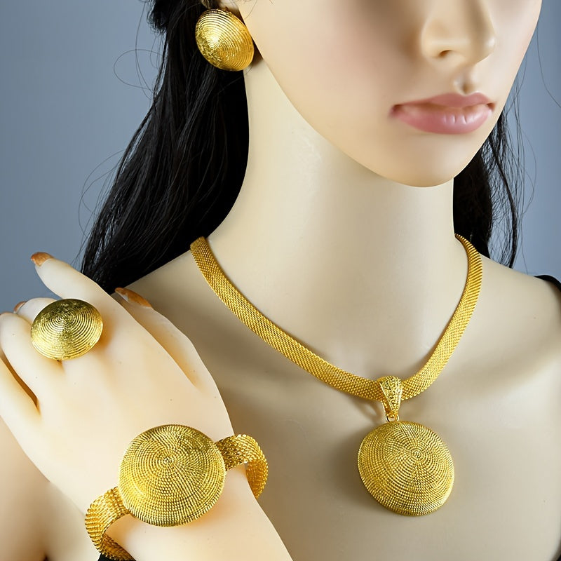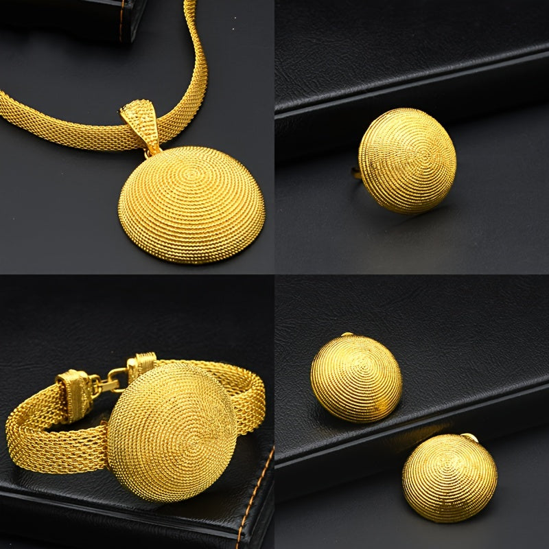 Nikoh uchun 18K oltin bilan qoplangan zargarlik to'plami: taqinchoq, quloq taqinchoq, uzuk, bilaguzuk