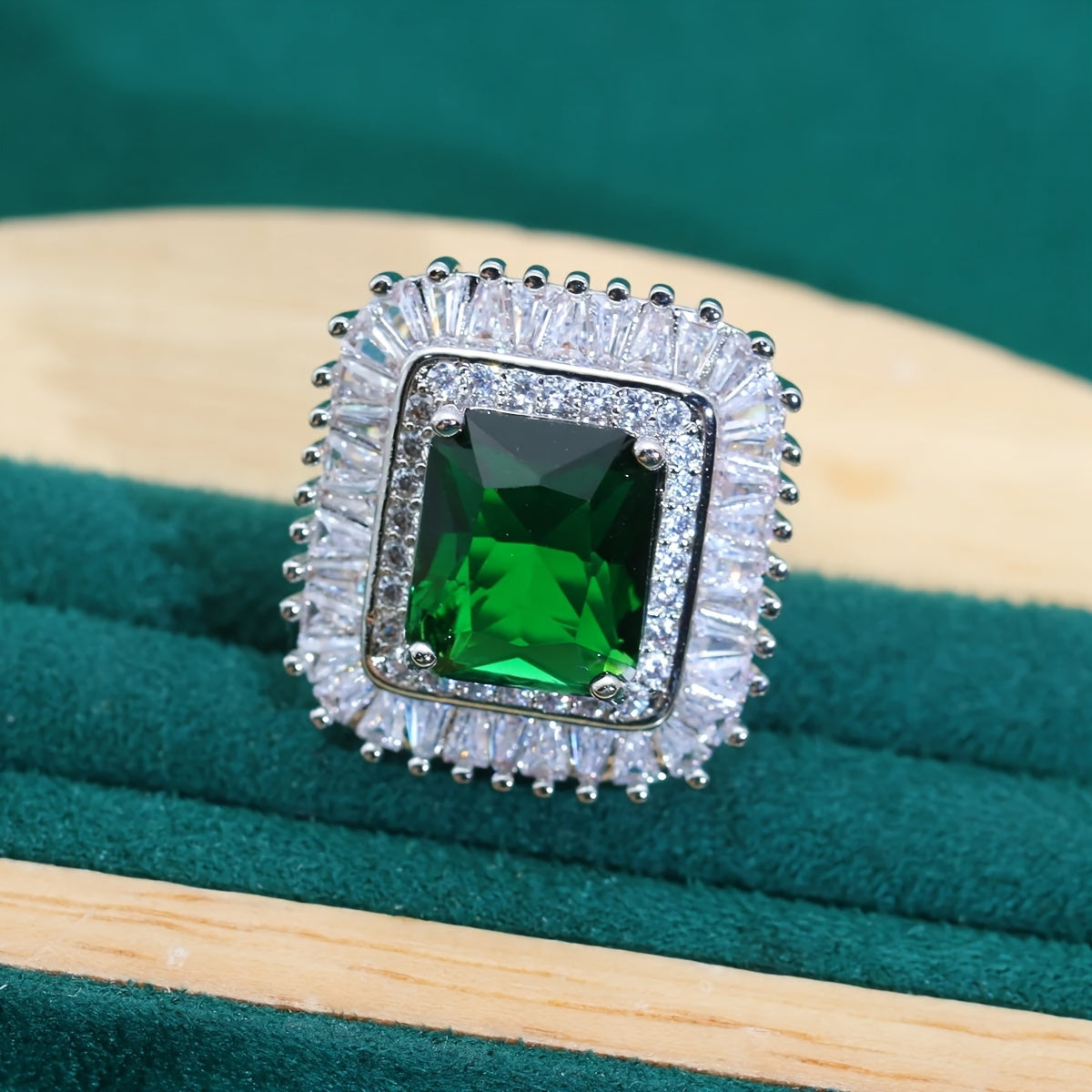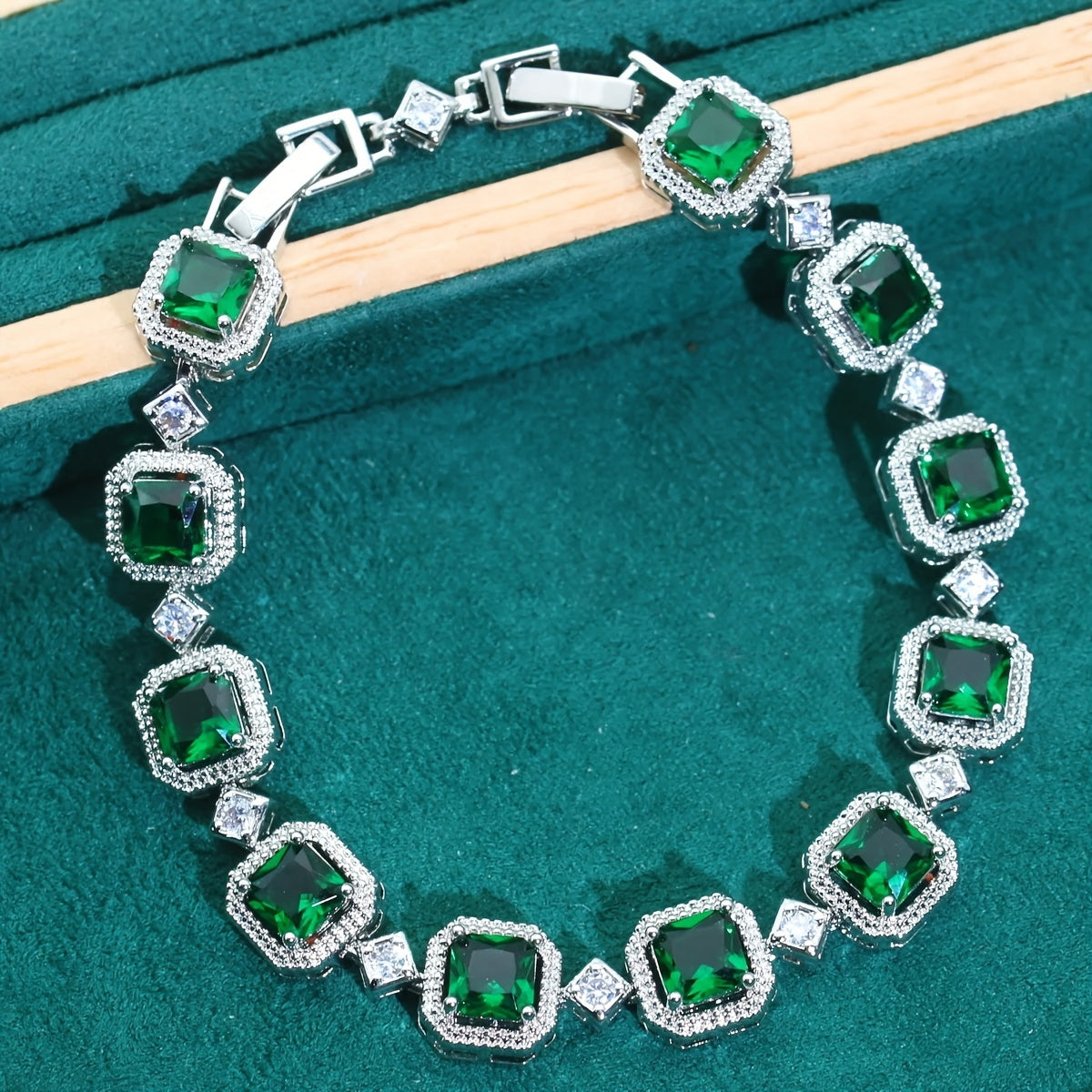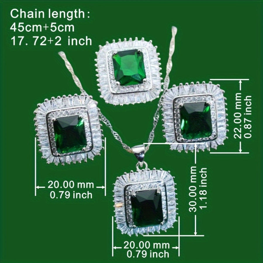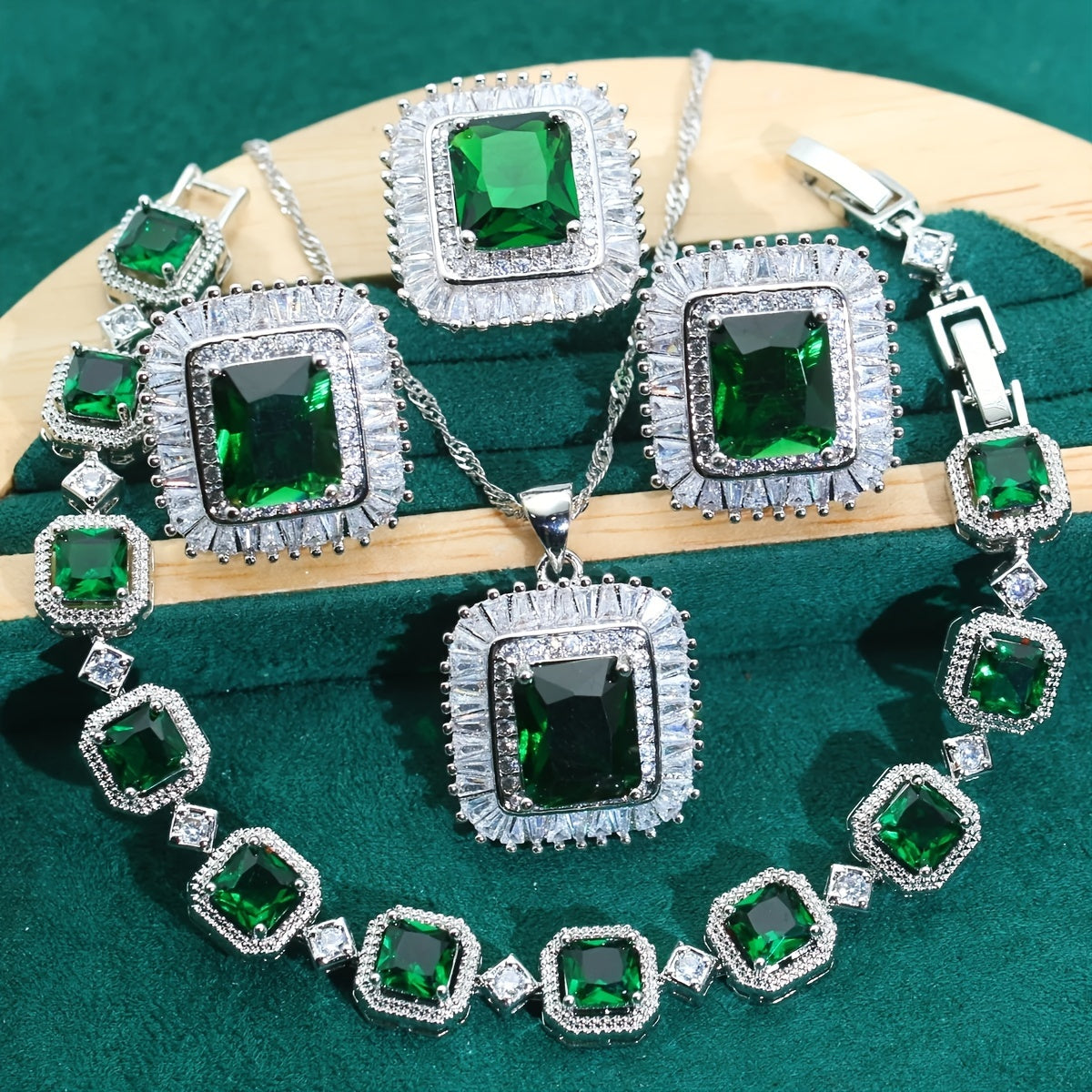 Ayollar uchun nozik hashamatli soxta yashil toshli zargarlik to'plami - platina qoplangan misdan va porloq zirkoniy toshlardan tayyorlangan, uzuk, bilaguzuk, marjon va sirg'alar bilan to'liq - to'y va maxsus tadbirlar uchun mukammal 5 qismli to'plam.
