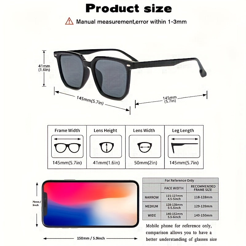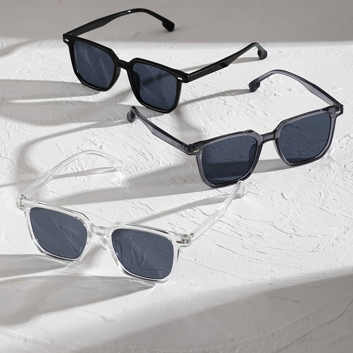 Erkaklar uchun 3 ta klassik kvadrat moda ko‘zoynaklar to‘plami, kundalik ko‘zoynak aksessuarlar