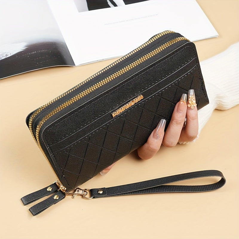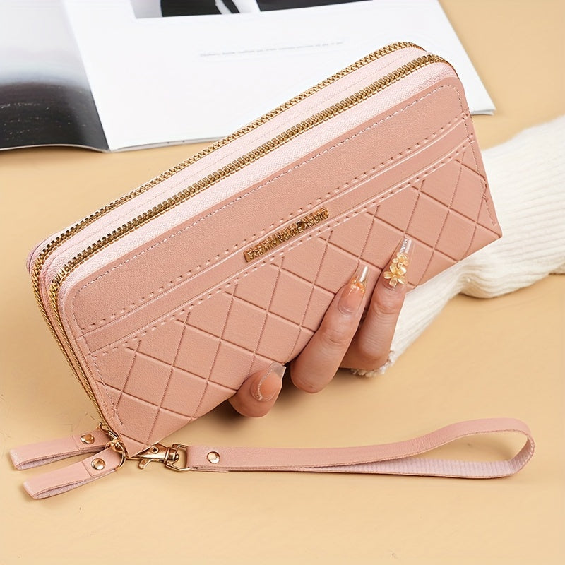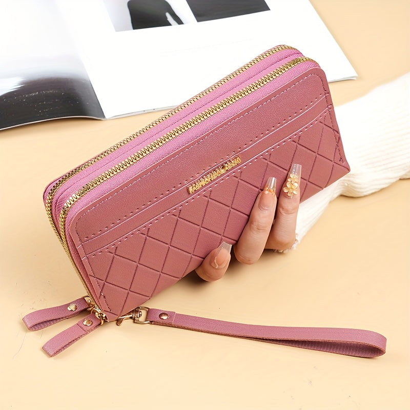 Moda Ikki Zipperli Uzun Hamyon, Argyle Naqshli Klyuchka Sumkasi, Ayollar uchun Bilak Moneta Sumkasi Mobil Telefon Sumkasi