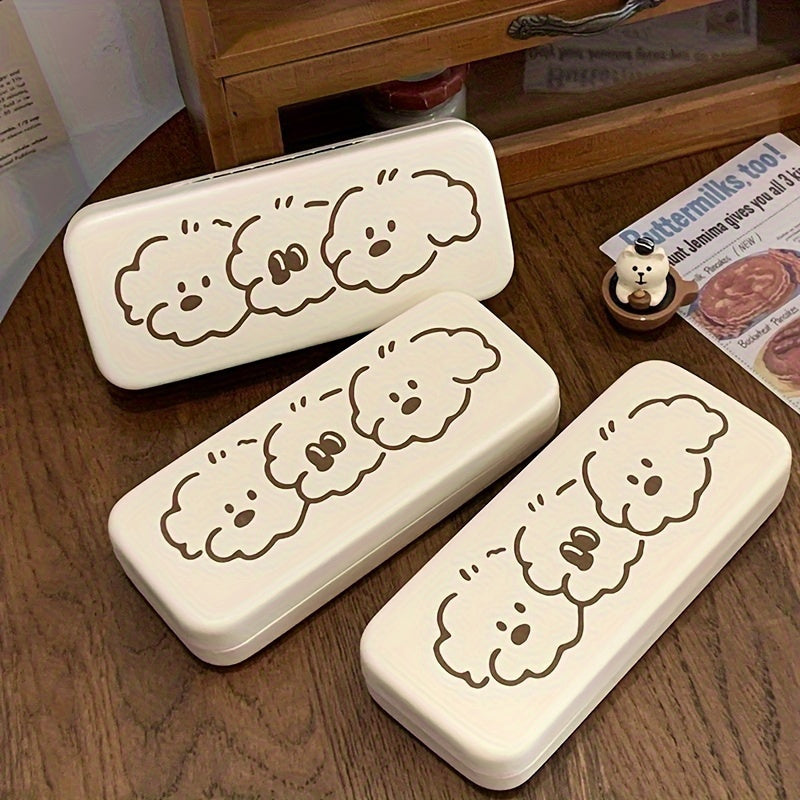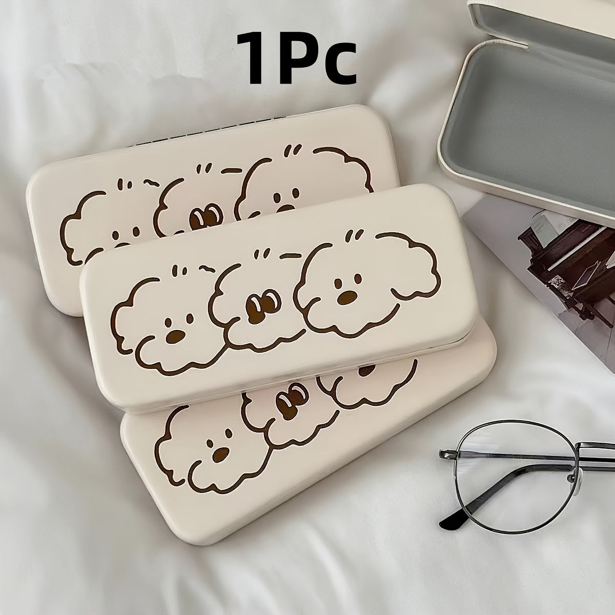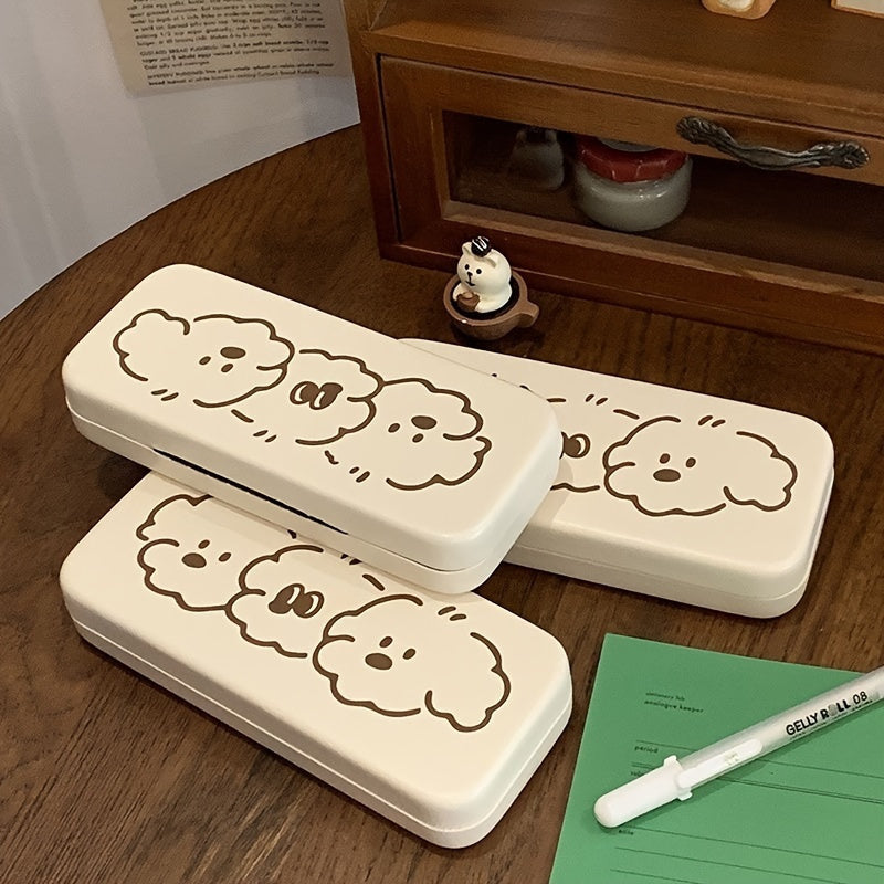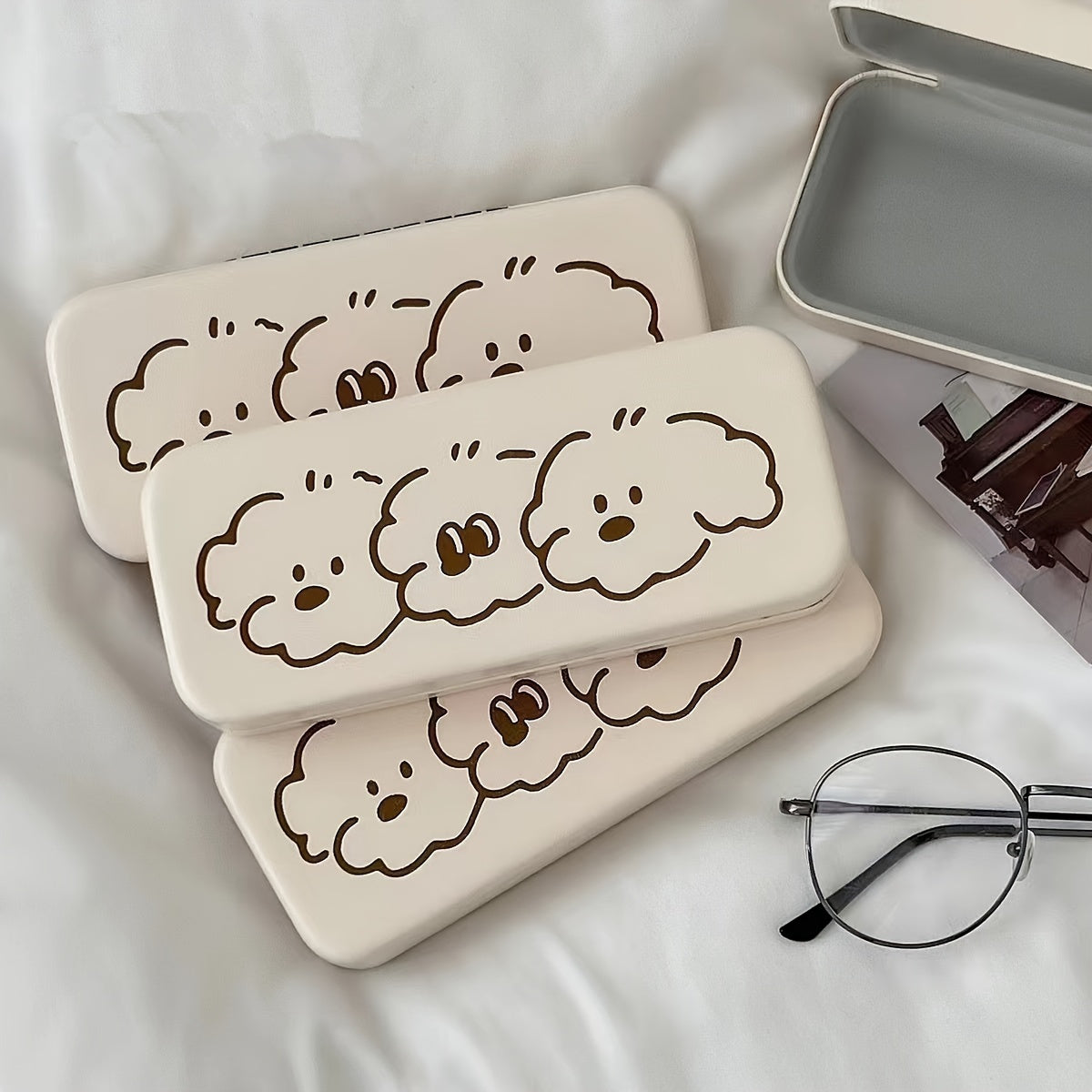 Ayollar uchun zamonaviy va portativ PU charm ko'zoynak qutisi, yoqimli multfilm kuchukcha dizayni bilan.
