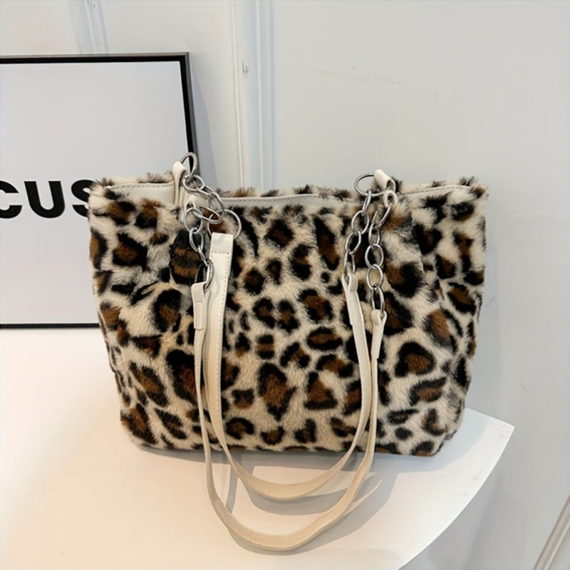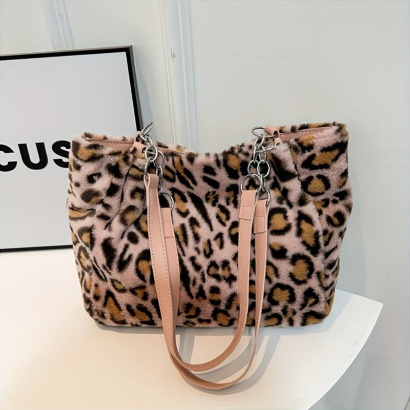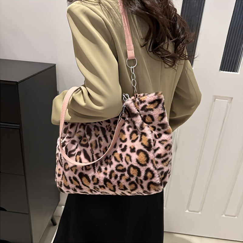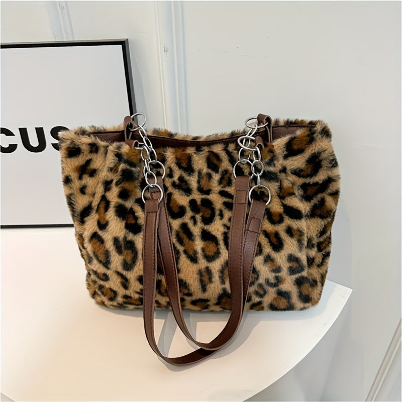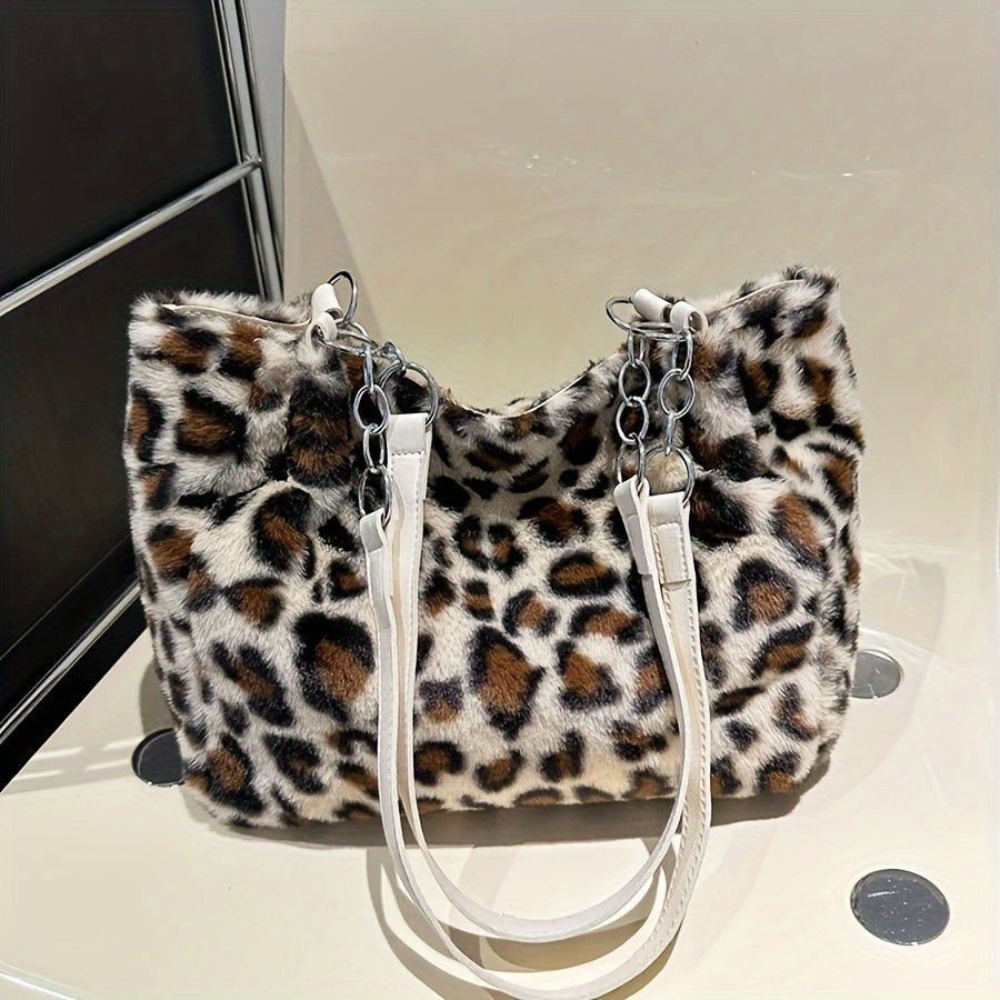 Ayollar uchun zamonaviy leopard naqshli sumka - ajraladigan tasma bilan uslubiy sun'iy mo'yna to'plami, keng yelka sumkasi, har kuni kiyish uchun ko'p maqsadli krossbody sumkasi, 18 yoshdan oshgan zamonaviy kattalar uchun trendy aksessuar