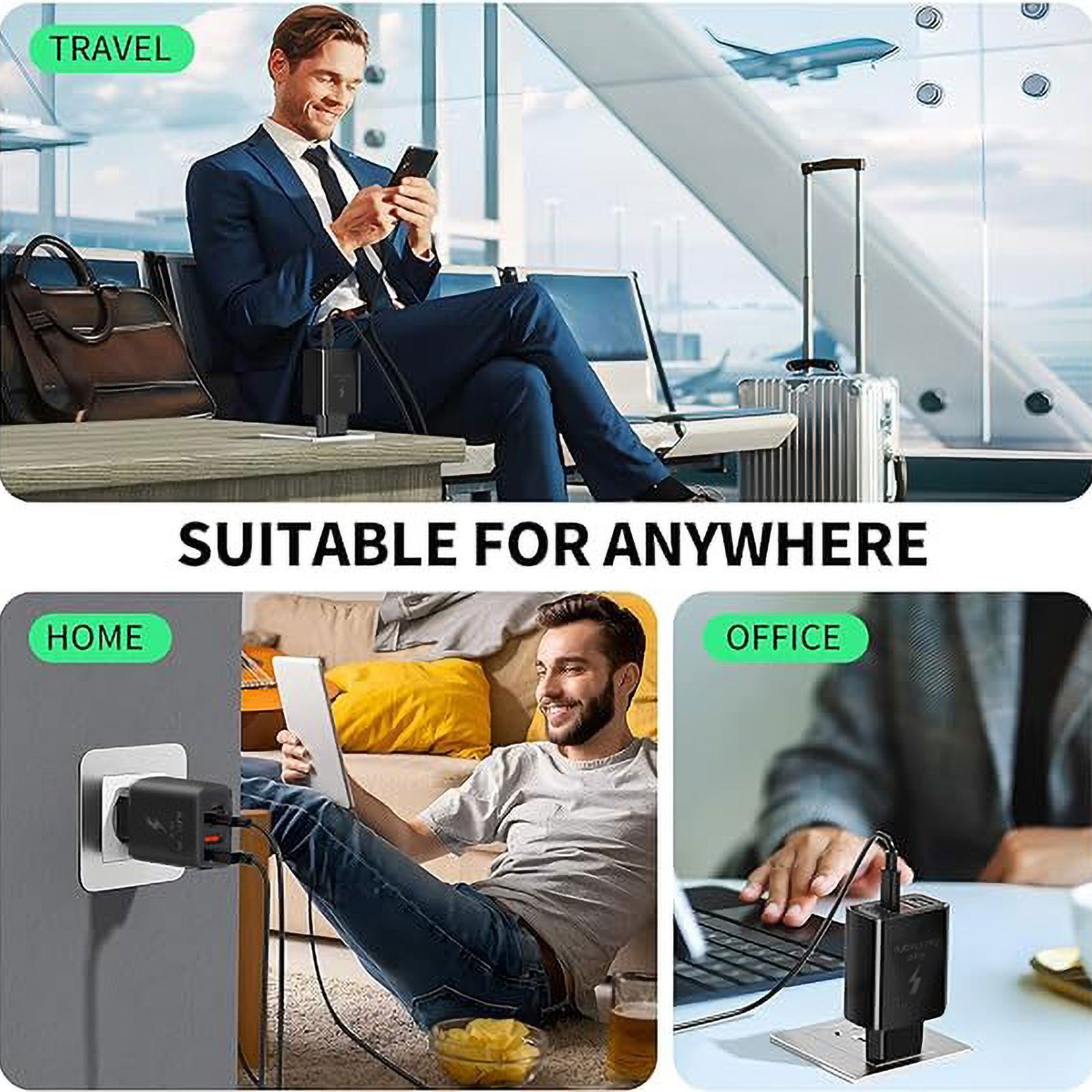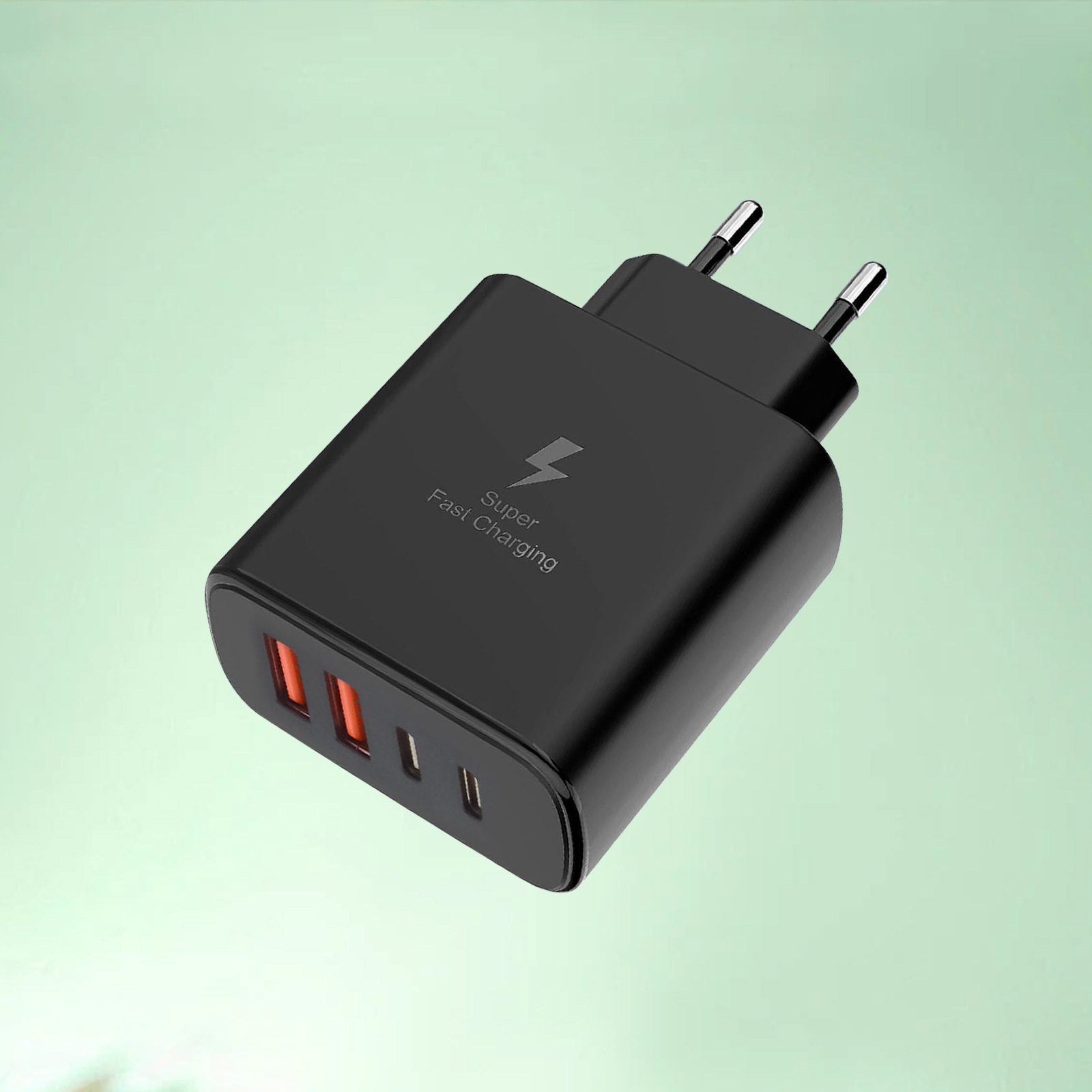 Tez zaryadlash 4-portli USB Type C devor zaryadlovchisi, 10-20W quvvat manbai, Evropa vilkasi. iPhone 12/Pro/ProMax, iPad, AirPods, Apple Watch, Galaxy bilan mos keladi. Sayohatga tayyor.