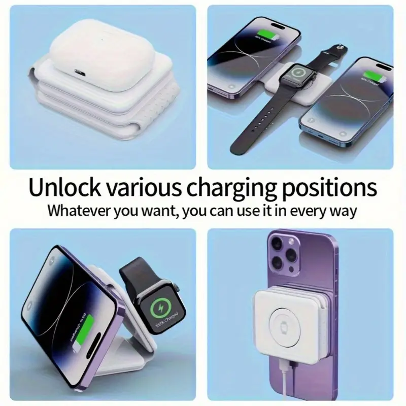 USB-C ulanishi bilan tez yig'iladigan simsiz zaryadlovchi, iPhone va iWatch uchun mos keladi.