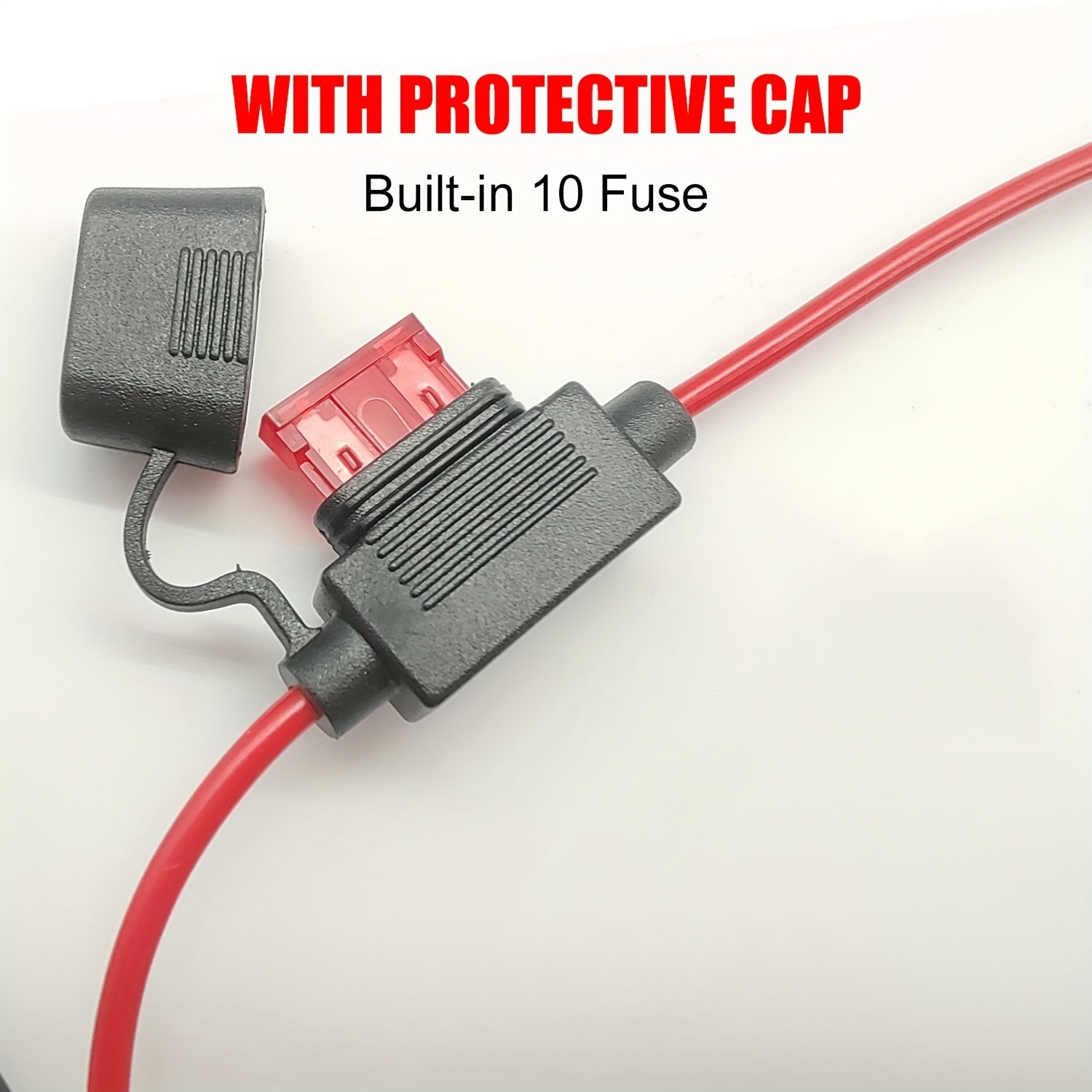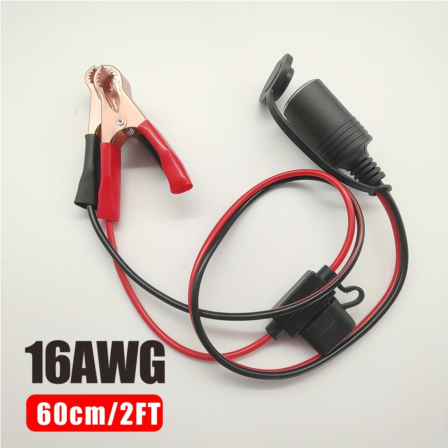 Ayol avtomobil akkumulyator adapteri kengaytirish kabeli, 10A xavfsizlik chirog'i va alligator kliplar bilan