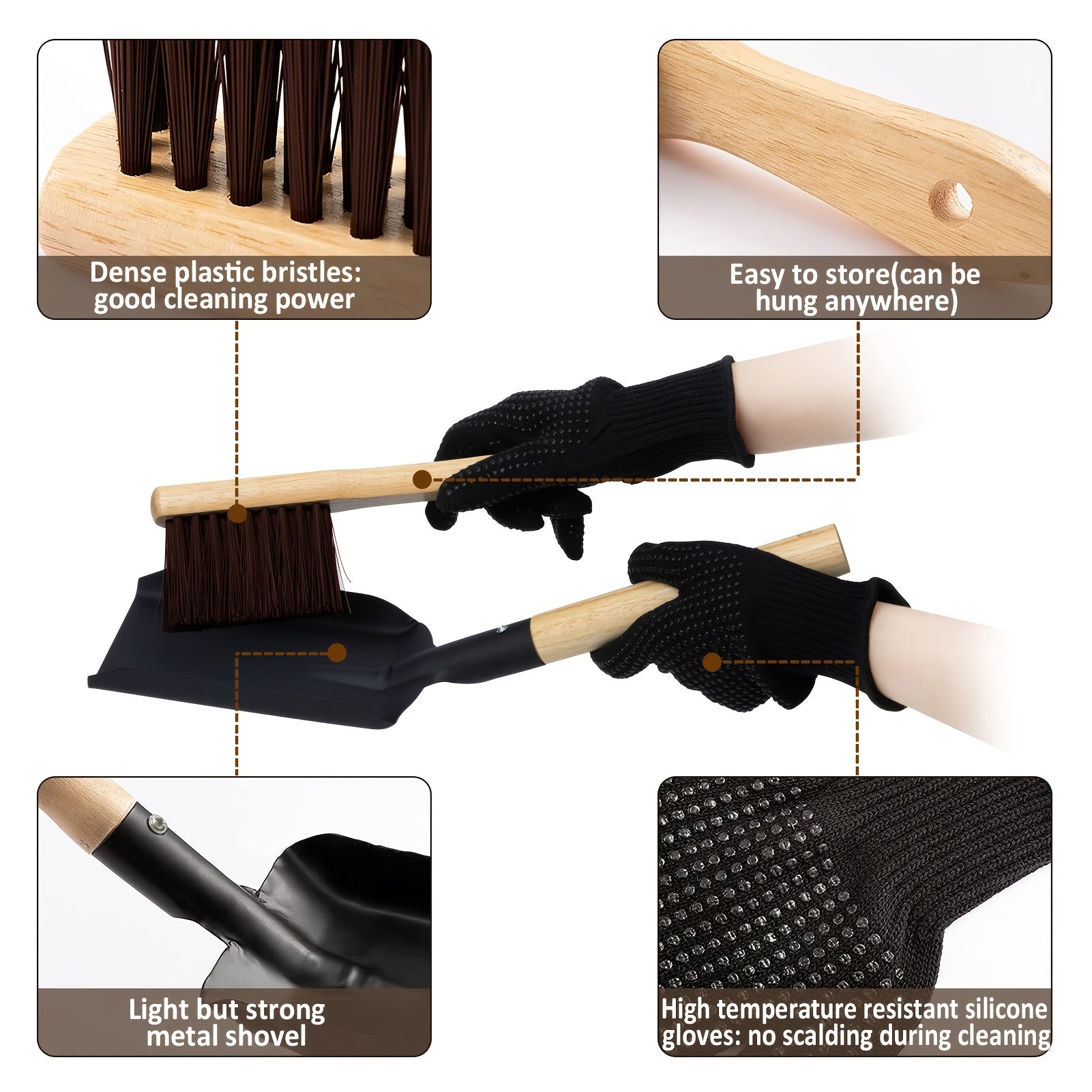 "Kaminda tozalash vositalari to'plami qo'l bilan ishlatiladigan kul lopati va mustahkam pech cho'tkasi to'plamini o'z ichiga oladi, bu esa samarali changni olib tashlash uchun mo'ljallangan. BBQ va olov pitini parvarish qilish uchun mukammal."