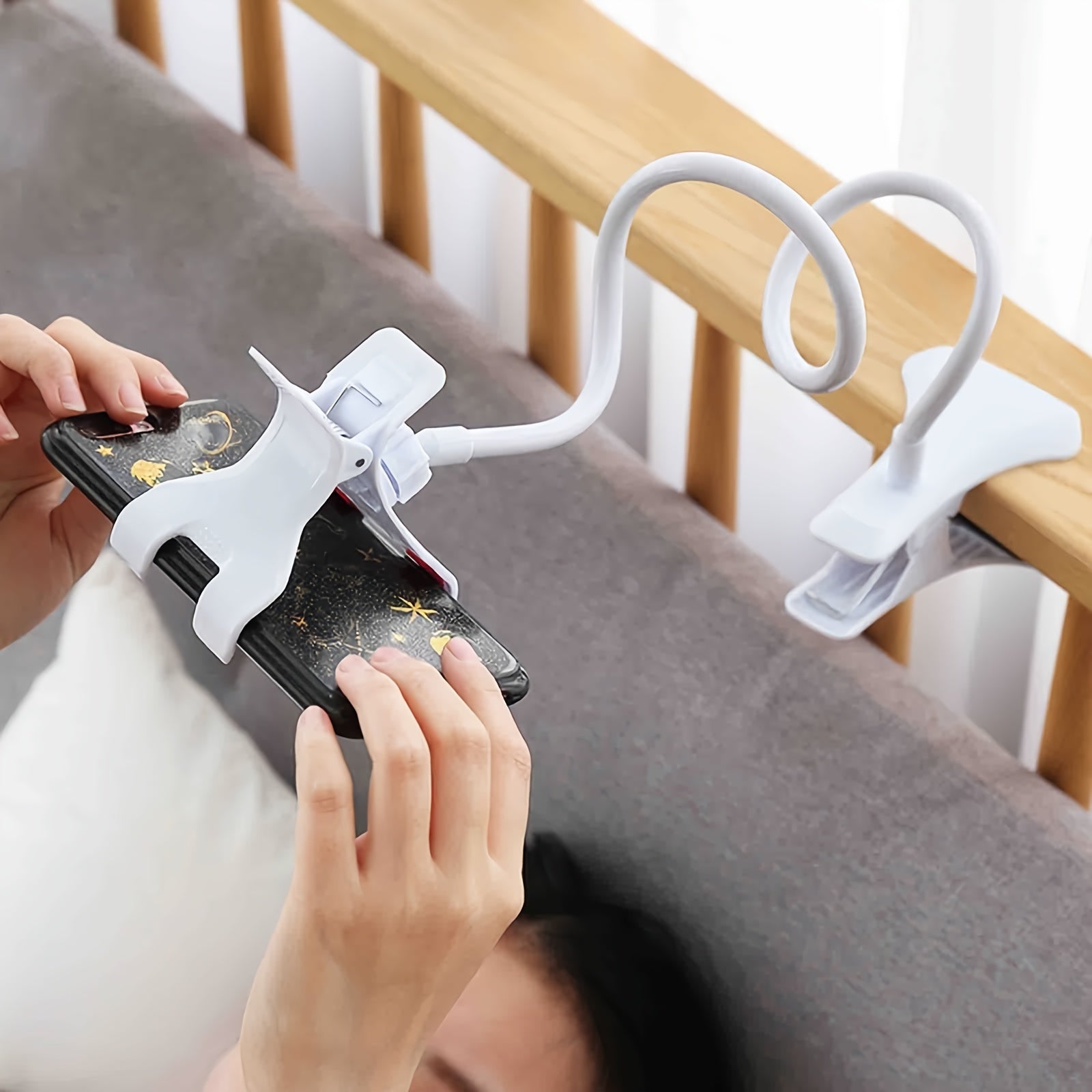 Sozlanadigan smartfon uchun tutqich stendi, ish stoliga, yotoq yoniga moslashuvchan qo'l bilan mahkamlagich