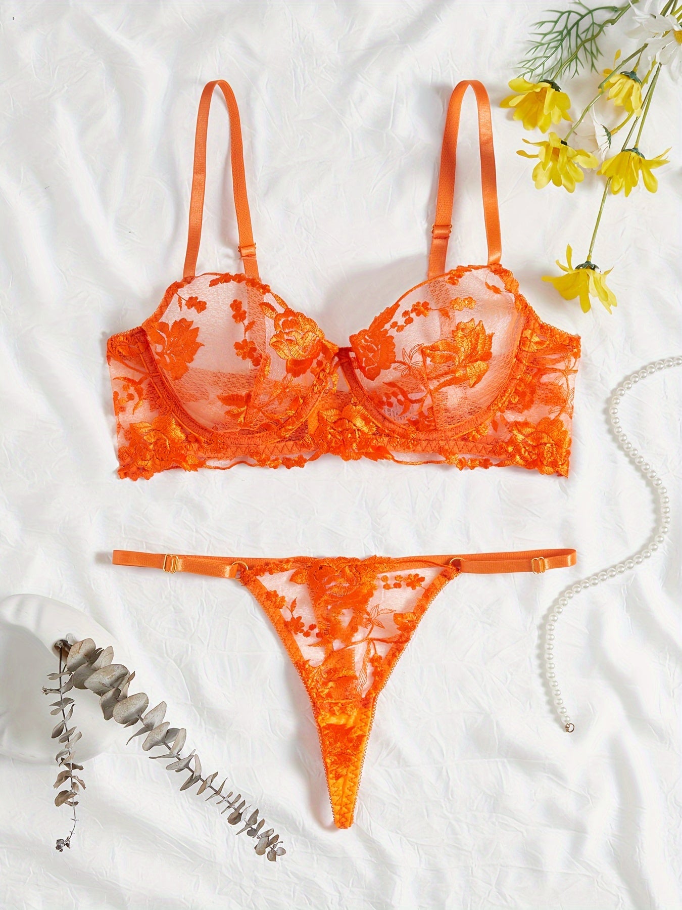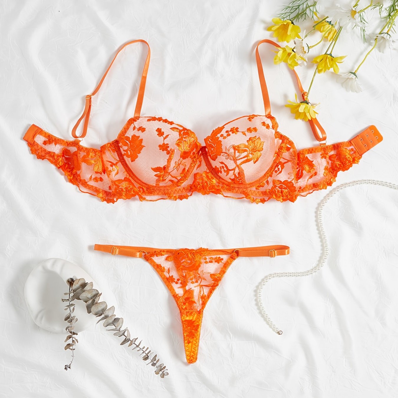 Koningsdag uchun gullar bilan tikilgan ichki kiyim to'plami.