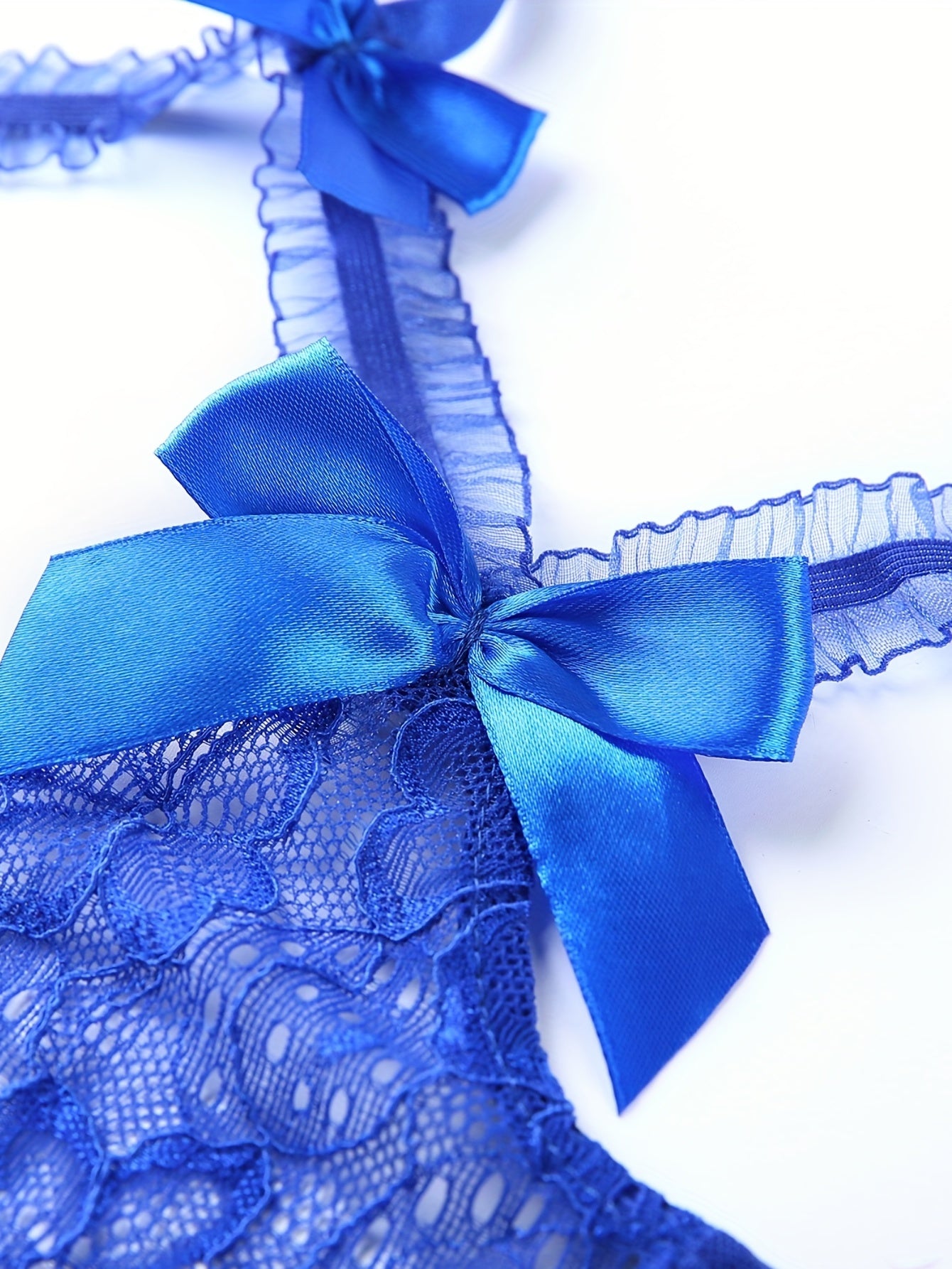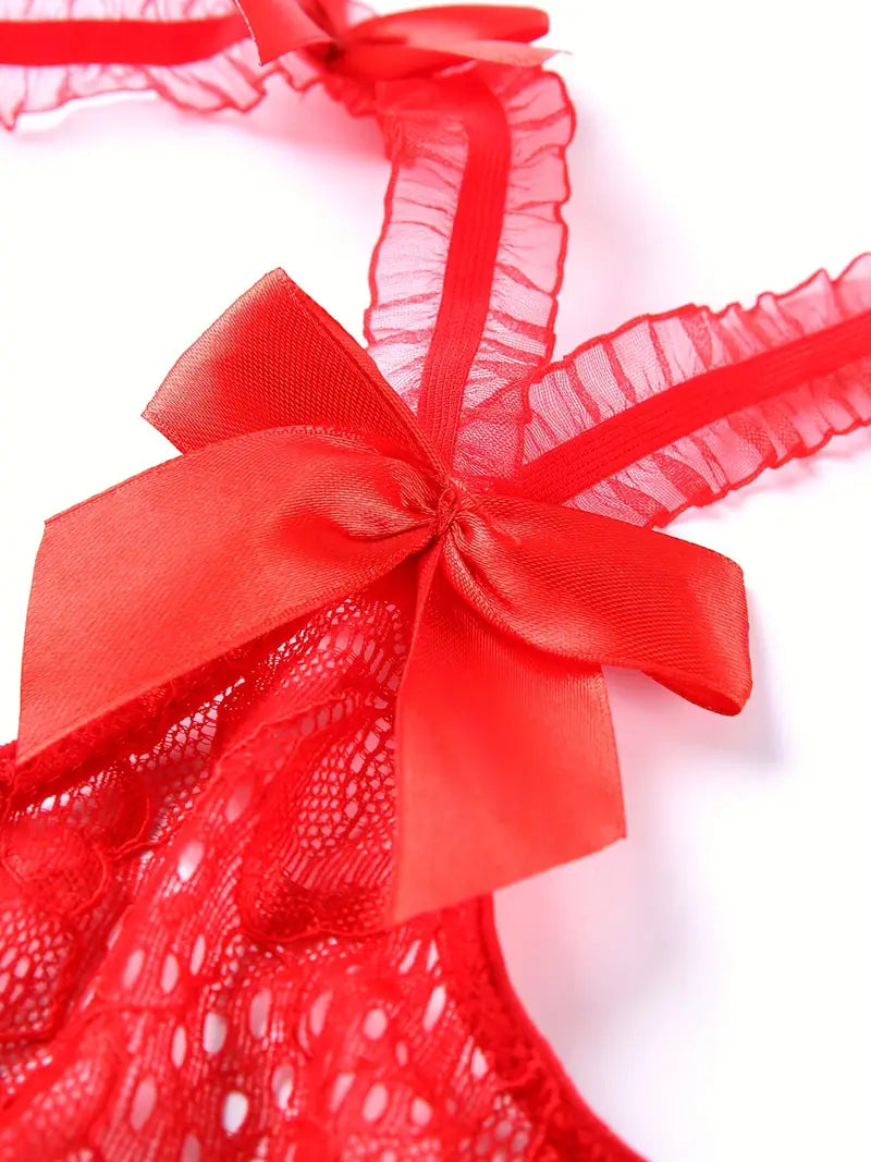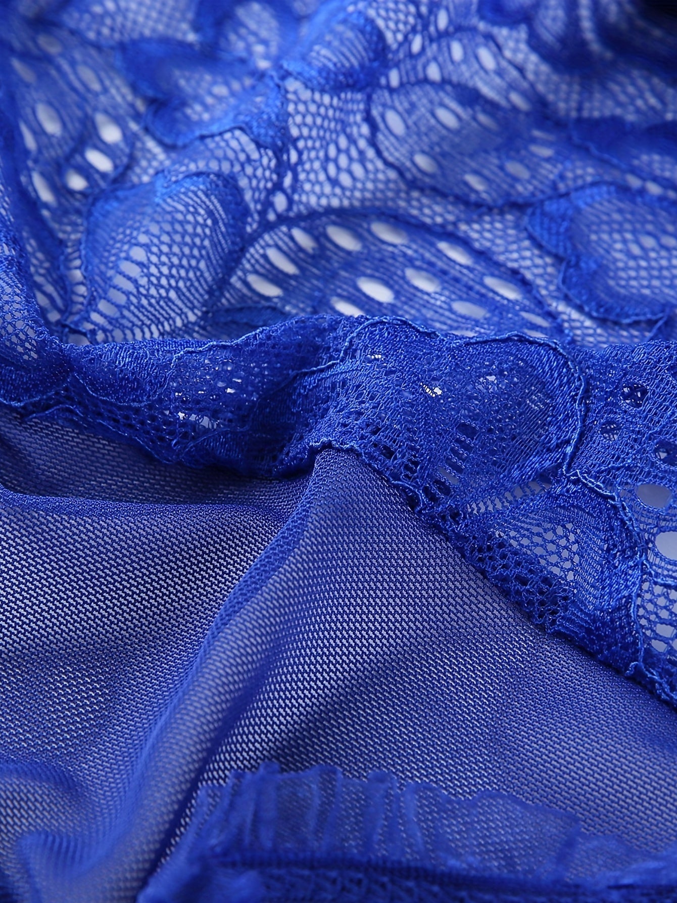 Gul naqshli dantel teddy, ochiq ko'krak va ochiq qorin bilan, ayollar uchun ruffle bodysuit ichki kiyim.