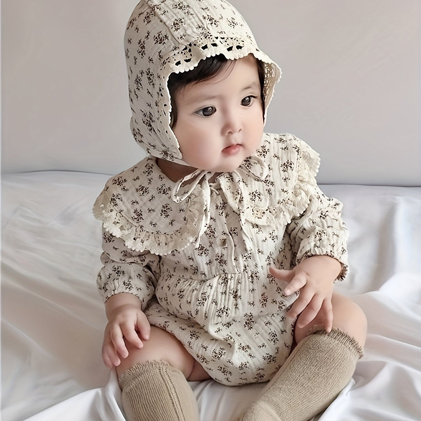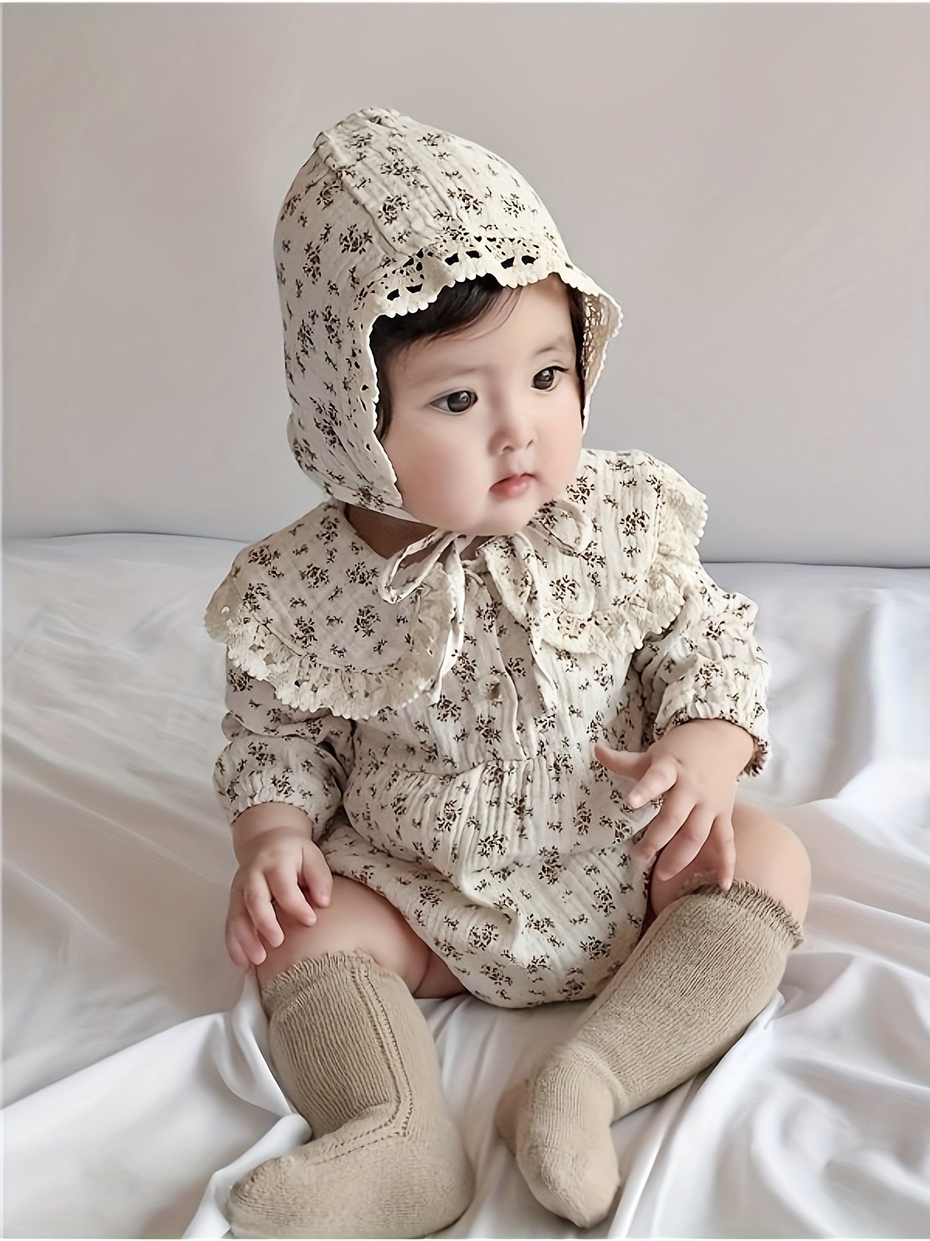 Bolalar uchun gul naqshli iplikli qopqog'li bodysuit va kiyingan to'plam, paxta aralashmasi, bahor va kuz uchun qulay