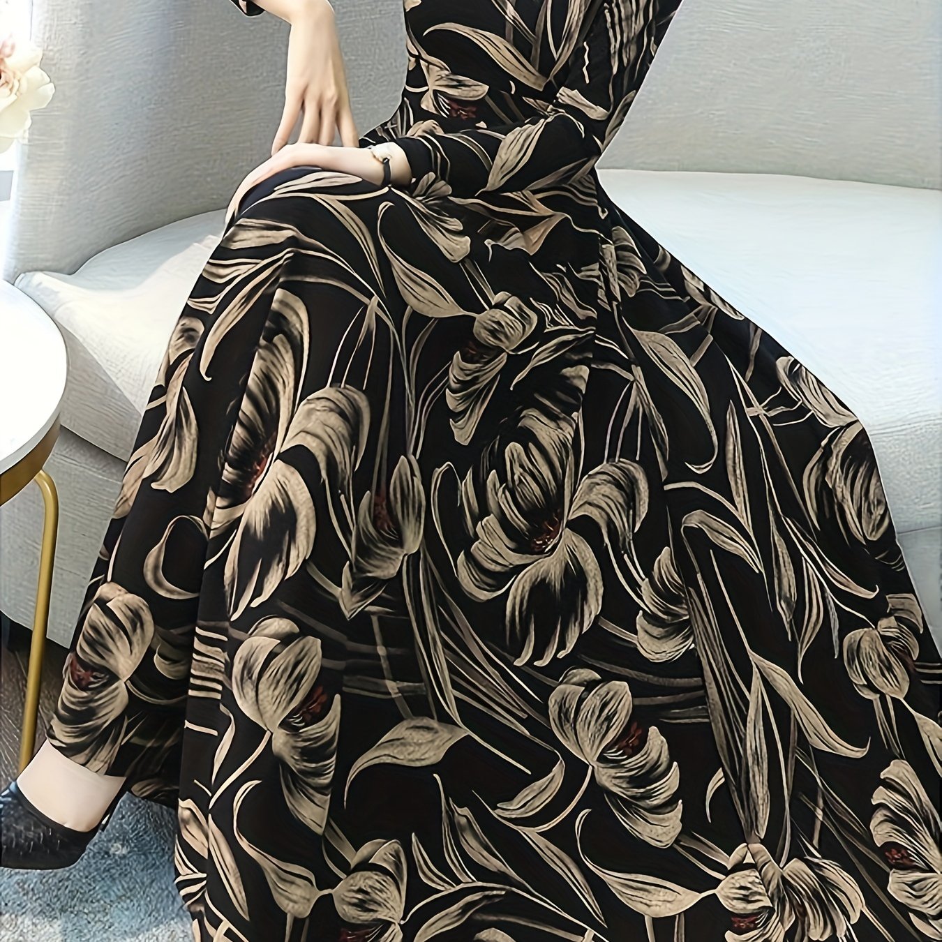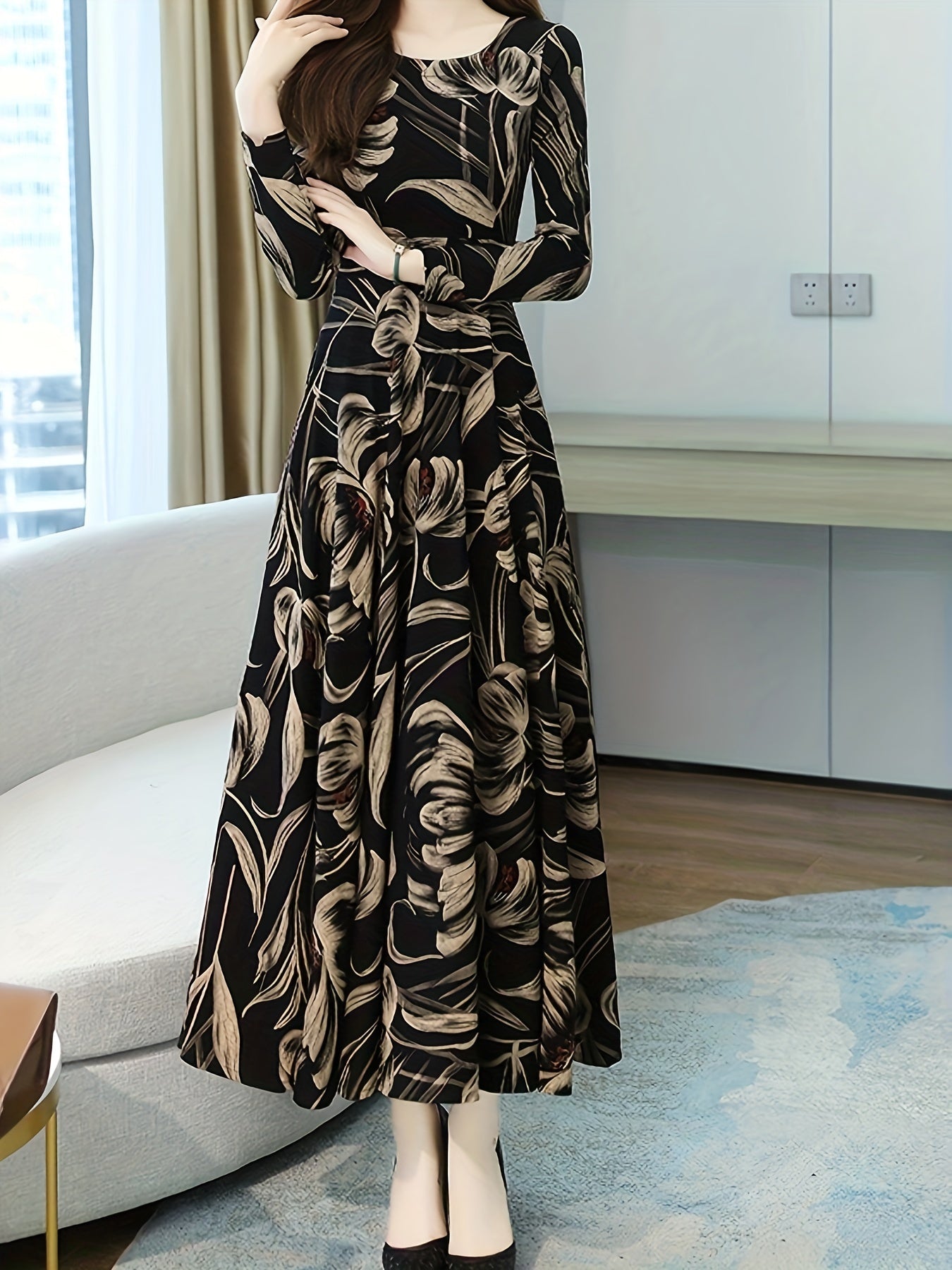 Bahor/Yoz mavsumi uchun belni ingichkalashtiruvchi va cho'ntaklari bo'lgan gullar bilan bezatilgan uzun yengli ko'ylak.