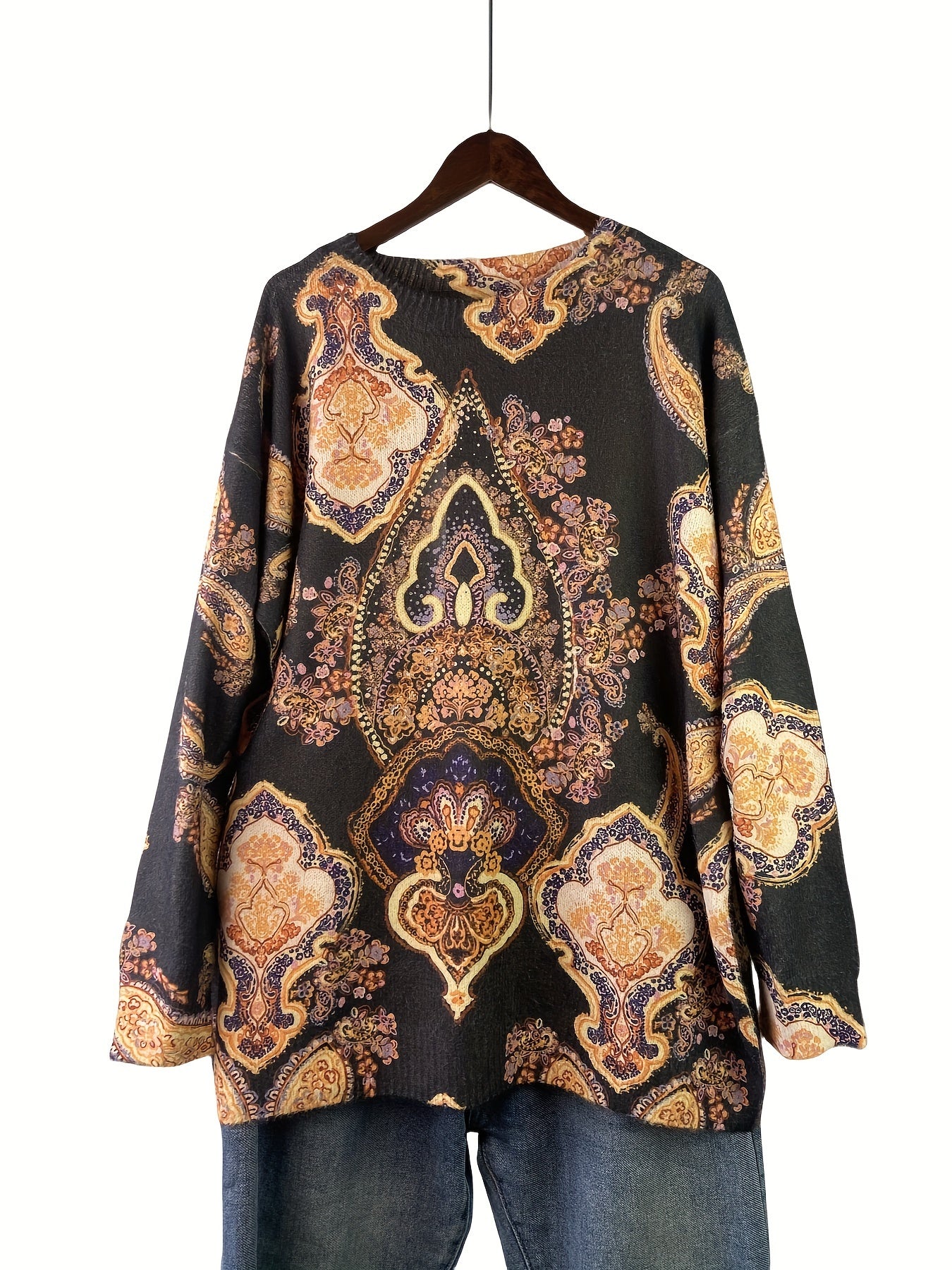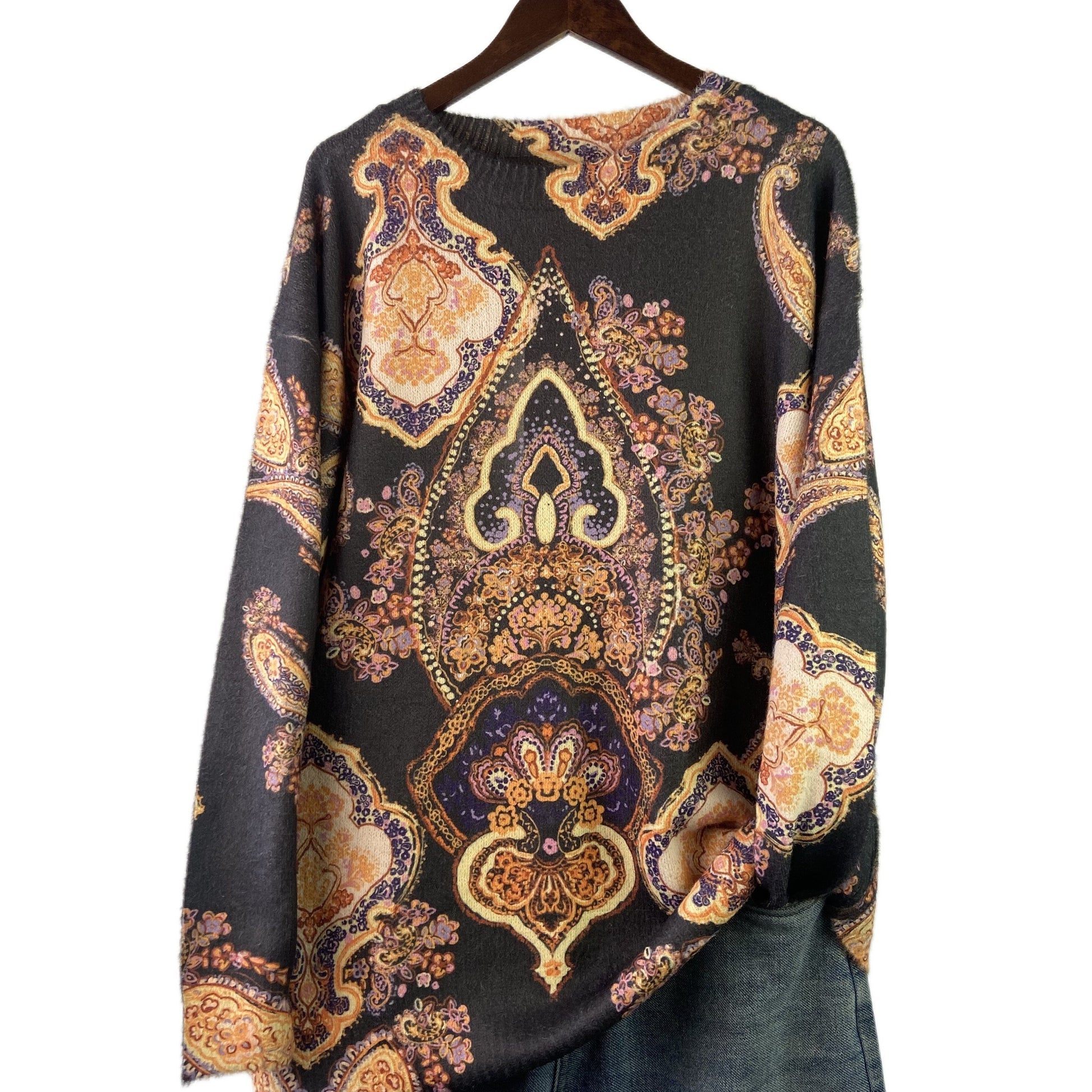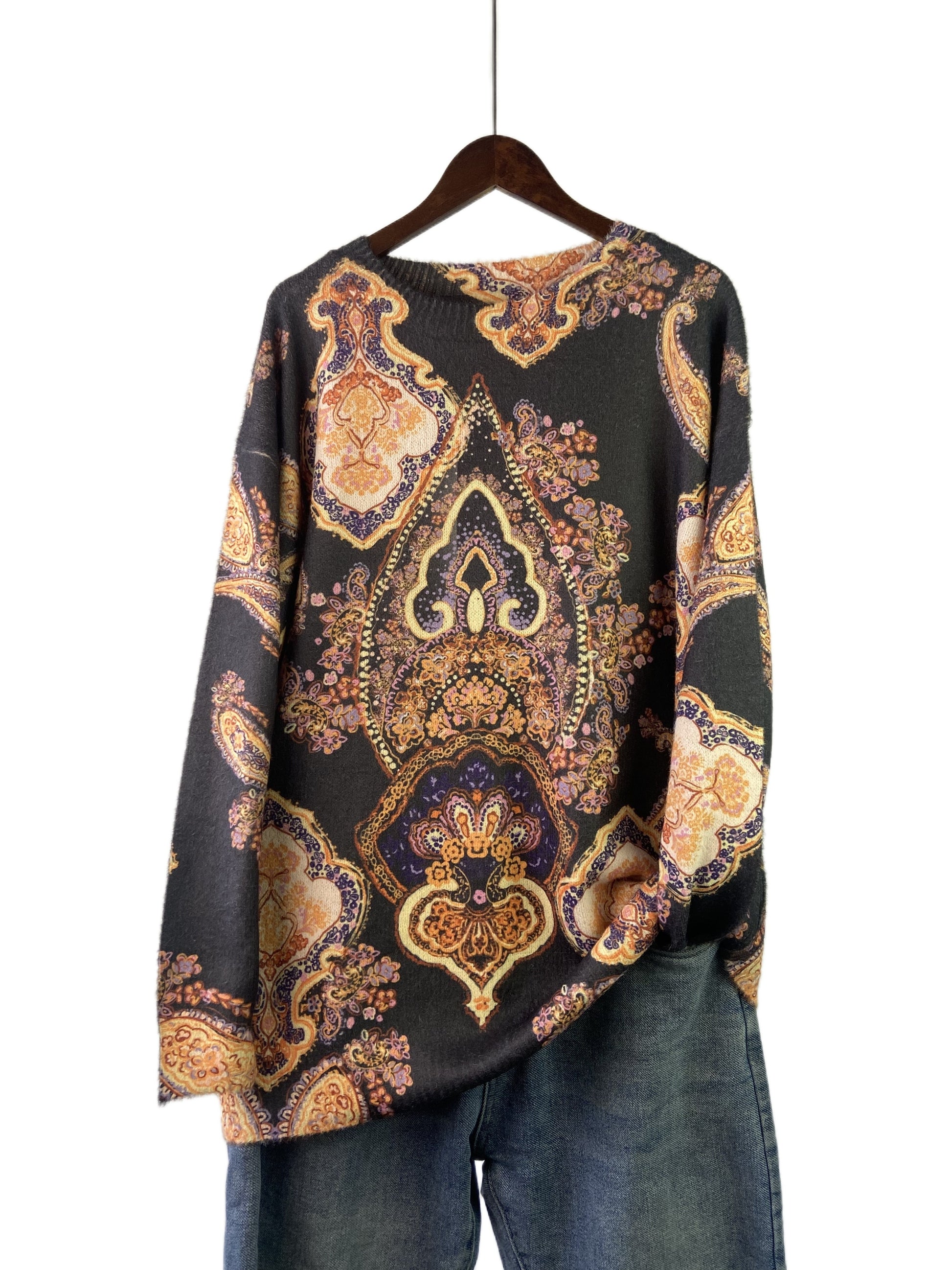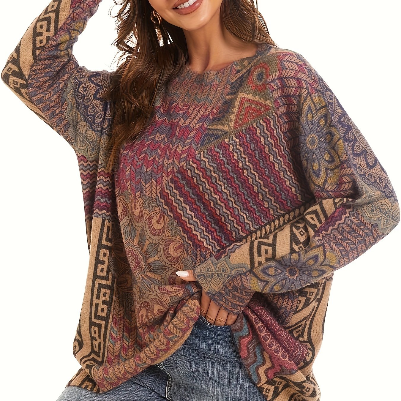 Gul naqshli katta o'lchamdagi sviter kuz va qish uchun, ayollar uchun tasodifiy uzun qo'lqopli krujka uslubi