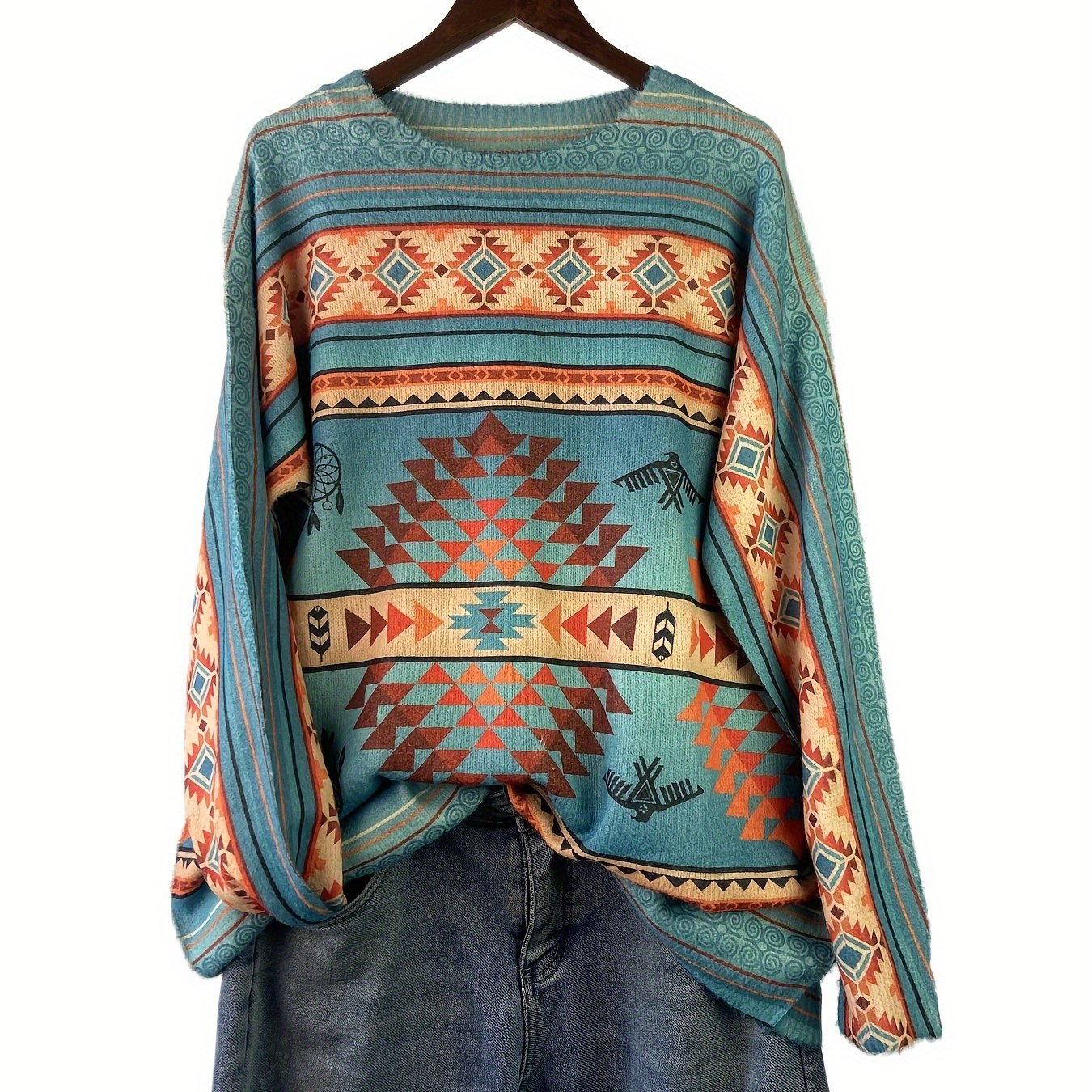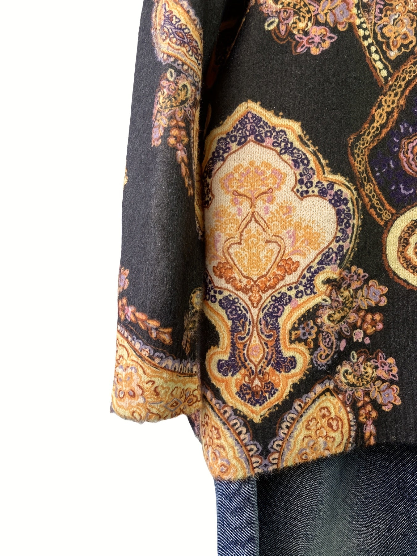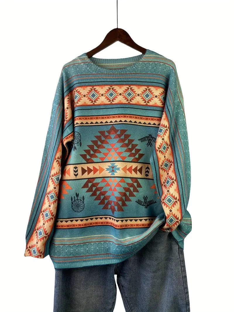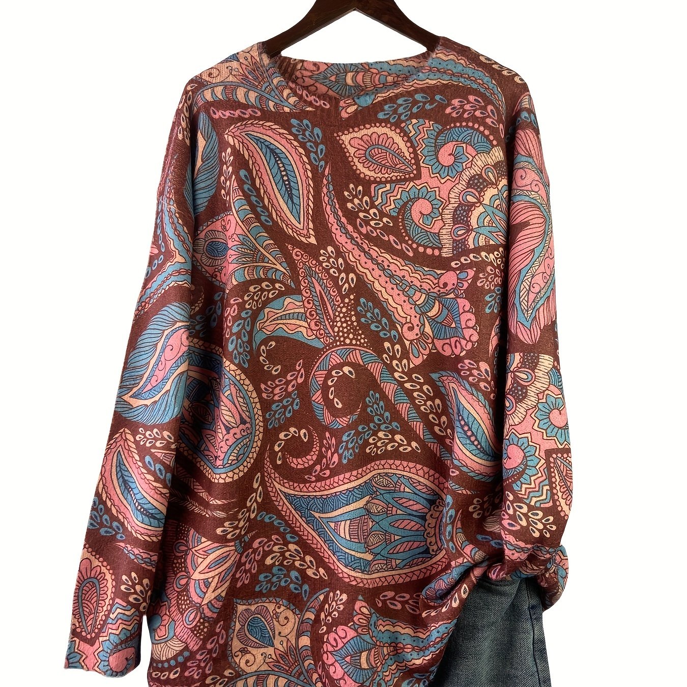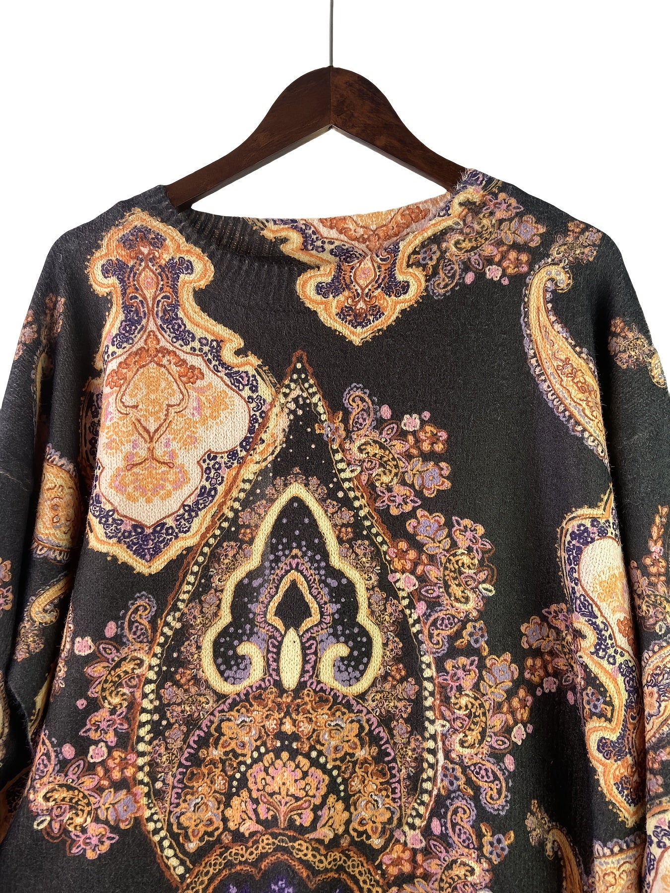 Gul naqshli katta o'lchamdagi sviter kuz va qish uchun, ayollar uchun tasodifiy uzun qo'lqopli krujka uslubi