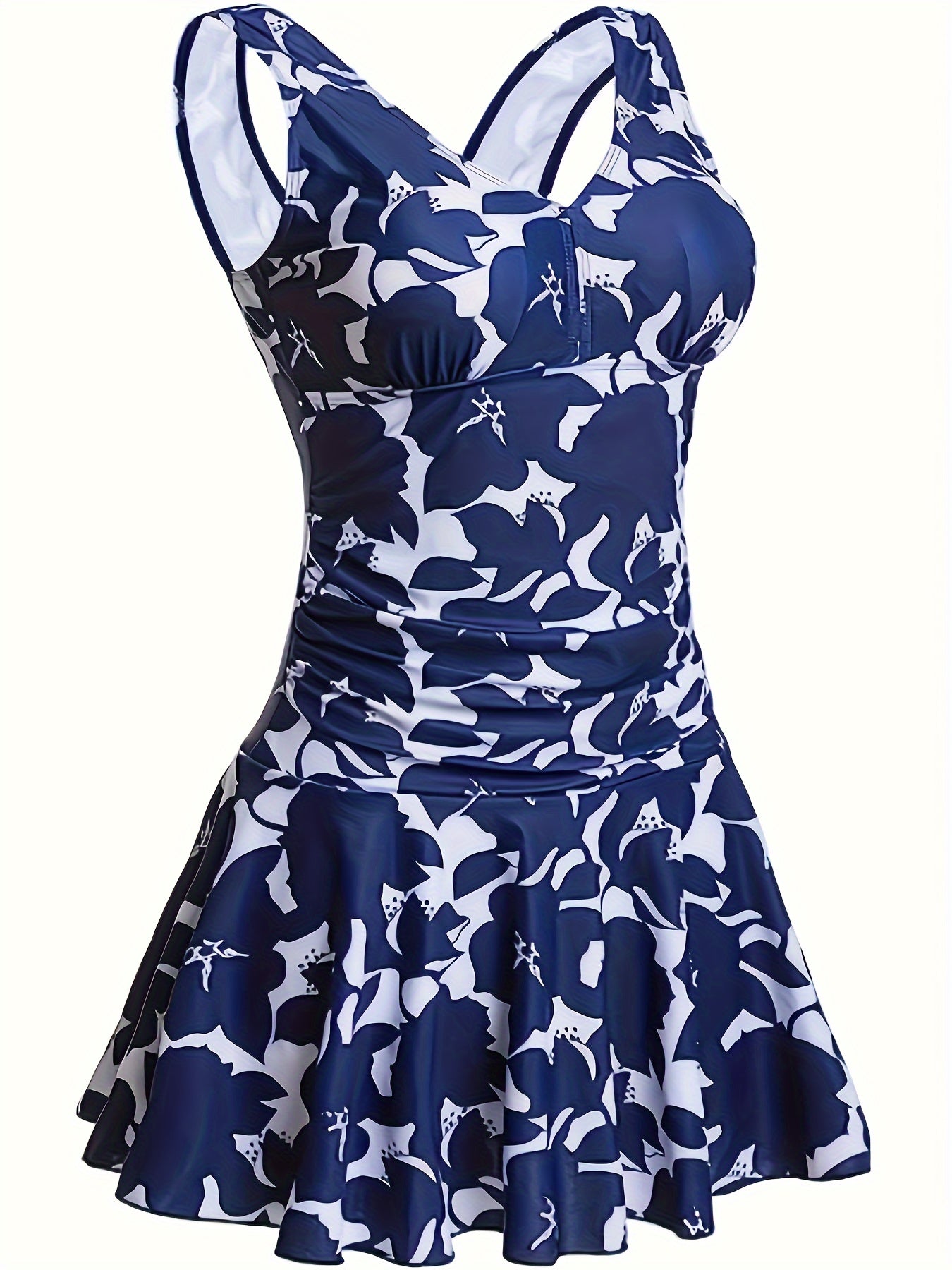 Gul naqshli orqa qismi ochiq suzish libosi, ichki shortiklar bilan, ayollar uchun bir qismli suzish kostyumi.