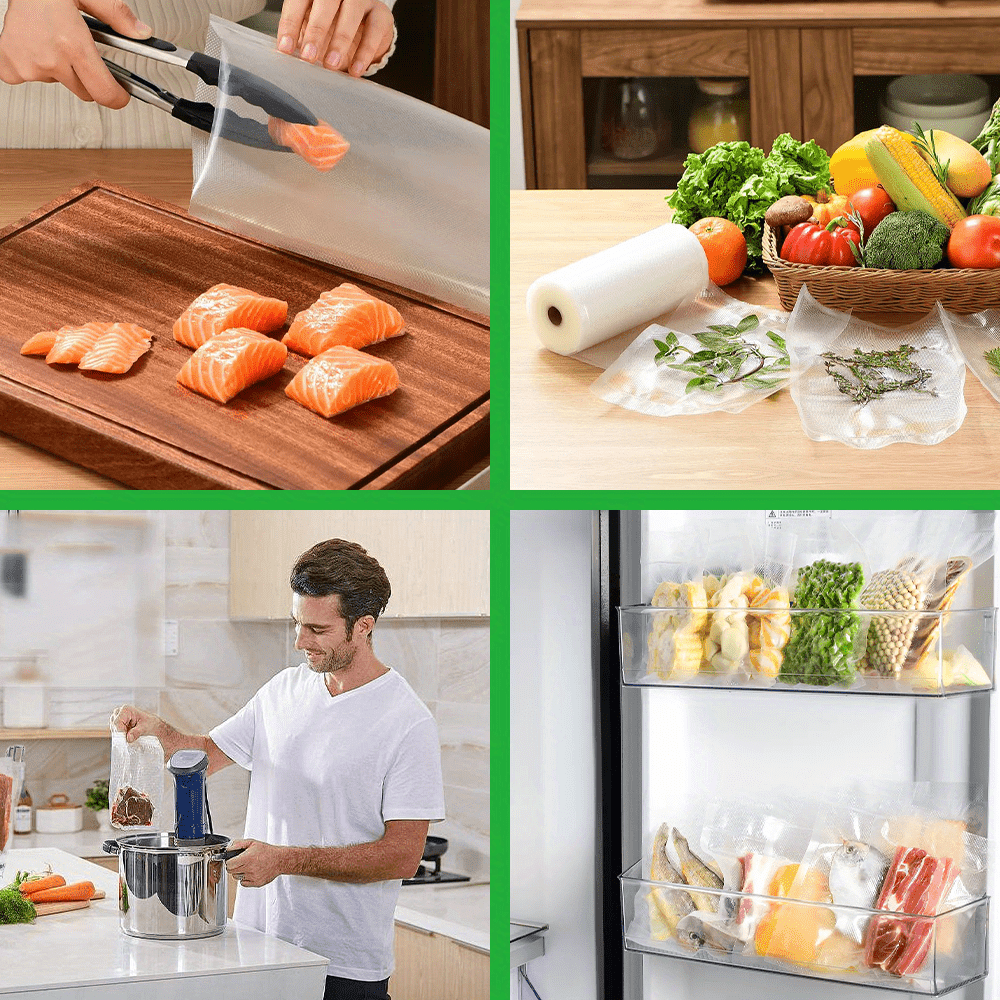 Oziq-ovqat saqlash uchun mato bilan qoplangan sumkalar, turli kengliklar, moslashtirilgan uzunlik bilan vakuum yopishqoq sumkalar to'plami