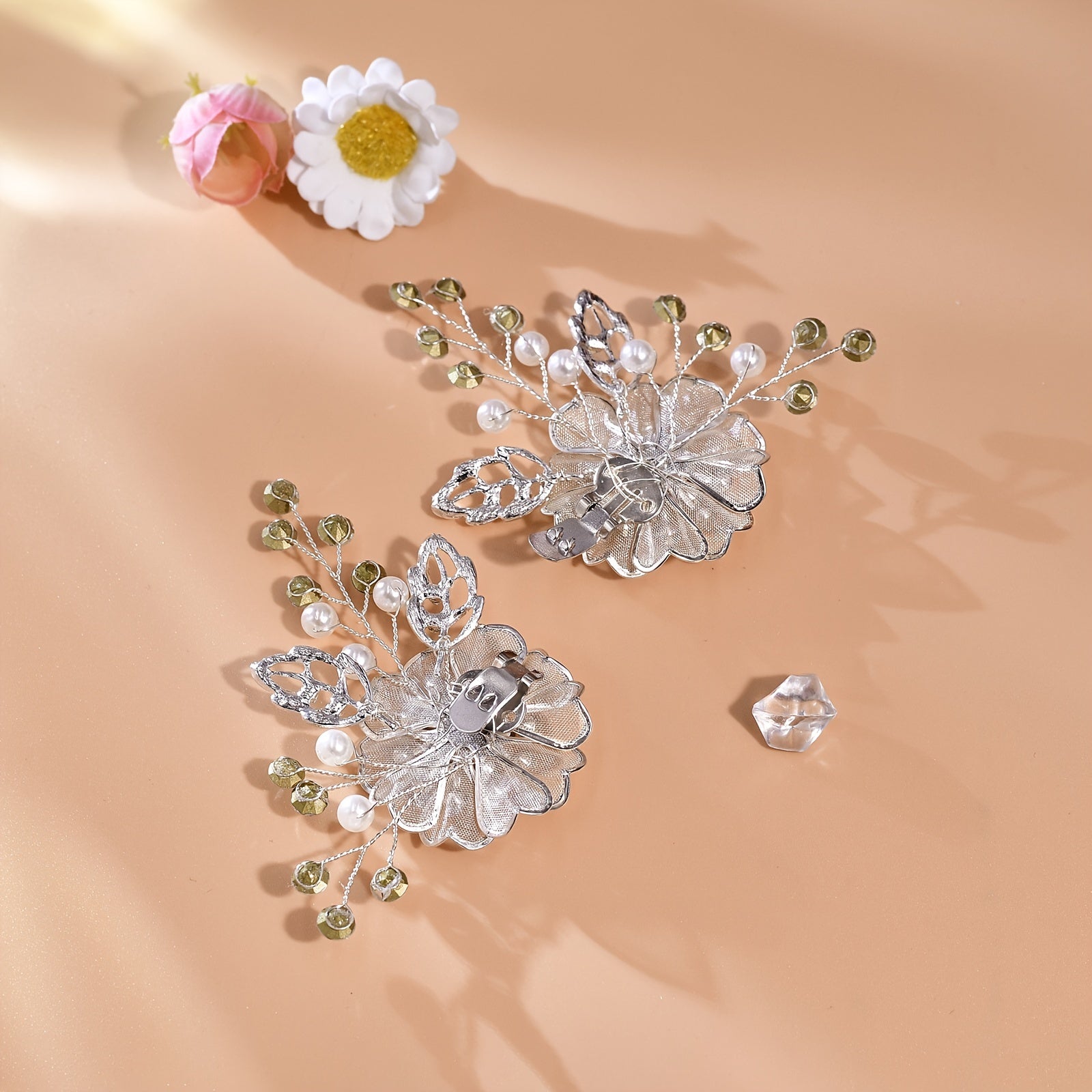 Ayollar uchun o'rmon uslubidagi qo'lda to'qilgan olmos gul tarmog'i to'y poyafzali, oltin bargi bilan qulflangan va sun'iy marjon dizayni bilan