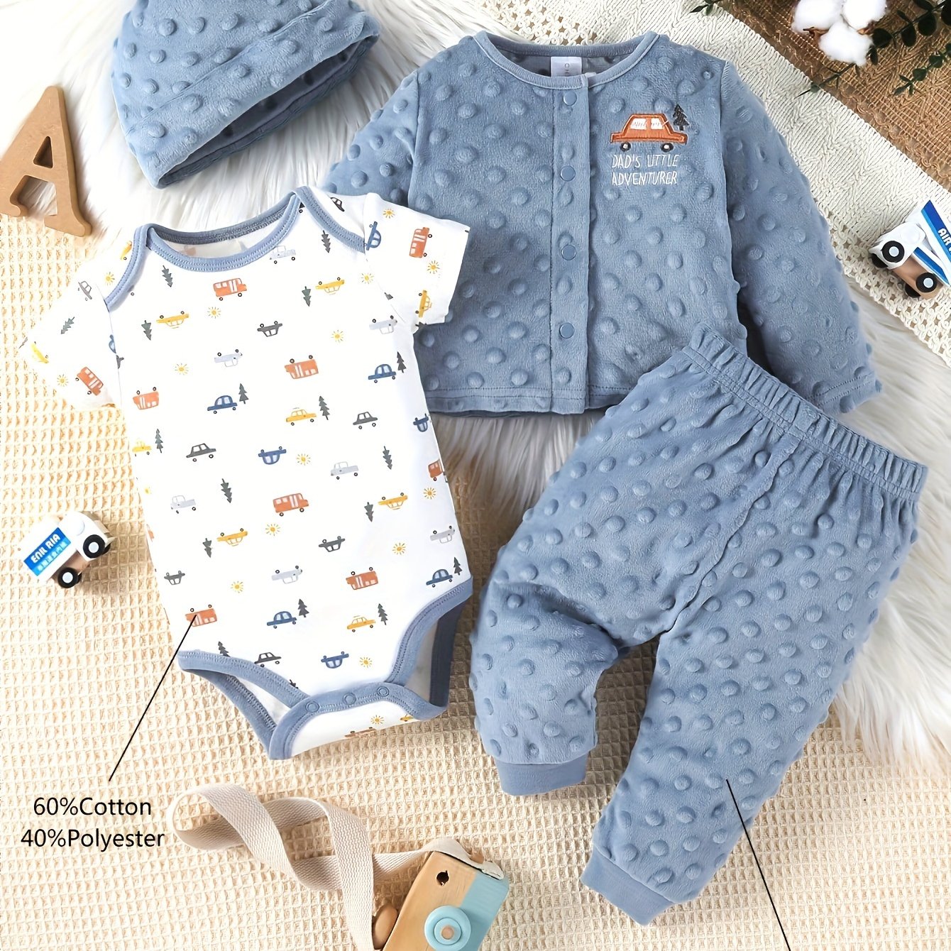 Kichkina erkaklar uchun multfilm mashina velur kostyumi, kuz-qish uchun 4 ta qismli to'plam
