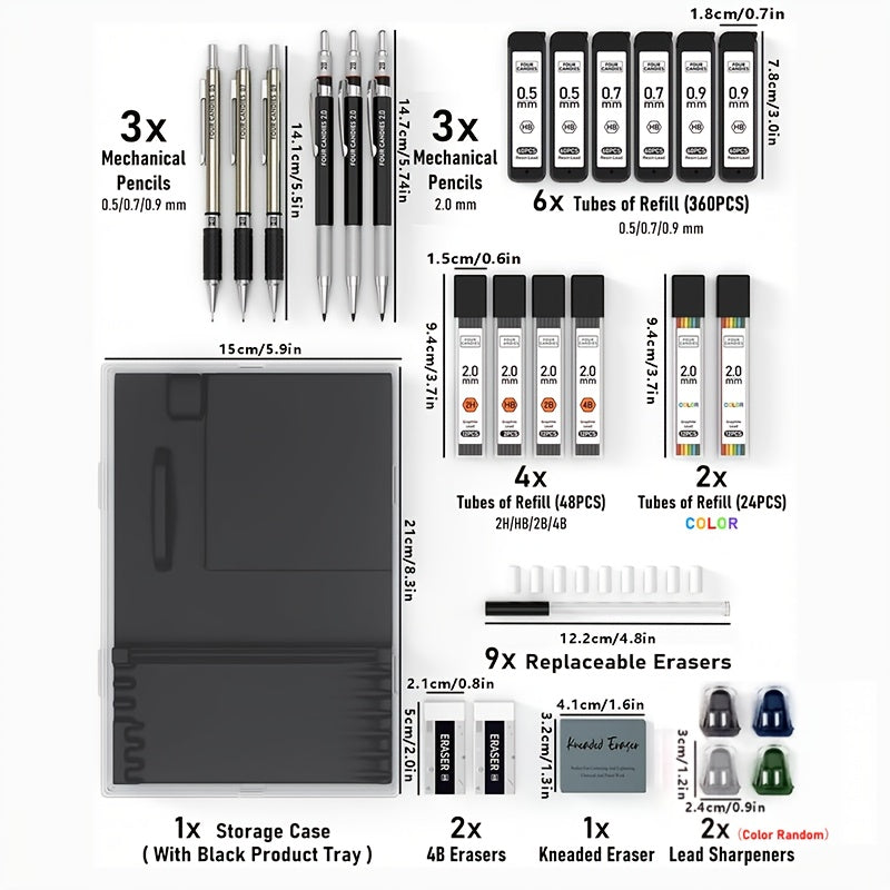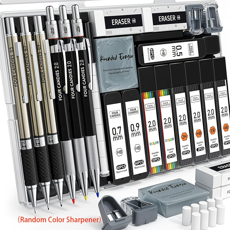 Rasm chizish va eskiz uchun 25 ta san'at to'plami, mexanik qalamlar, grafit tutqichlar va quti bilan