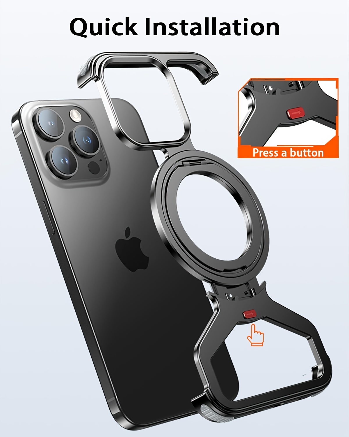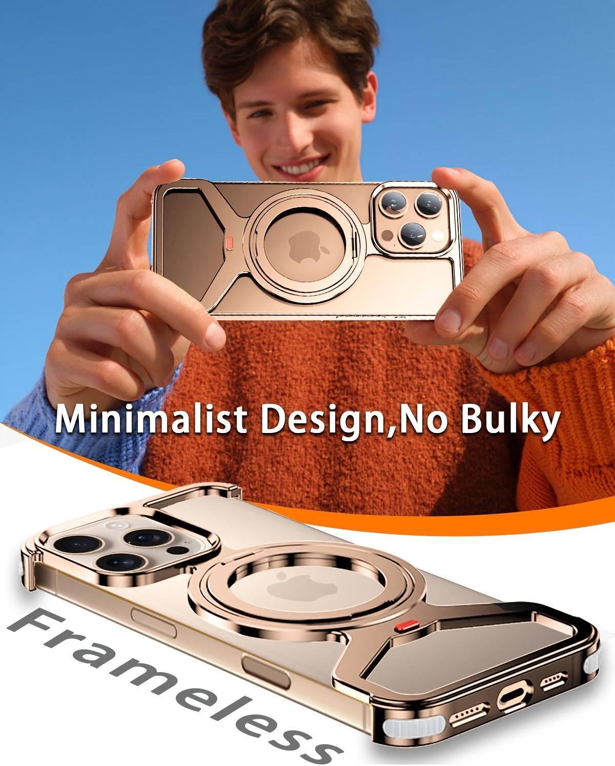 iPhone 14/15/16 PRO MAX uchun ramkasiz metall telefon qopqog'i, ijodiy tushishdan himoya dizayni va issiqlik tarqatish bilan.