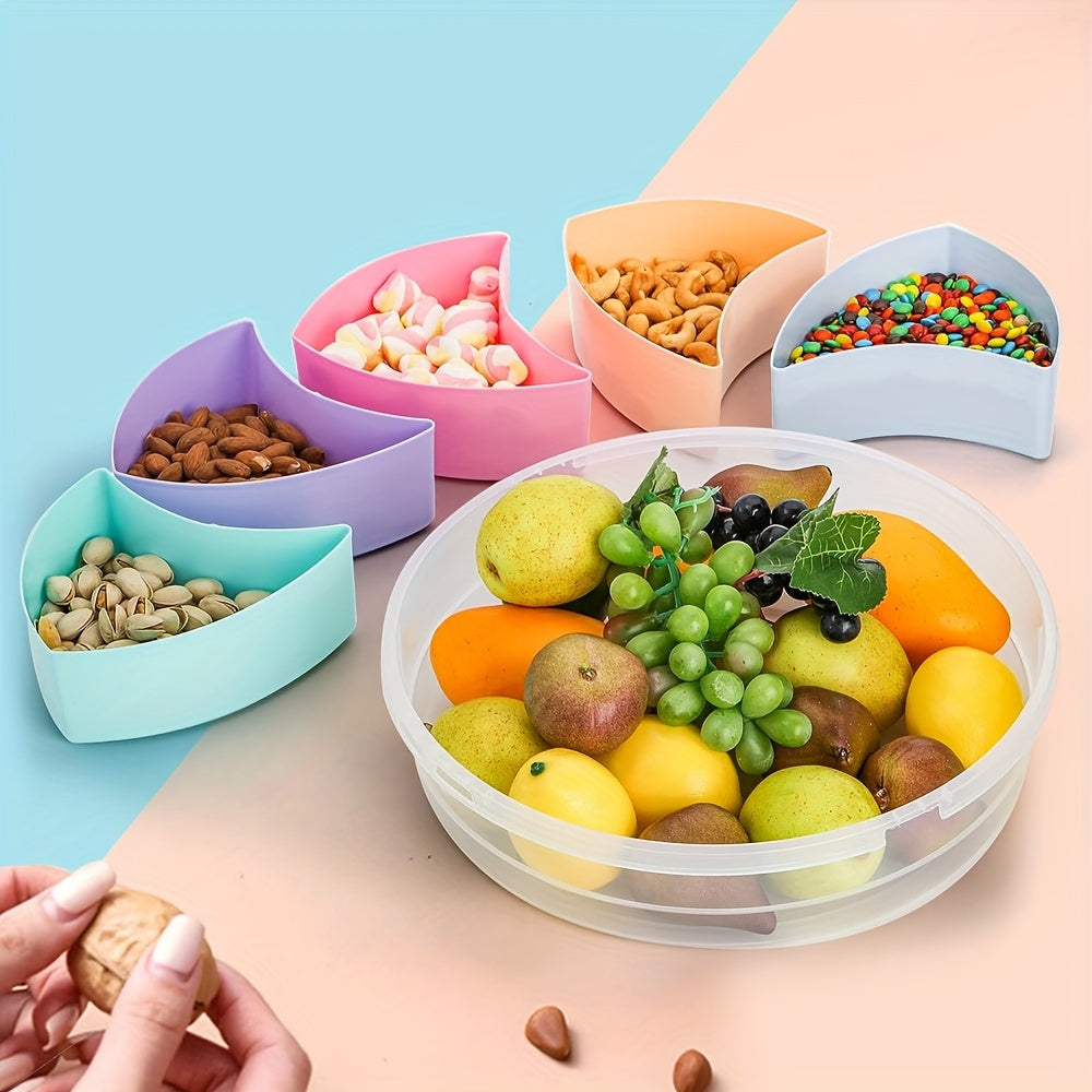 Meva atıştırmalıkları uchun qopqoq bilan xizmat ko'rsatish taxtasi, 30.99 sm konteyner, partiyalar uchun 5 bo'lakli dumaloq plastinka.
