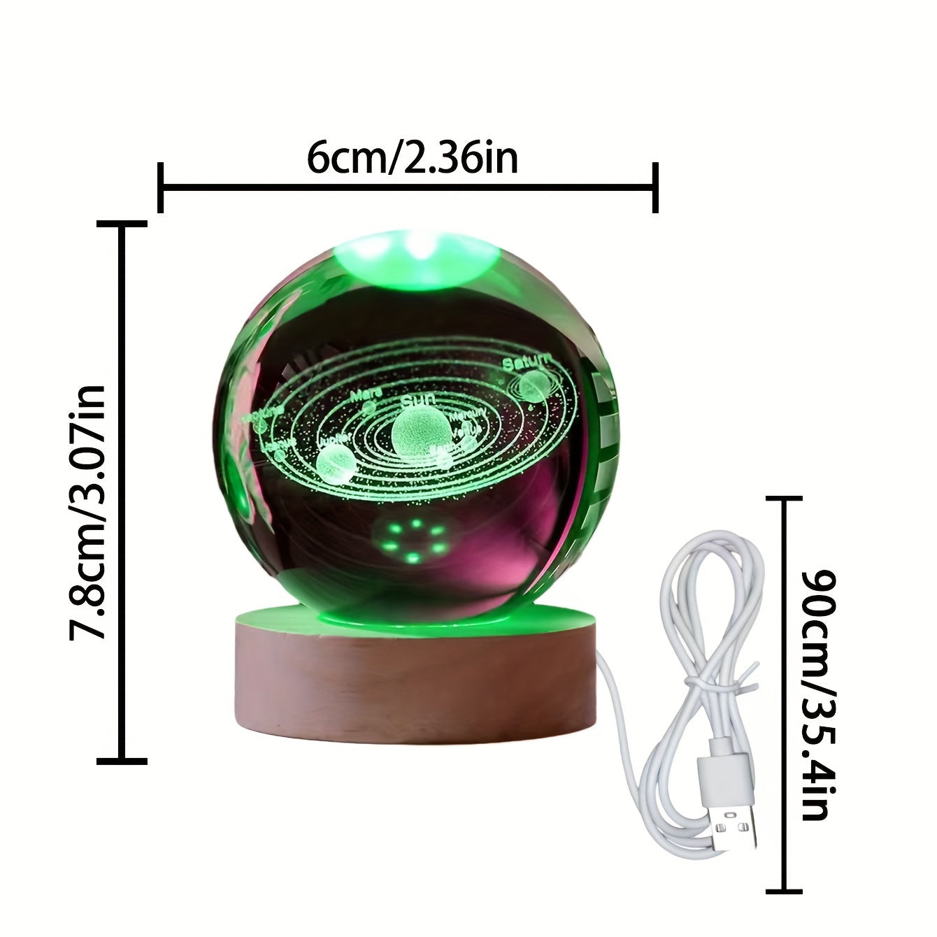Galaktika mavzusidagi kristal to'p tungi chiroq USB bilan - sayohat va lagerda foydalanish uchun ajoyib, bayramlar, yubileylarga mukammal sovg'a.
